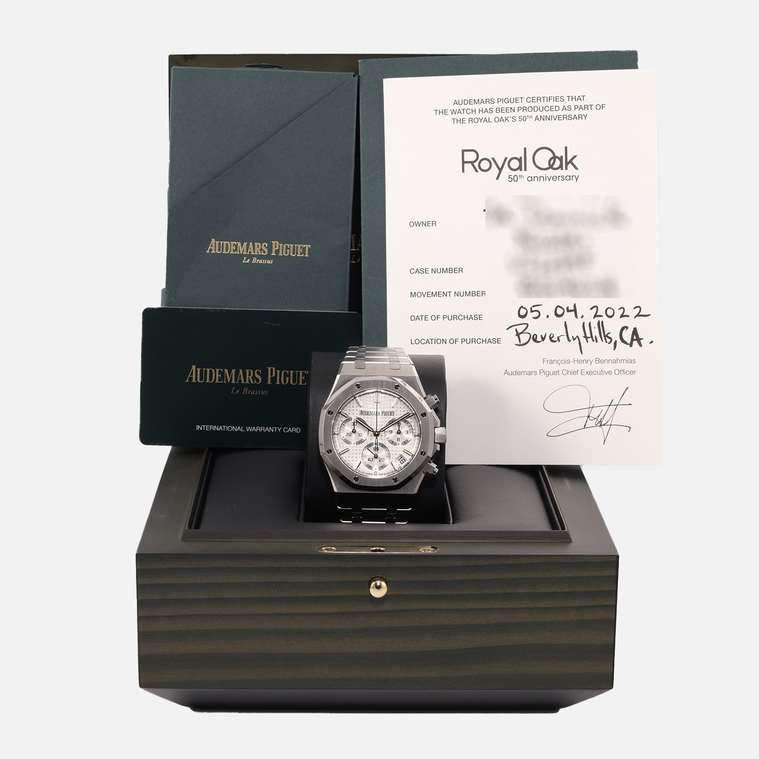 Your acquisition of this horological gem comes complete with the Audemars Piguet Box, Warranty Card, Operating Manual, and Certificate, providing you with peace of mind and authenticity.