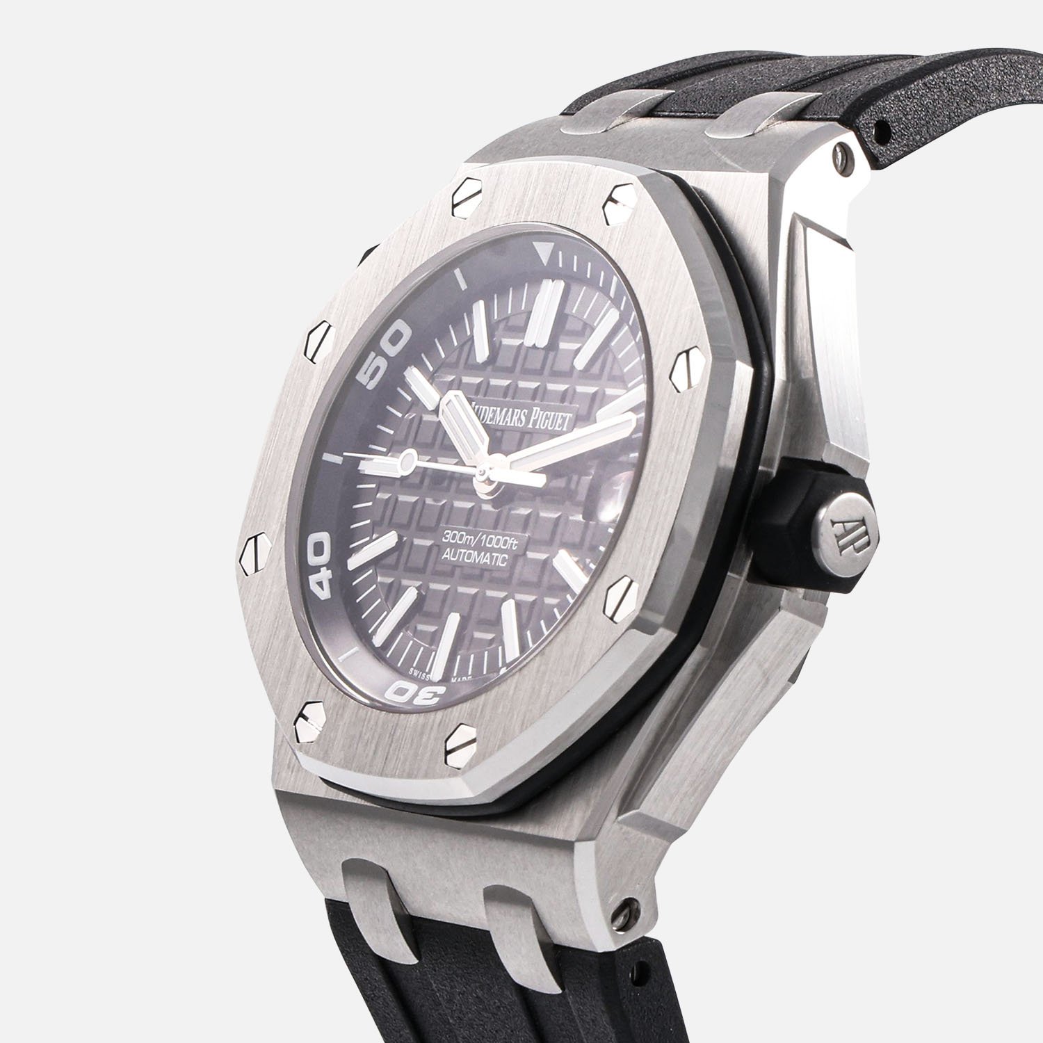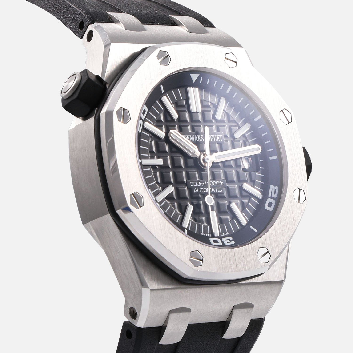 The Audemars Piguet Royal Oak Offshore Diver 15710ST.OO.A002CA.01 is the ultimate combination of luxury and functionality, designed for those who seek both adventure and refinement. This 42mm stainless steel masterpiece showcases the brand’s renowned craftsmanship with its bold octagonal bezel, intricate black “Méga Tapisserie” dial, and luminescent hands and markers for optimal legibility.