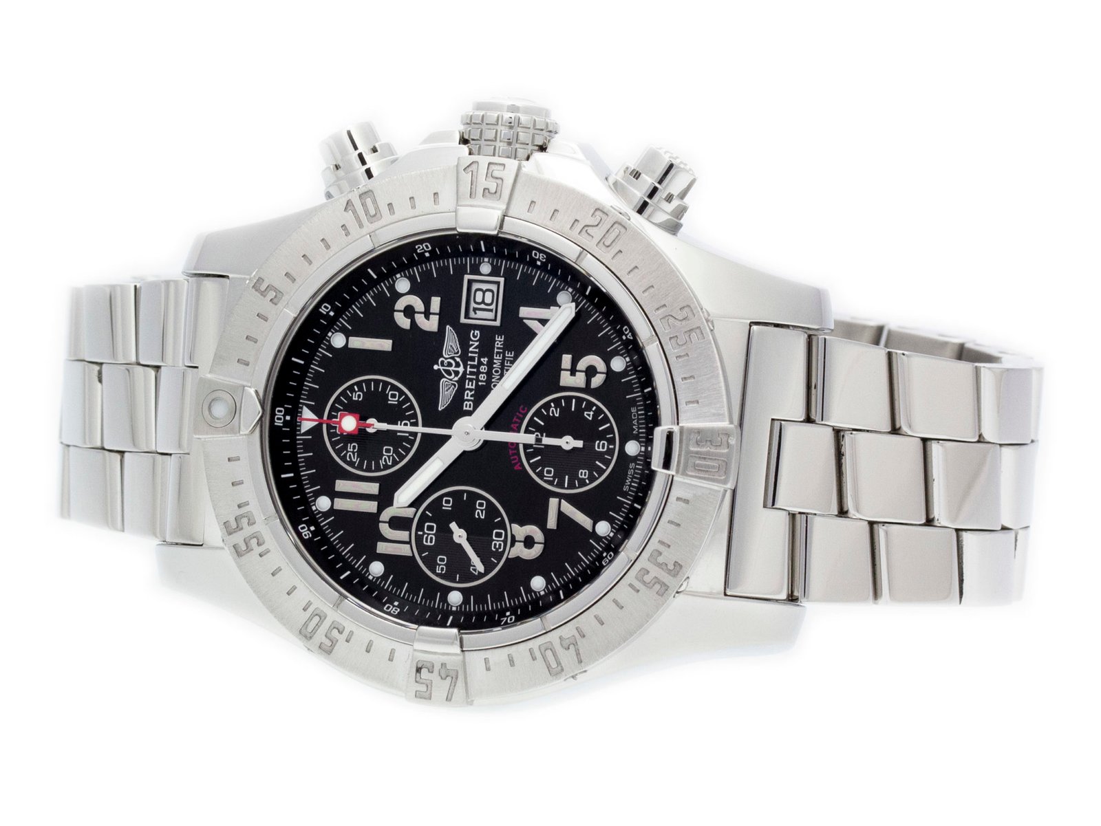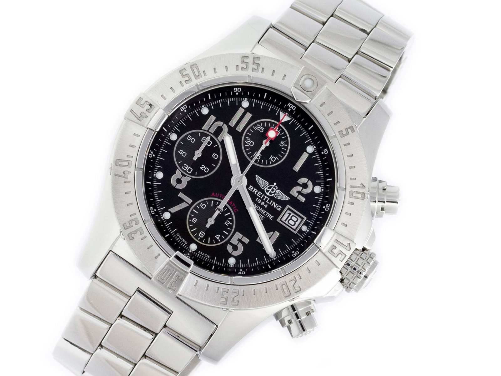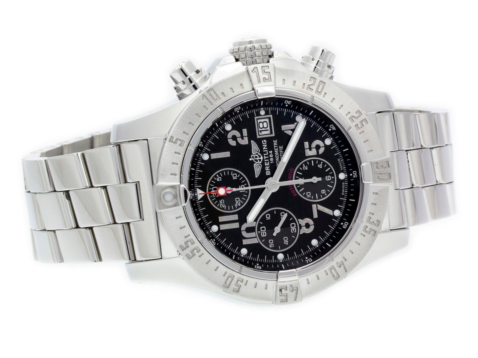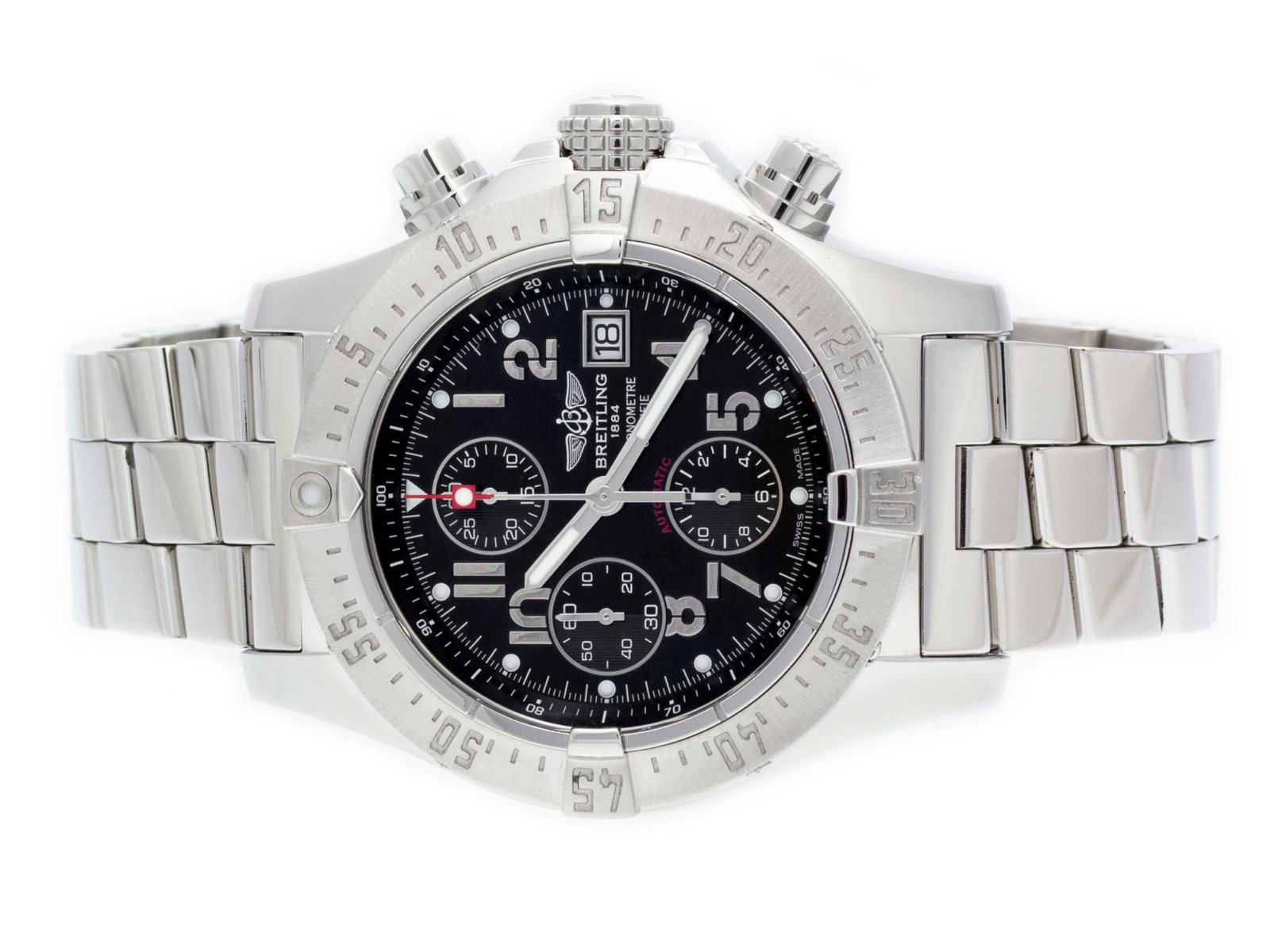 DialBlack Dial w/ Three Silver Sub-dials, Steel Stick Indexes, Date at 3
