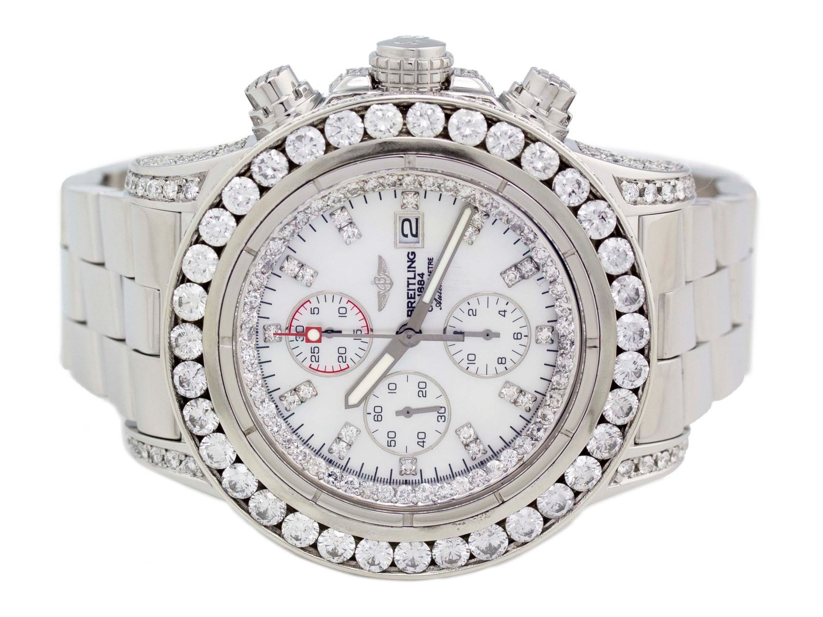 Breitling – Super Avenger – – Stainless Steel – Custom Made Diam Bezel – MOP Diam Dial – Stainless Steel Bracelet – Vendor Style #: A13370