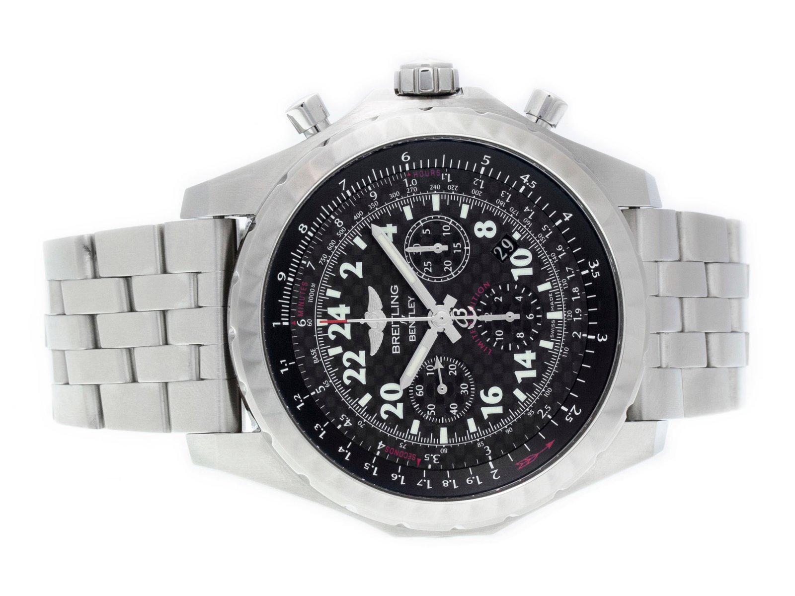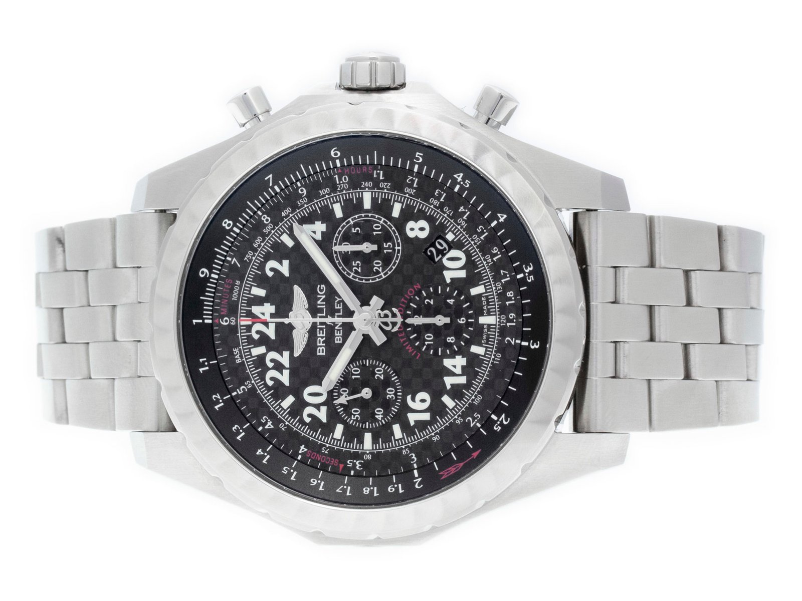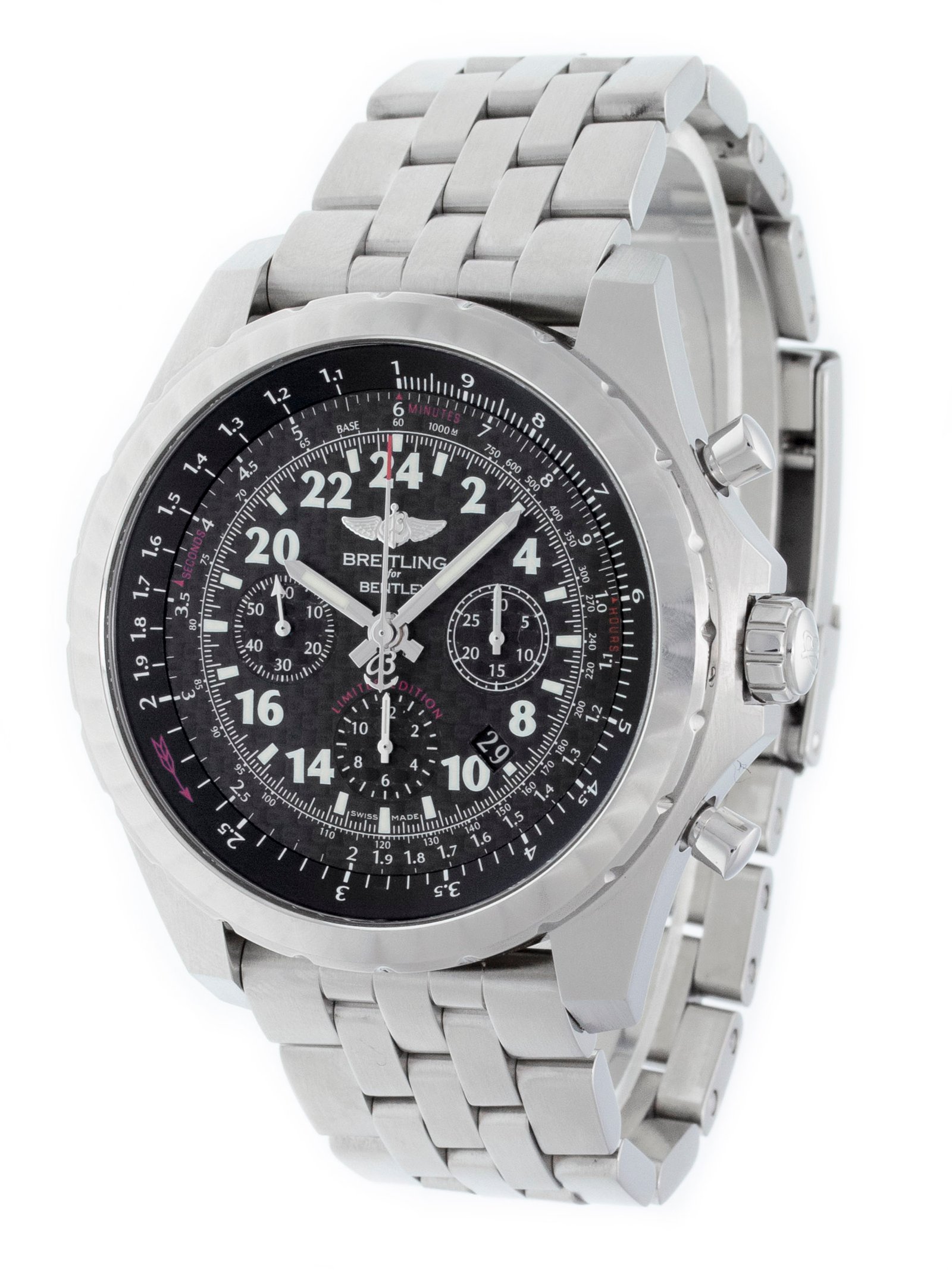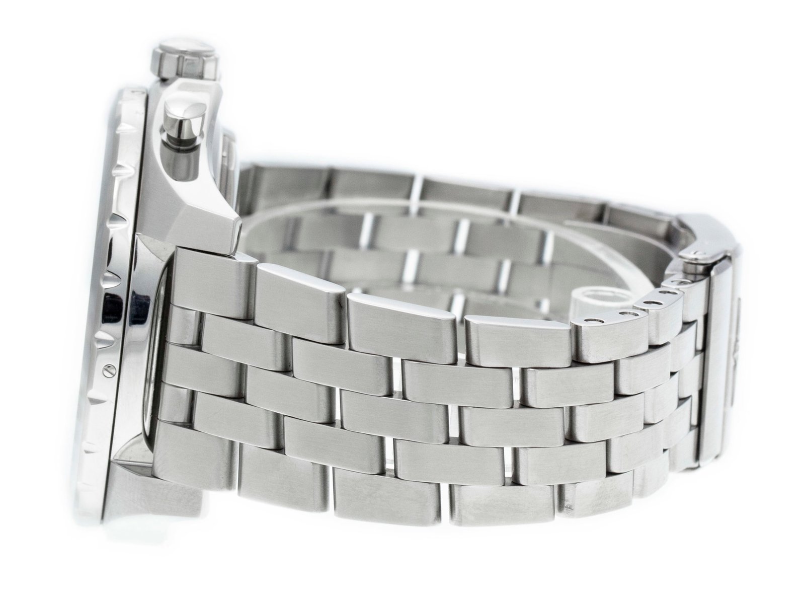 DialBlack Dial w/ Three Sub-dials, Arabic Numerals & Stick Indexes, Slide Rule Scale on Inner Bezel, Date Between 8 & 10
