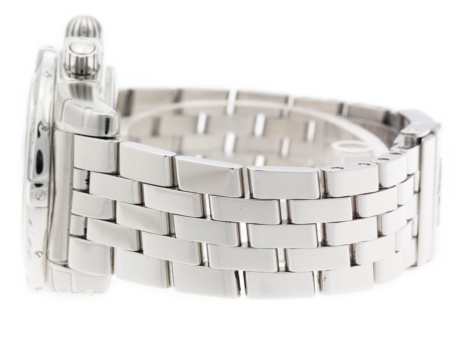 Black Dial w/ Luminescent Stick Indexes, Three Silver Sub-dials, Date Between 4 & 5