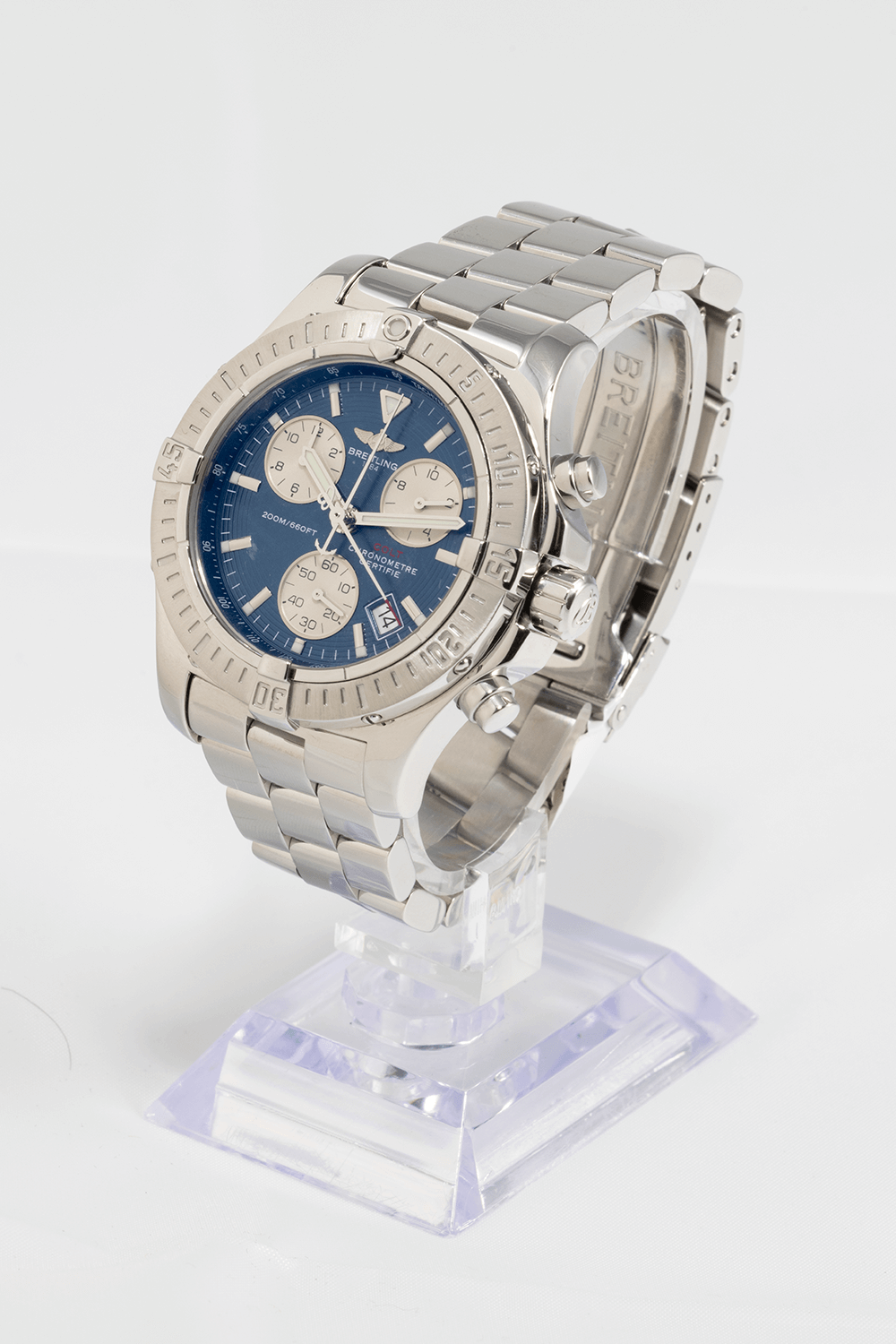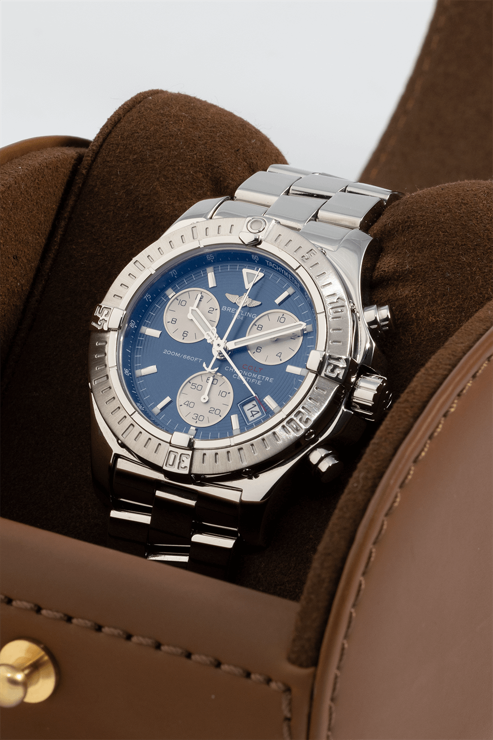 The Breitling Colt Chronograph A73380 is the perfect combination of style and functionality. This watch features a 42mm stainless steel case, a blue dial with luminescent hands and markers, and stainless steel bracelet. The Colt Chronograph is powered by Breitling’s in-house quartz movement and features a chronograph function, a date display, and a unidirectional rotating bezel. The watch is also water-resistant up to 200 meters, making it suitable for diving and other water activities. The watch’s design is inspired by the military, making it perfect for those who appreciate rugged style. Its precision, durability, and style make it a must-have for any watch enthusiast or collector looking for a timepiece that combines functionality and style.
