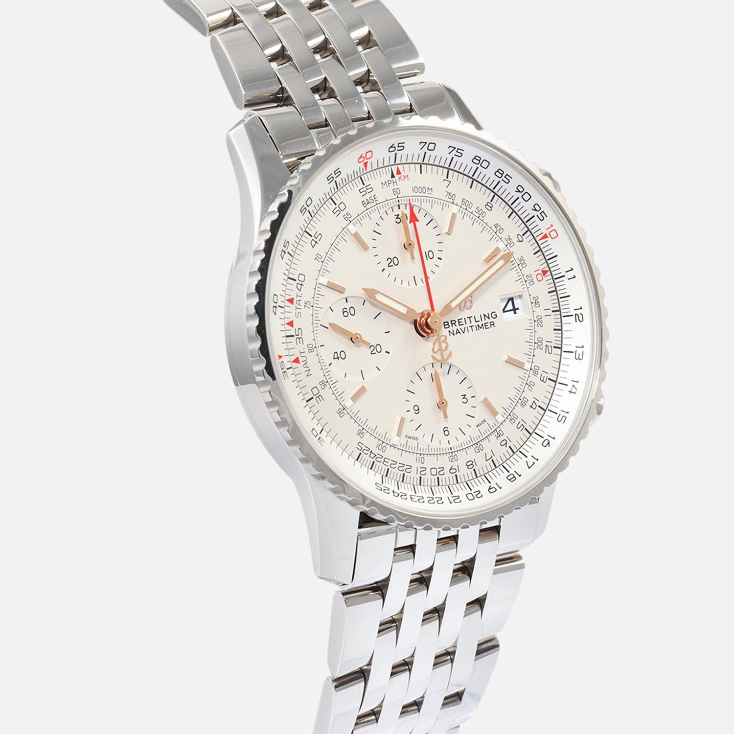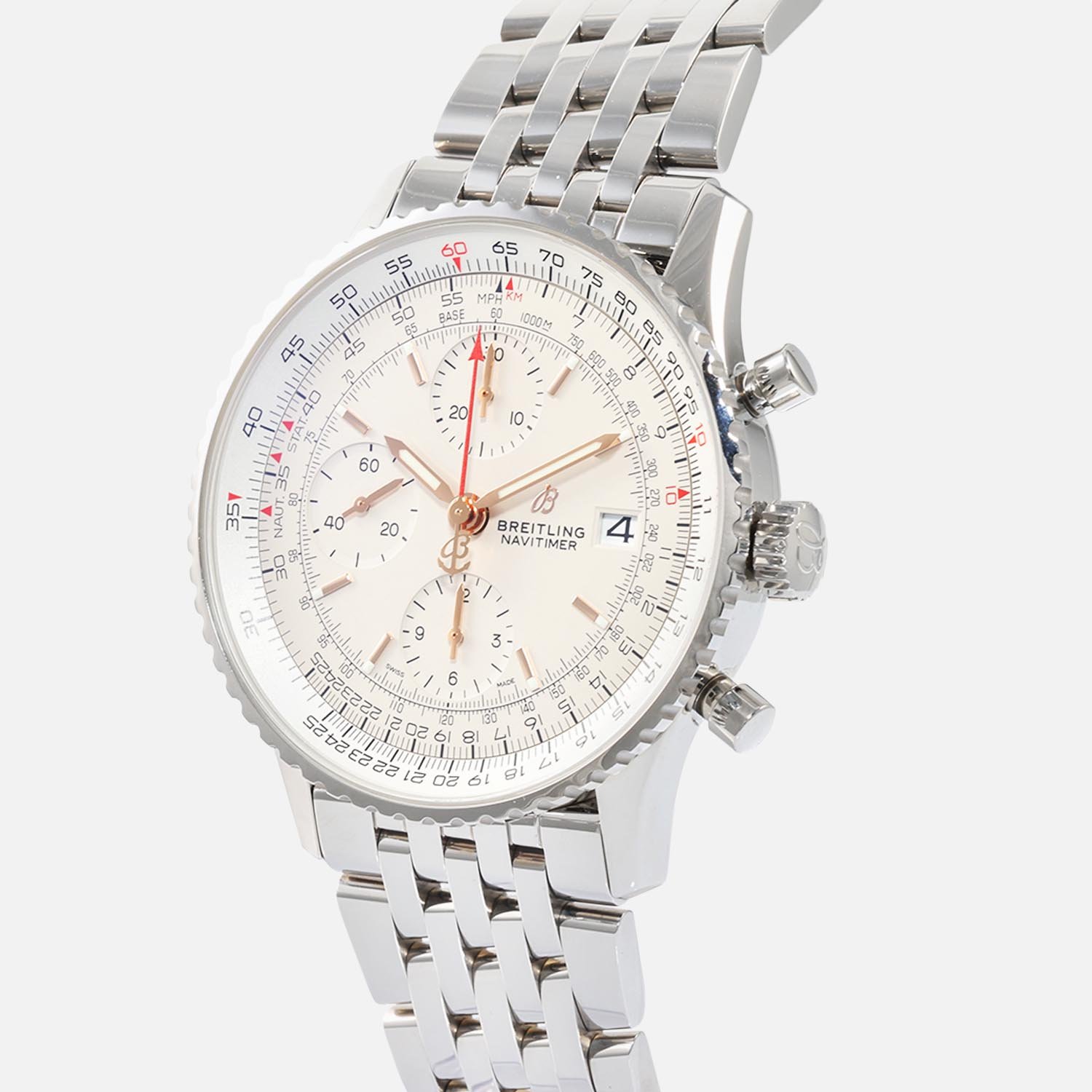 Powered by the Breitling Calibre 13 Automatic movement, the Navitimer 1 offers exceptional accuracy and reliability. Its bi-directional rotating bezel, combined with the silver dial featuring three subdials and index markers, makes it functional and fashionable.