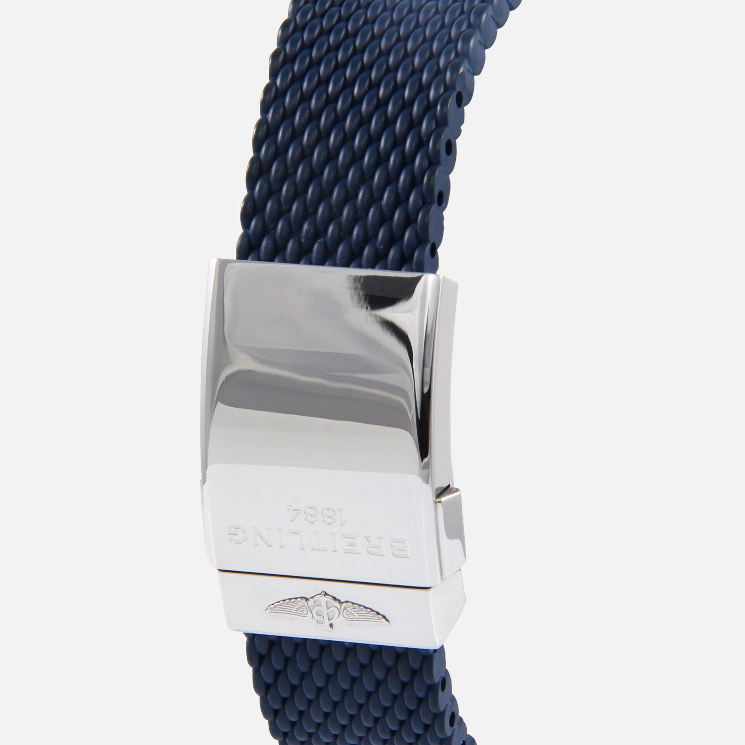 The captivating blue dial, adorned with sophisticated index markers, exudes a sense of luxury and precision. Powered by the Breitling Calibre B20 self-winding automatic movement, you can trust this watch to keep impeccable time for an astounding 70 hours.