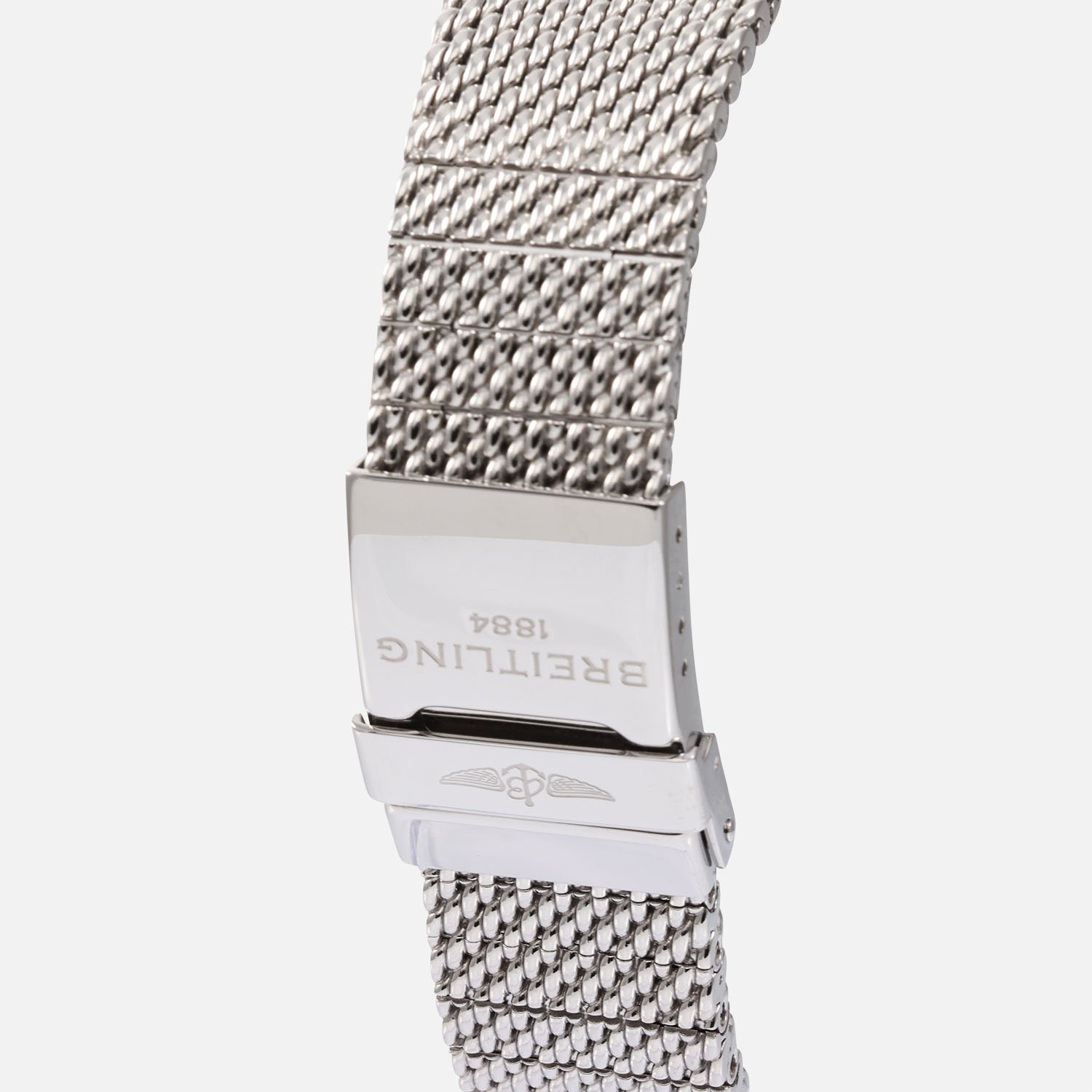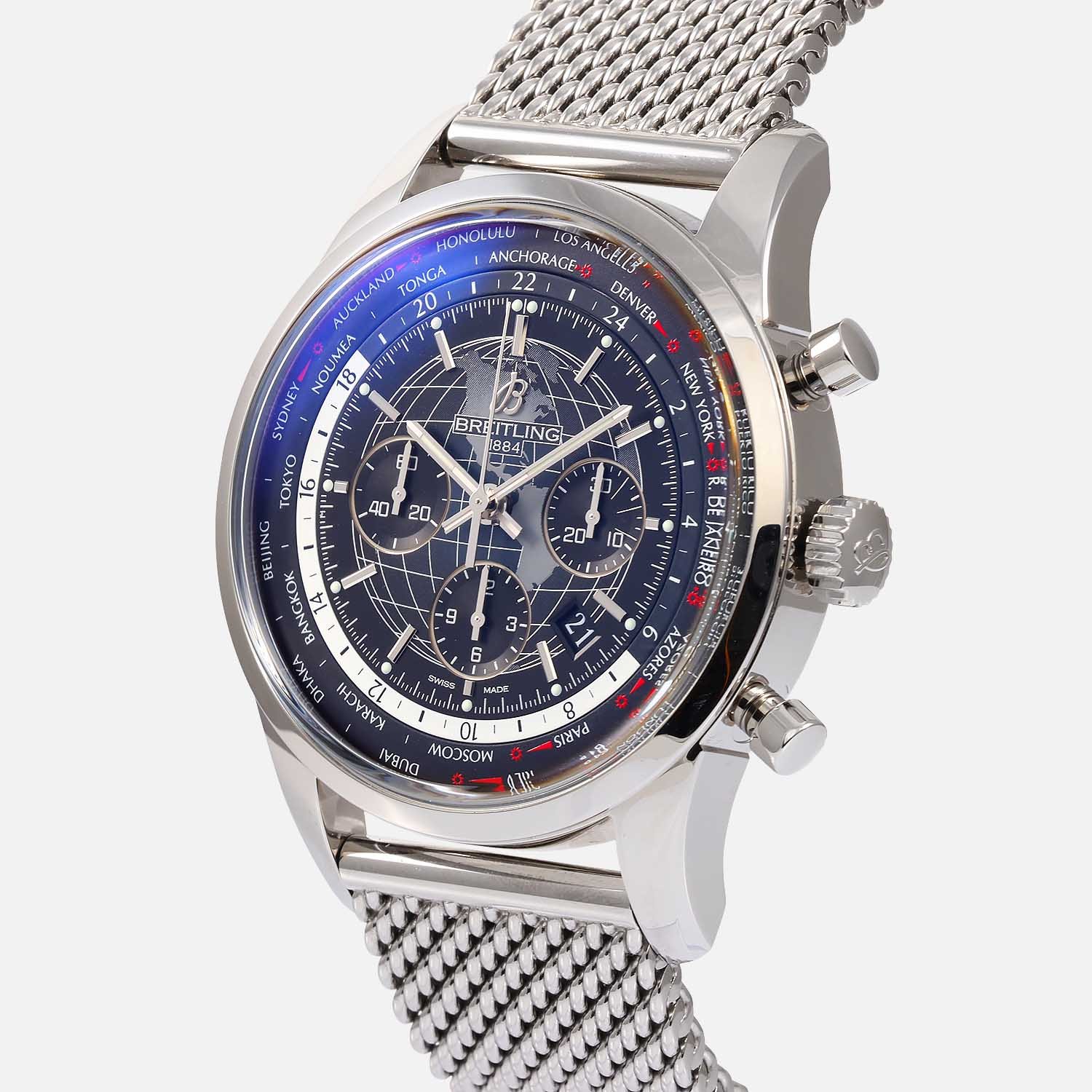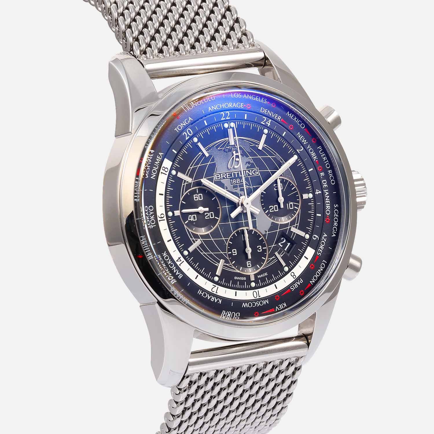 Designed for versatility, the Breitling Transocean Chronograph Unitime boasts a water resistance of 100 meters (330 feet), making it suitable for various occasions. The stainless steel mesh bracelet adds a touch of sophistication and comfort, complementing the watch’s overall aesthetic.
