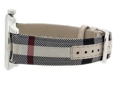 Multicolored Check Fabric and Leather Strap |