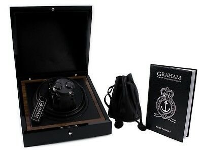 The exhibition caseback showcases the automatic movement, and the watch is water-resistant up to 100 meters. It comes with a Graham box, watch passport, and pouch, as well as a 2-year warranty. Experience the exceptional craftsmanship and add this remarkable timepiece to your collection today.