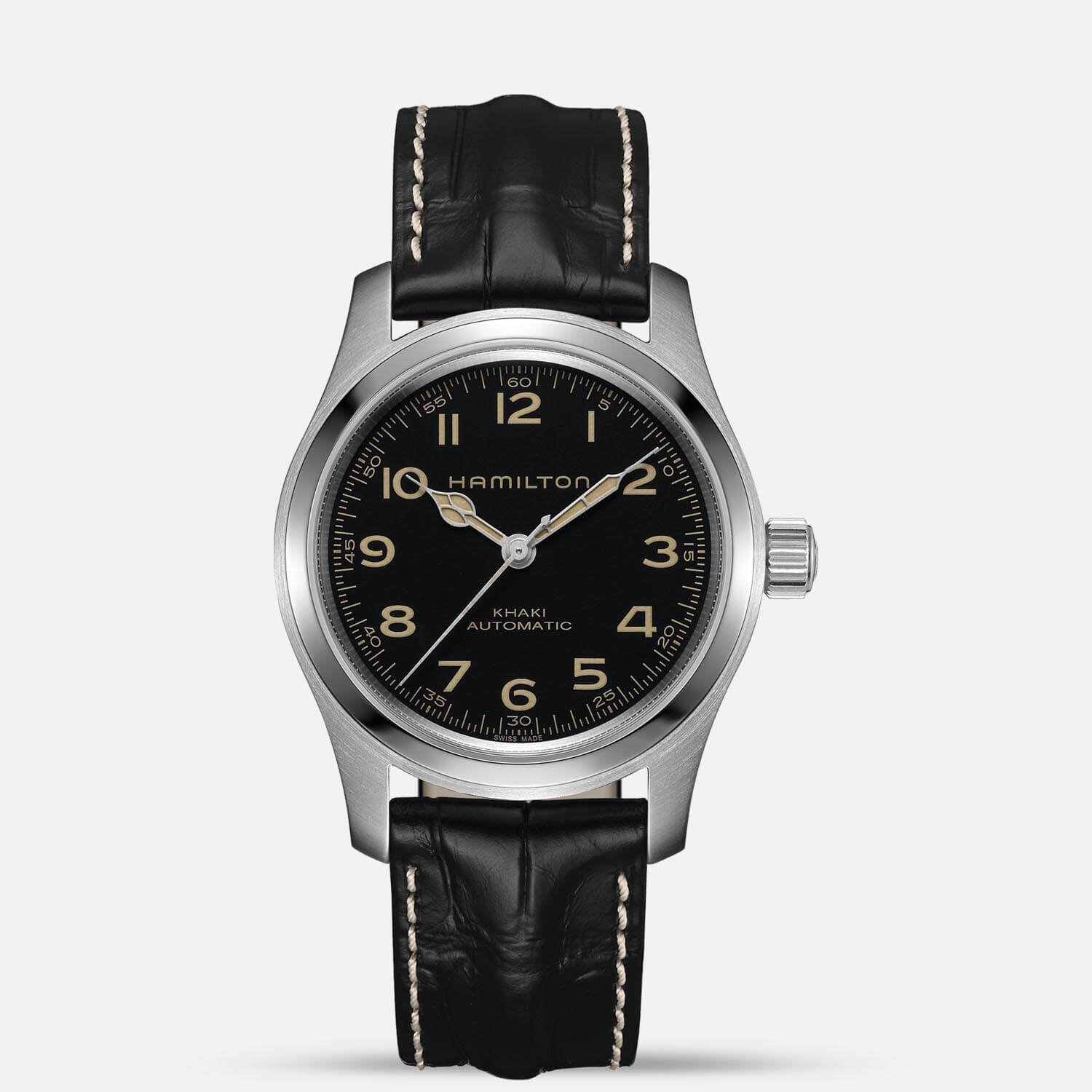Discover the Hamilton Khaki Field Murph Auto H70605731, a masterpiece of precision and style. Featuring the renowned Caliber H-10 movement, this watch combines elegance with durability, making it the ideal companion for your everyday journeys. With a sleek stainless steel case, scratch-resistant sapphire crystal, and water resistance up to 100 meters, it’s ready for any adventure you embark on. Witness the artistry within with its open case back and enjoy luxurious comfort with the calf leather strap. Elevate your style with this exceptional Hamilton timepiece.