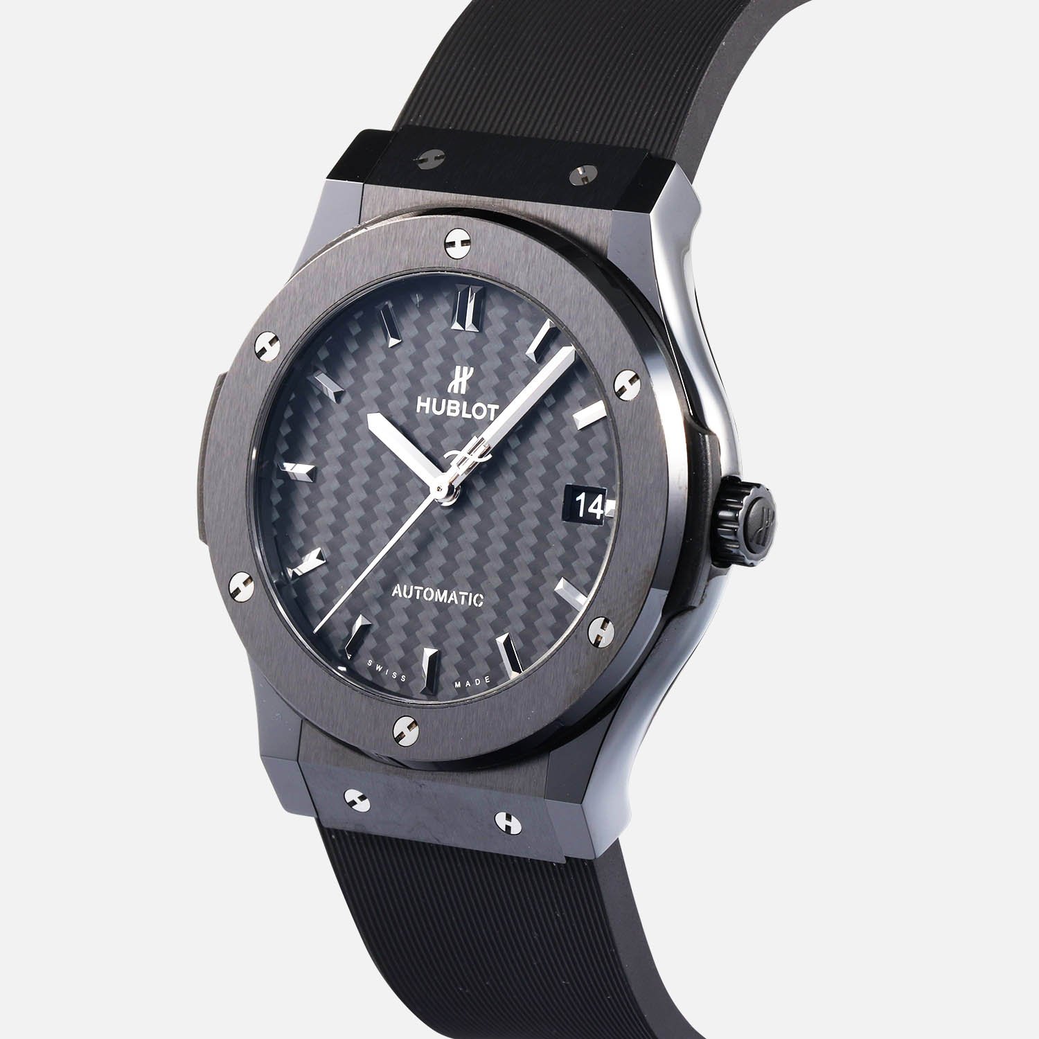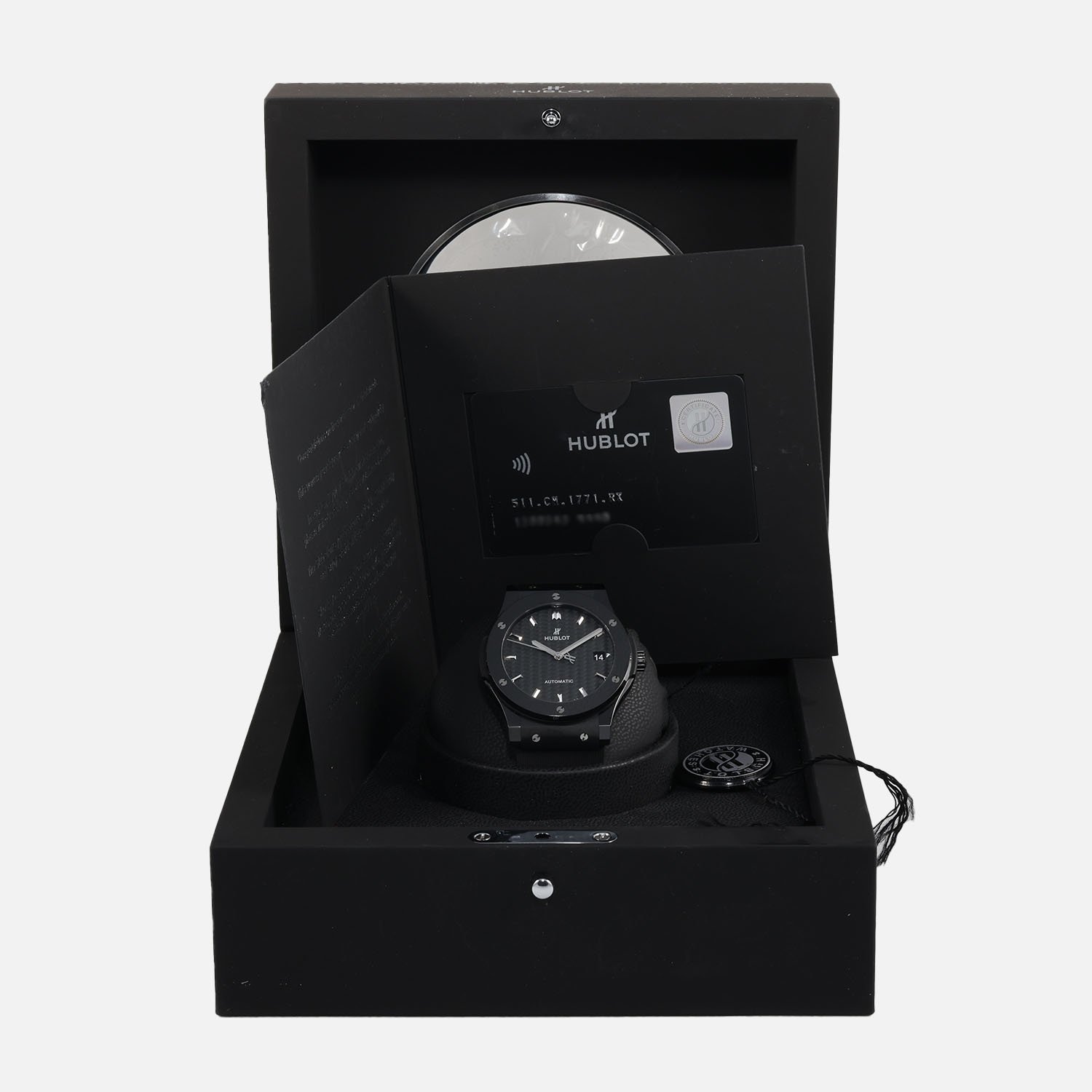 Explore the sophistication of the Pre-Owned Hublot Classic Fusion Black Magic 511.CM.1771.RX, where modern design meets precision engineering.