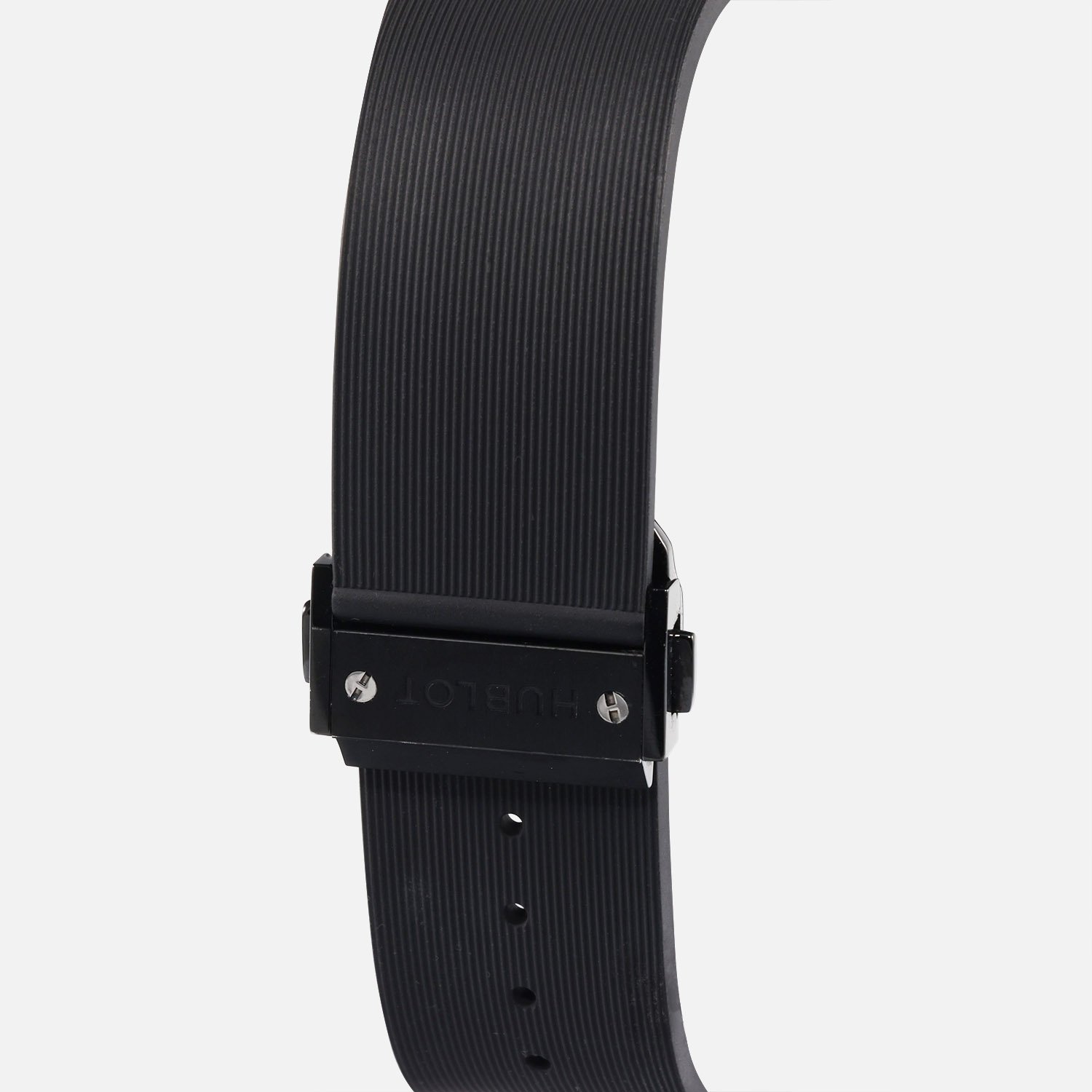 The black rubber strap ensures comfort on your wrist, secured by a black-plated stainless steel deployant buckle clasp.