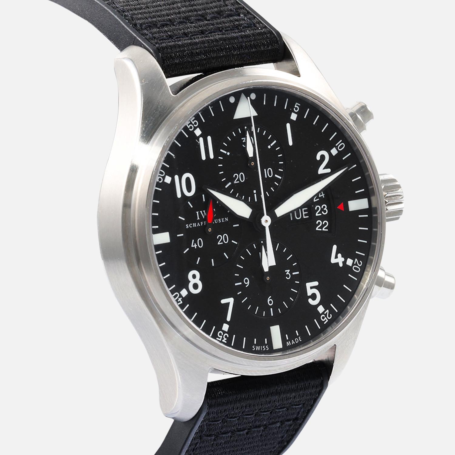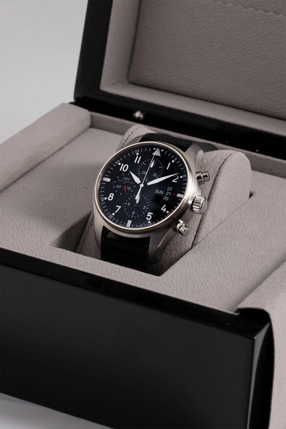 Discover the IWC Pilot Chrono IW377701, a rugged and precise timepiece that’s perfect for adventurers and aviators alike. With its 43mm stainless steel case and black dial featuring three black subdials and Arabic markers, this watch is both stylish and functional. The smooth bezel and black rubber and nylon strap with tang buckle complete the sporty look of the watch. Powered by the IWC Calibre 79320 automatic movement and water-resistant up to 60 meters (200 feet), this watch ensures exceptional accuracy and durability.