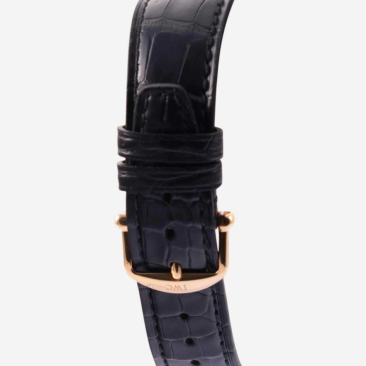 The black leather strap of the Portofino Automatic IW356306 adds a touch of sophistication and comfort to the watch. Featuring a tang clasp, it ensures a secure and adjustable fit, enhancing the overall elegance of the timepiece. The high-quality leather strap complements the 18K yellow gold case, making it perfect for both formal and casual occasions.