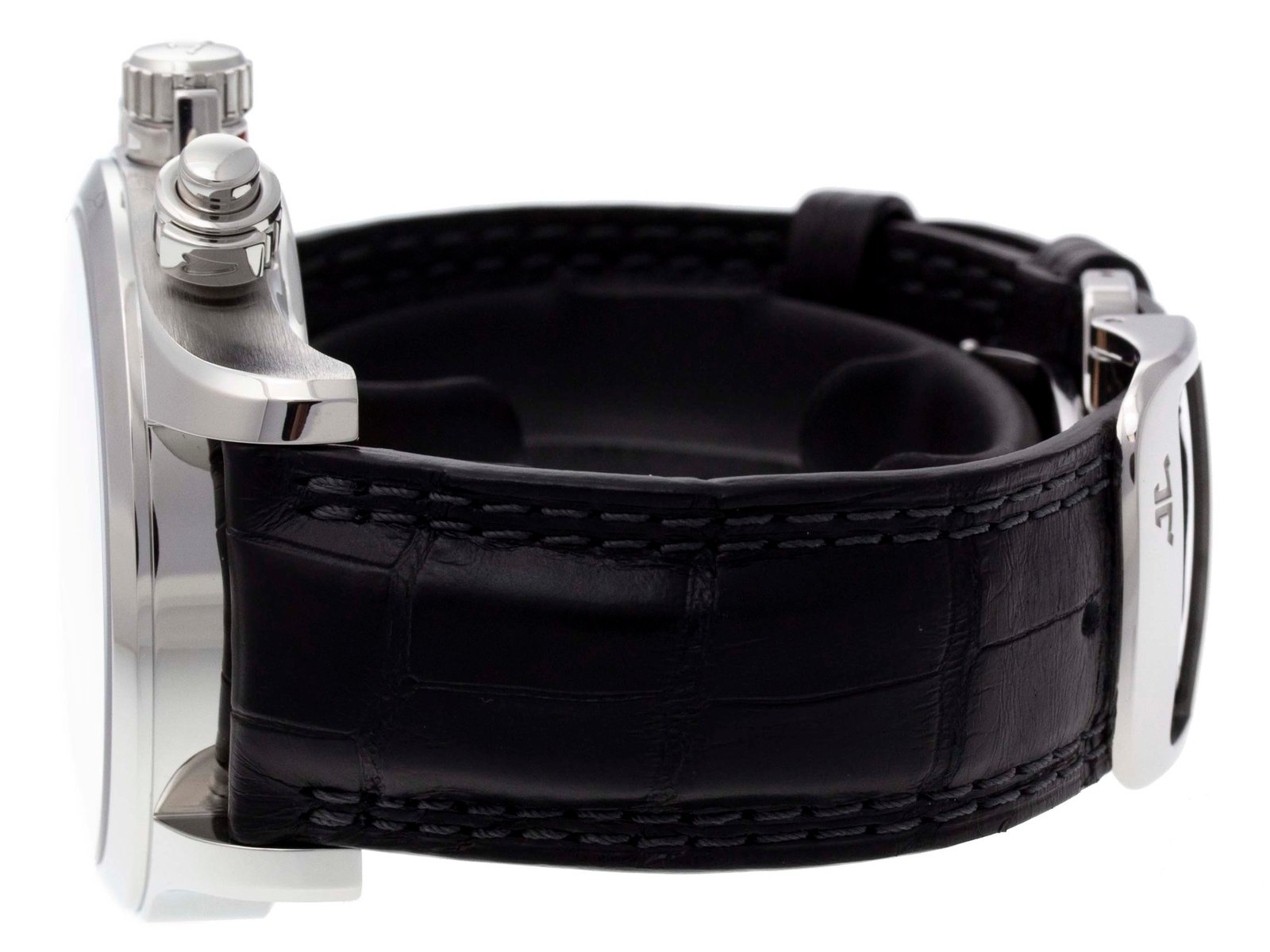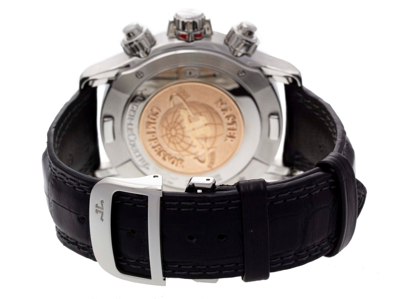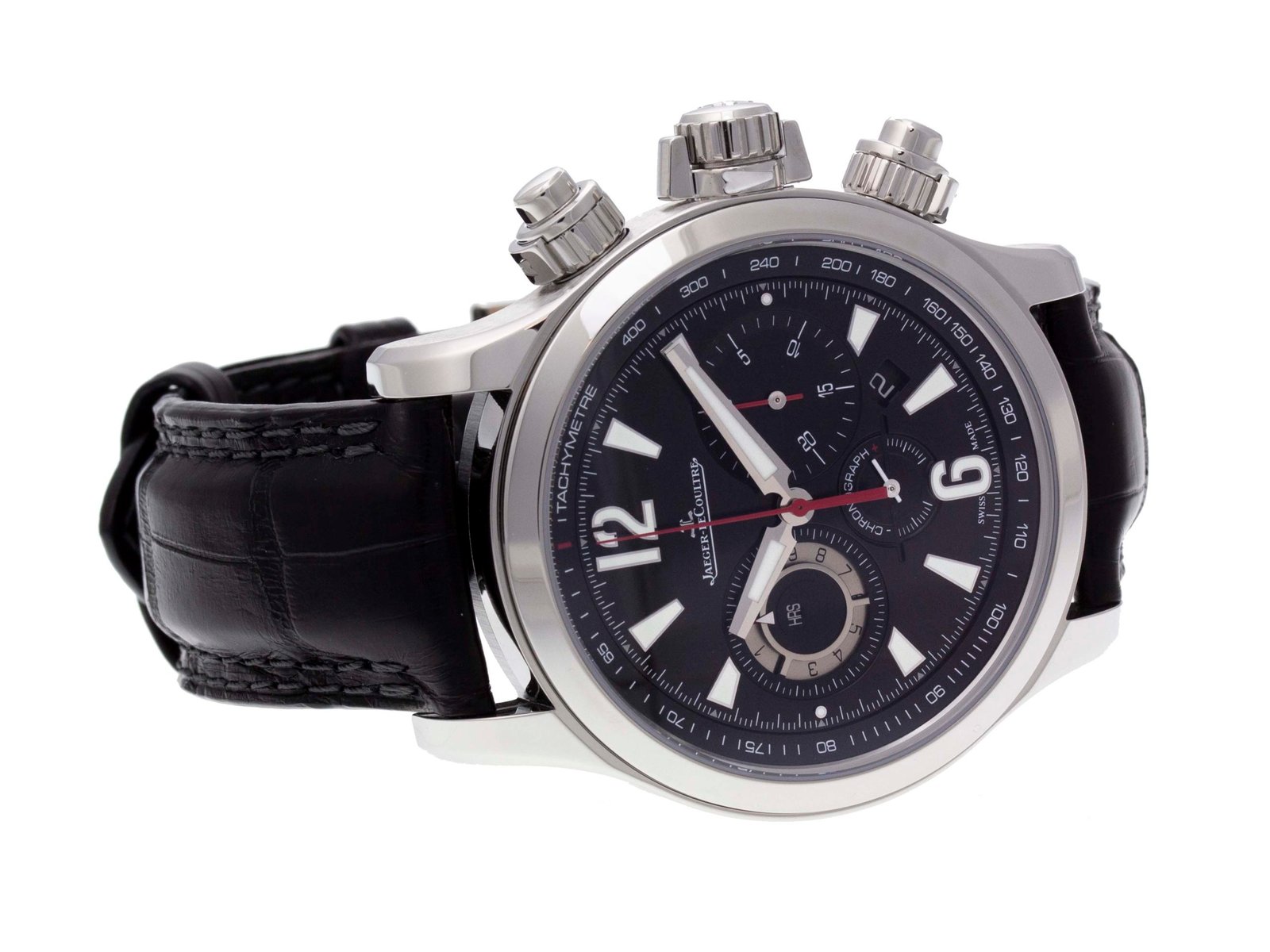 Jaeger Lecoultre – Master Compressor Chronograph – 41.5MM – Stainless Steel – Fixed Bezel – Black Index w/ Three Sub-dials, Date Between 4 & 5 Dial – Black Leather Strap – Vendor Style #: Q1758421