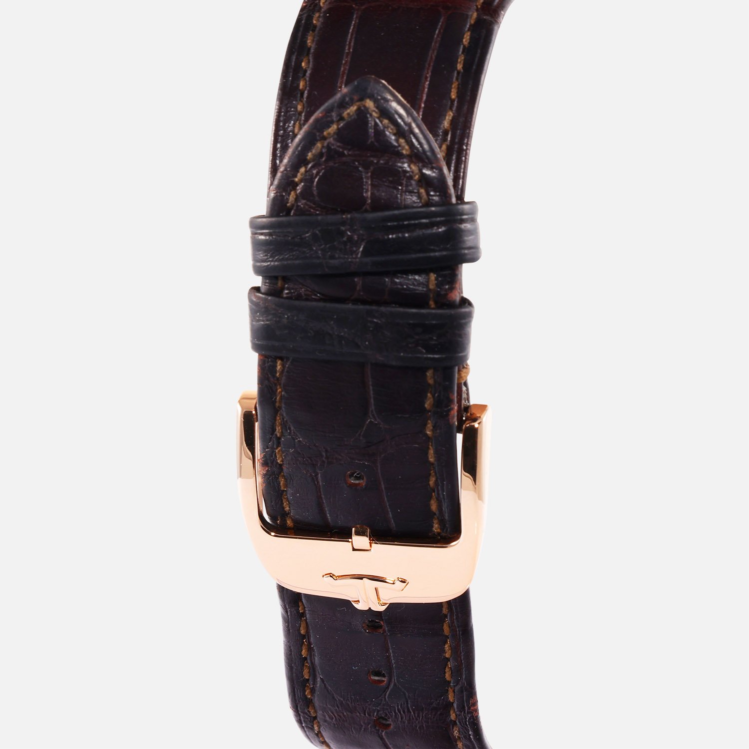 Enhancing both comfort and style, the brown leather strap complements the rose gold case, providing a luxurious feel on the wrist. The tang buckle ensures a secure and adjustable fit, adding a practical touch to the overall design.