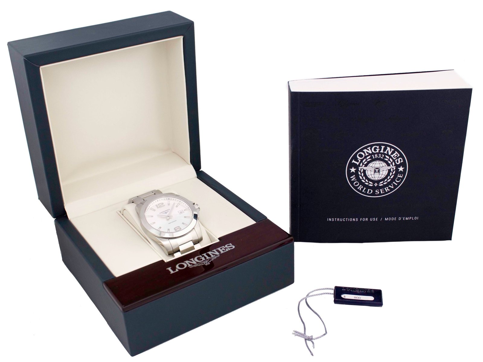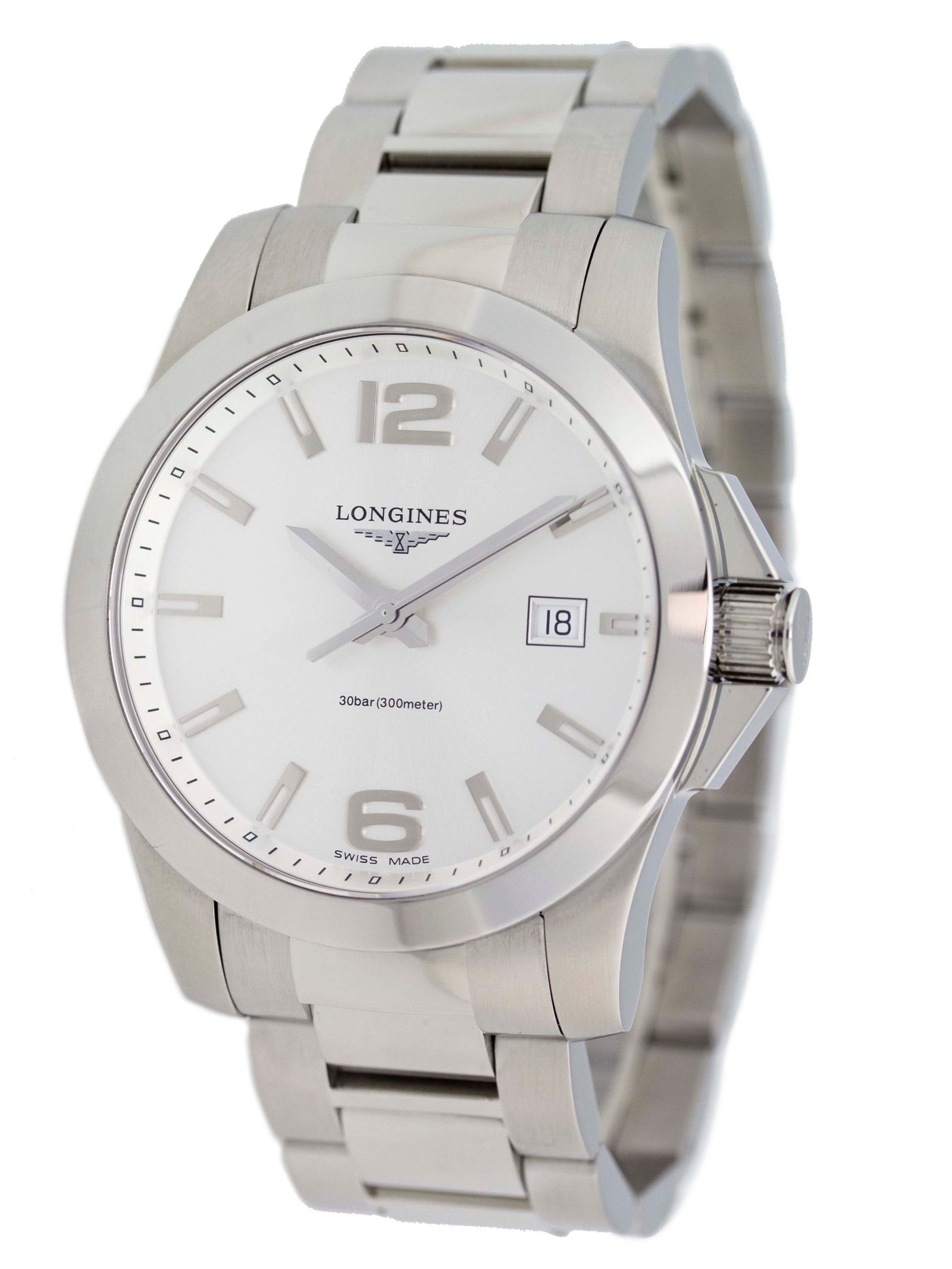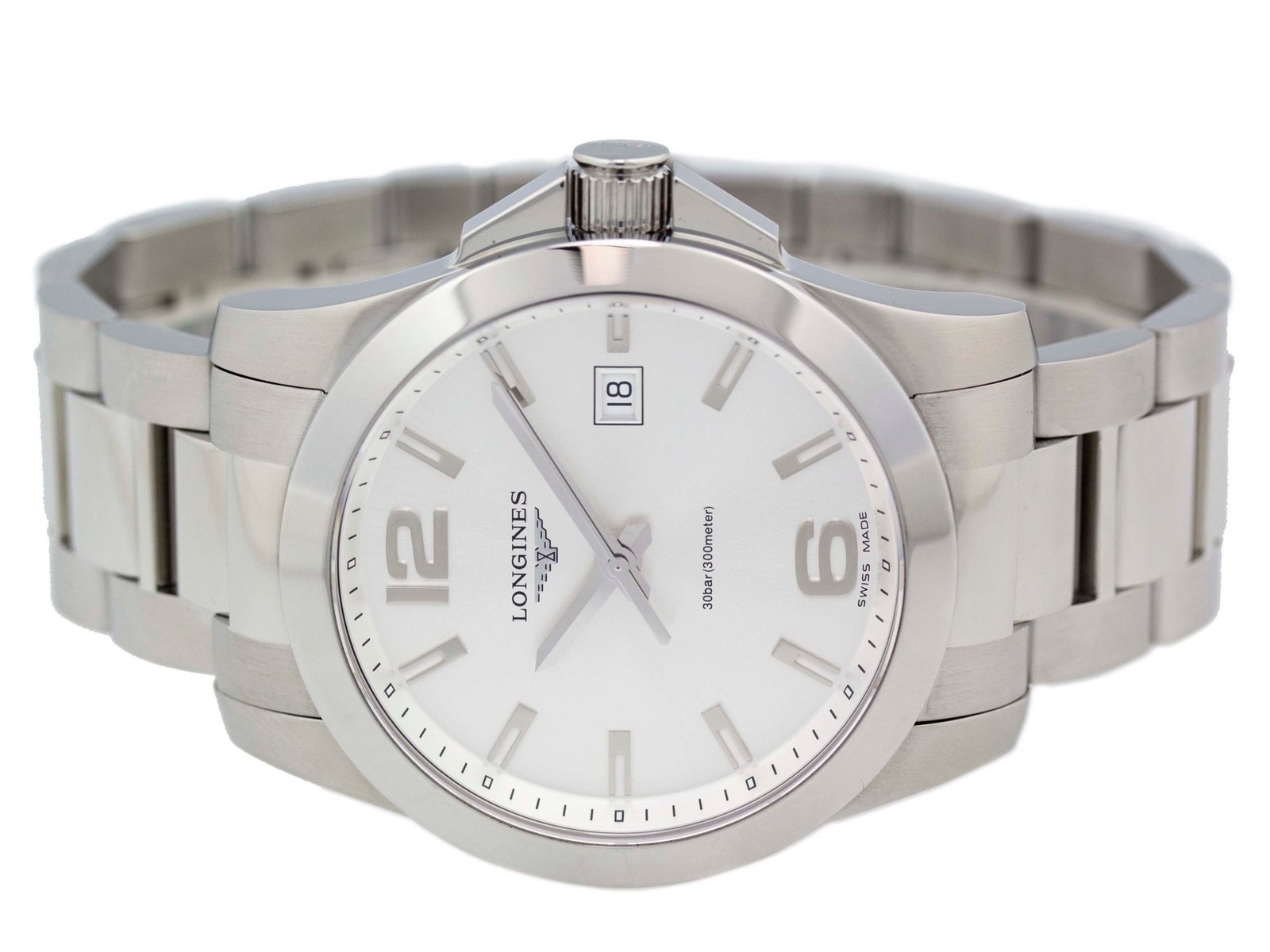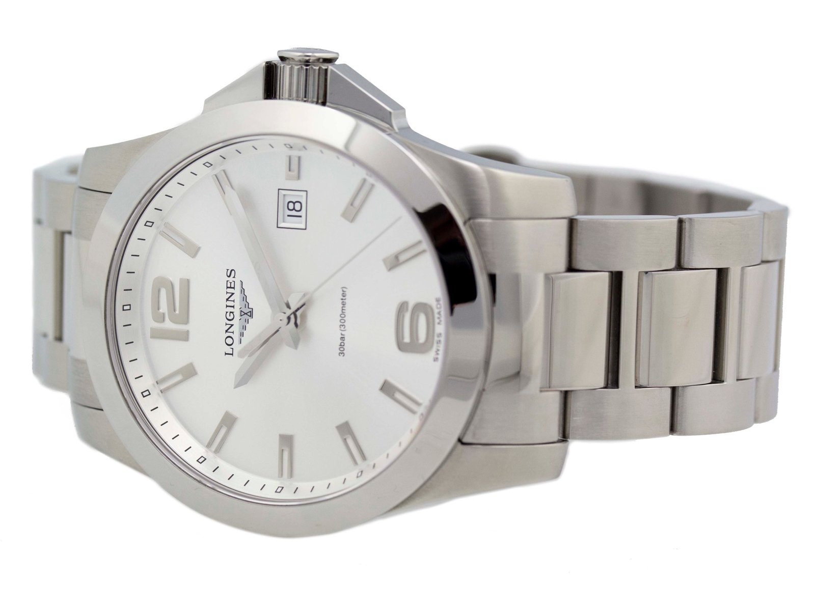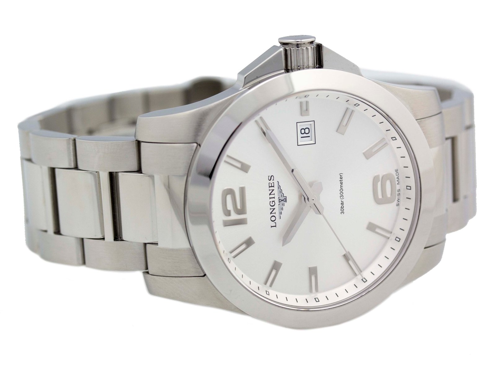 Longines – Conquest – 41MM – Stainless Steel – Fixed, Stainless Steel Bezel – Silver Dial – Stainless Steel – Yes/Yes – Vendor Style #: L3.659.4.76.6