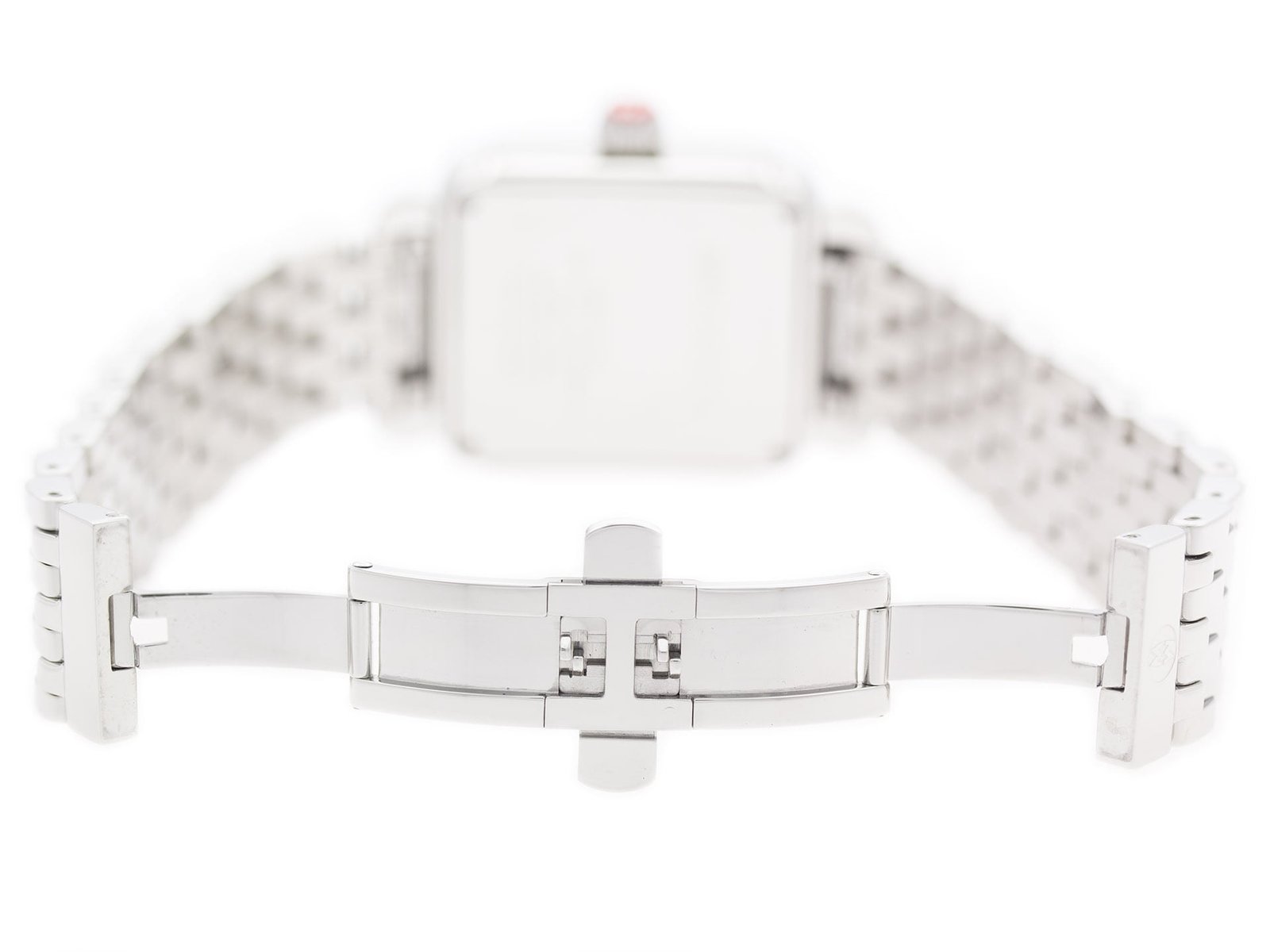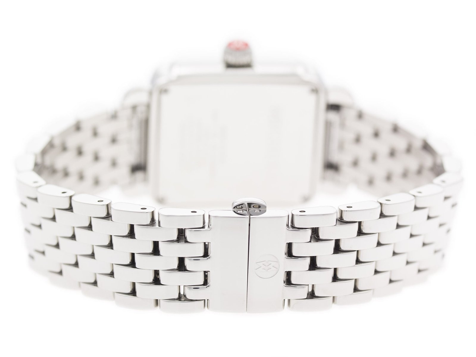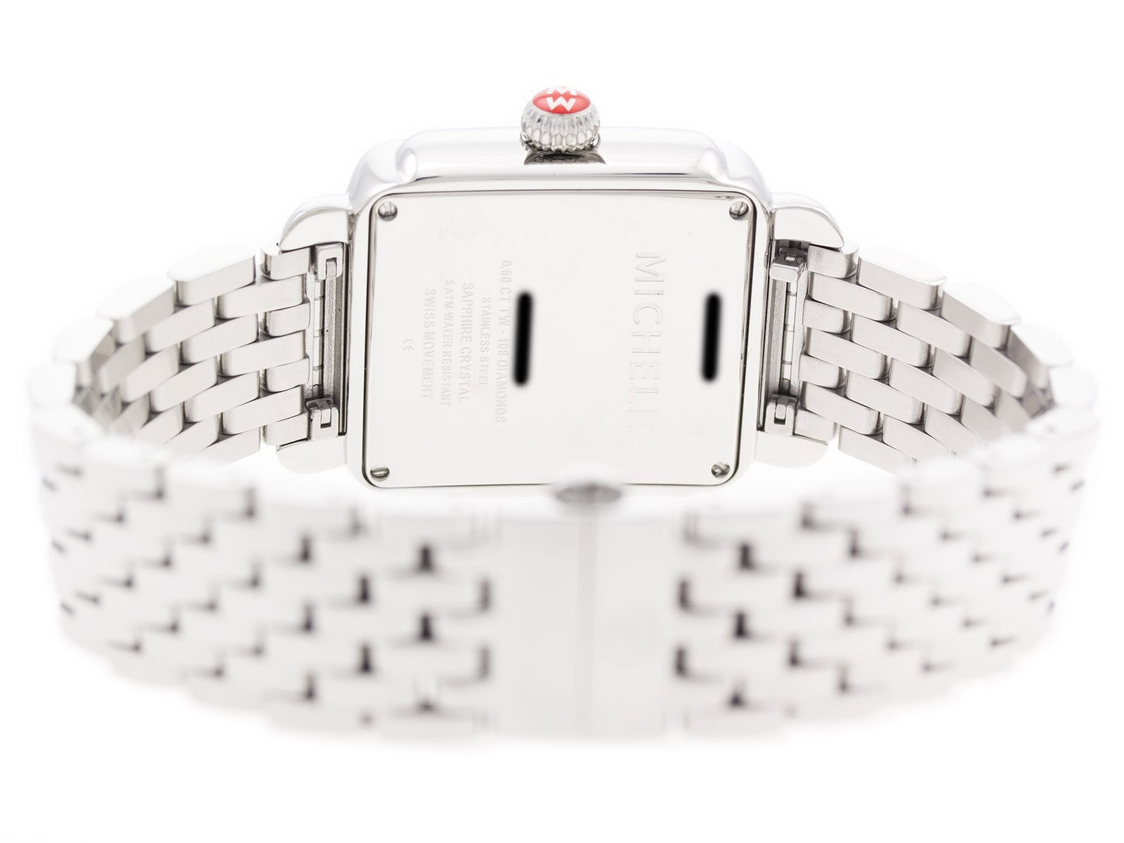 Stainless steel Michele Deco Signature MWW06T000055, water resistant to 50m, with diamond bezel, date, and bracelet.