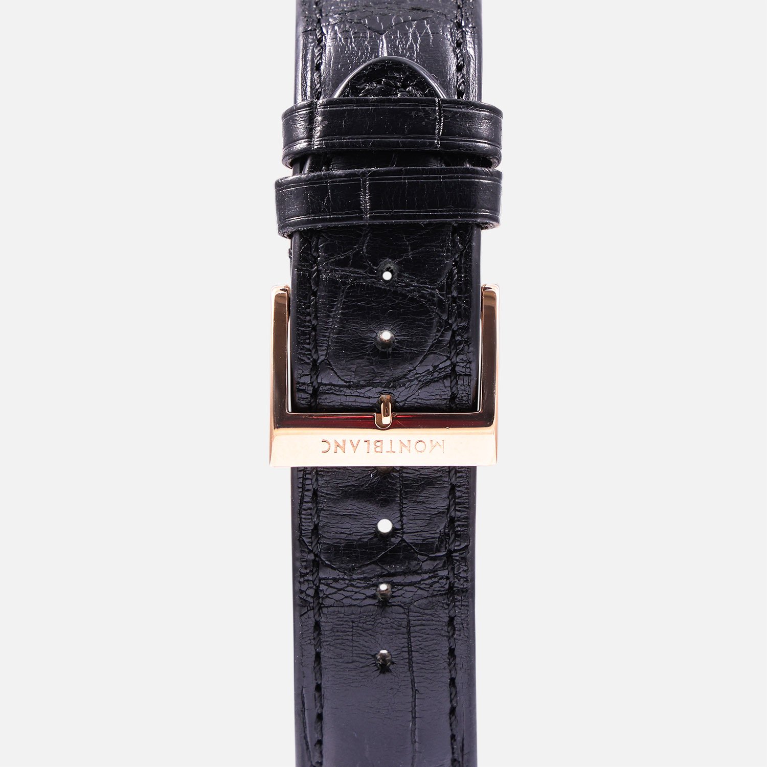Fitted with a black alligator leather strap and secured by a matching gold pin buckle, this model is ideal for formal occasions and collectors who value understated luxury.