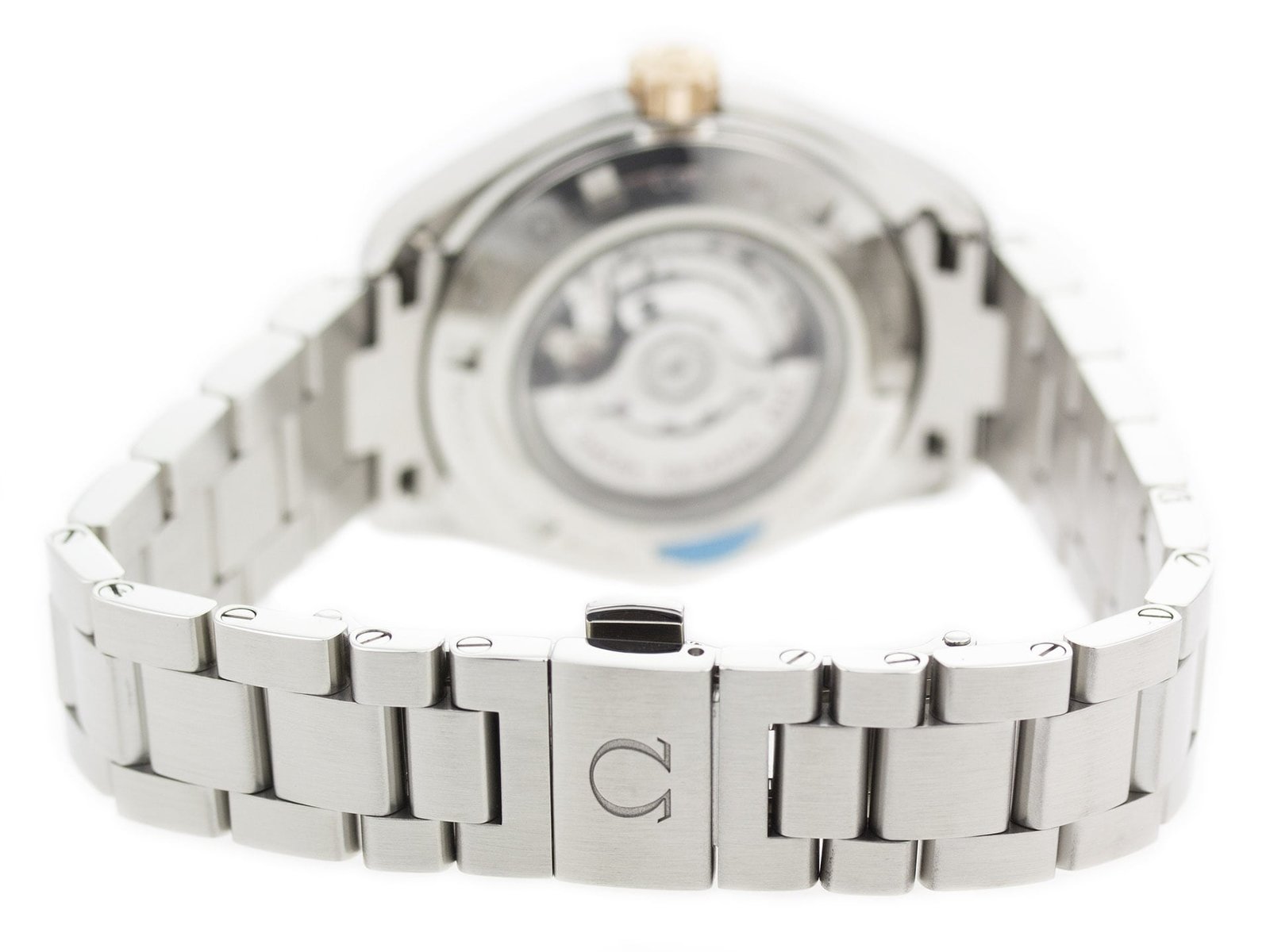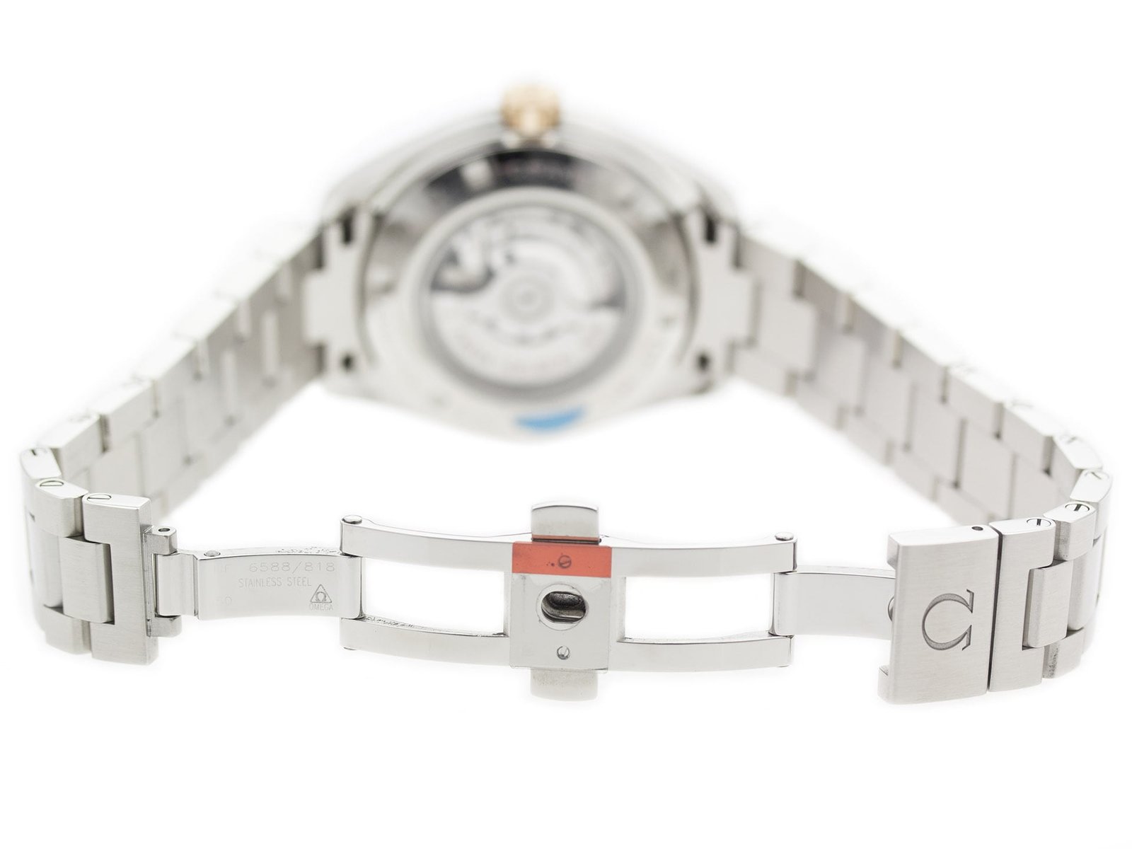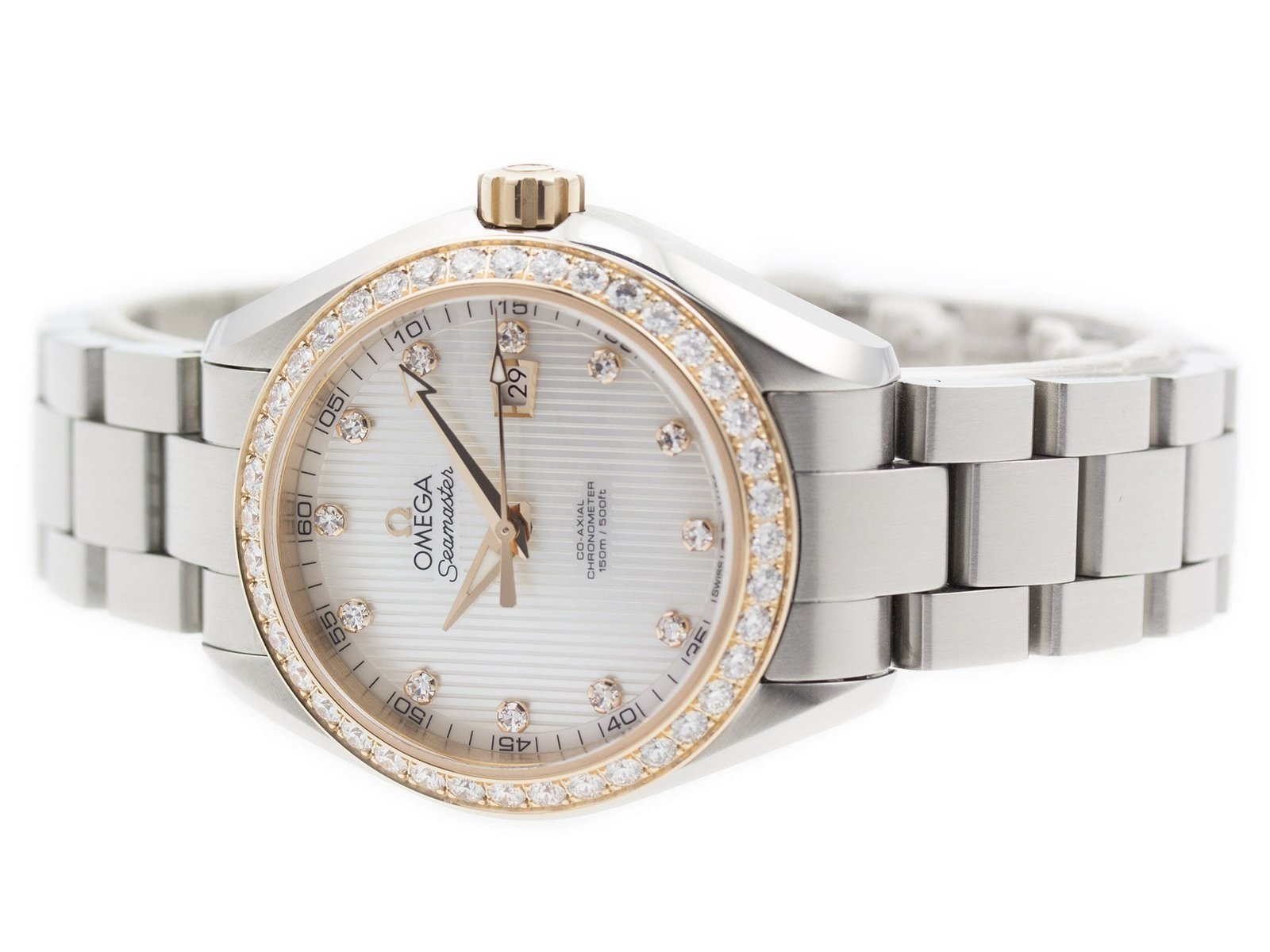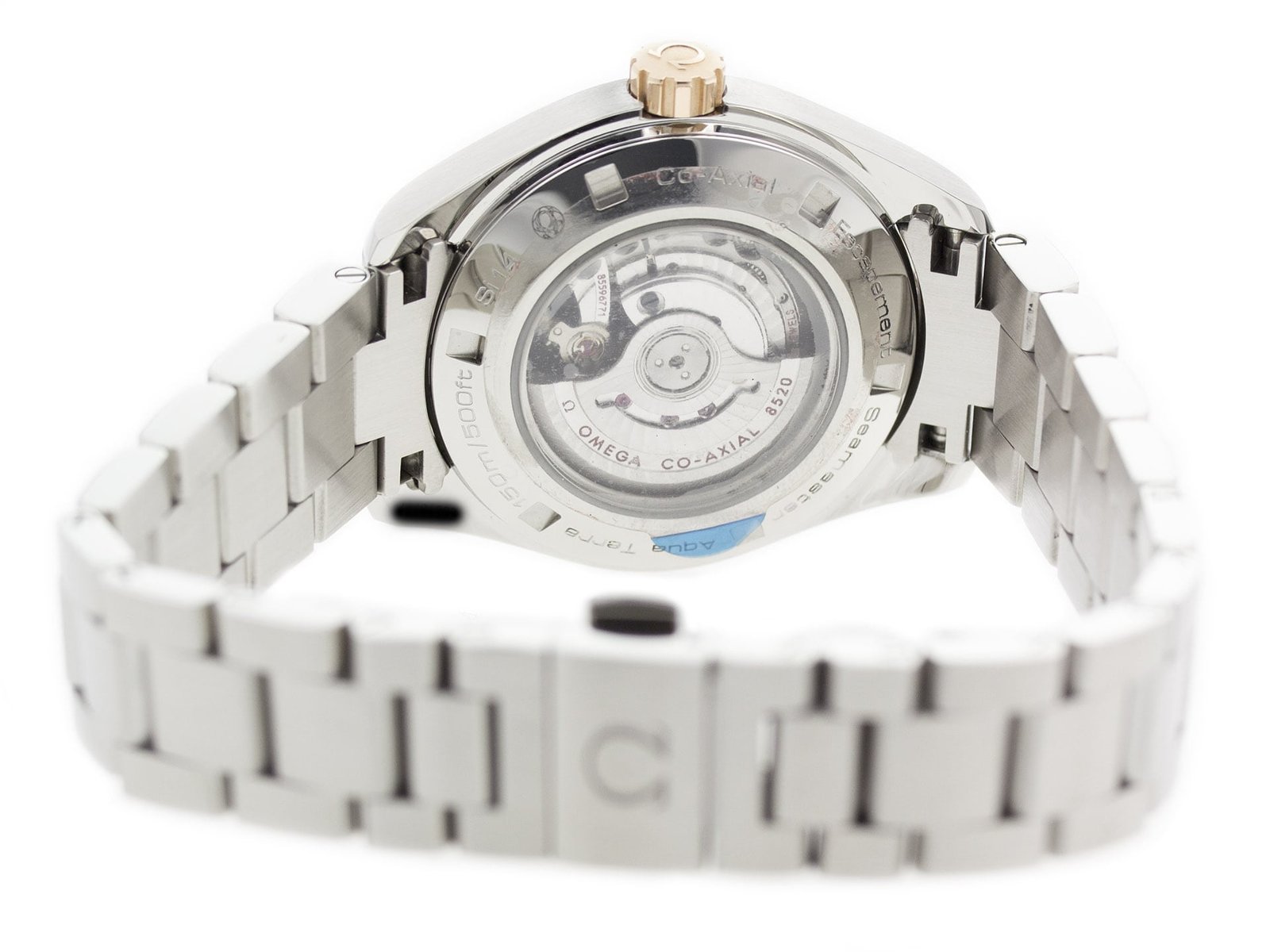 Stainless steel & 18K rose gold Omega Seamaster Aqua Terra 231.25.34.20.55.003 watch, water resistance to 150m, with diamond bezel & indexes.