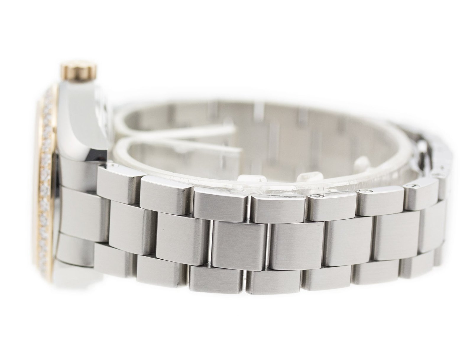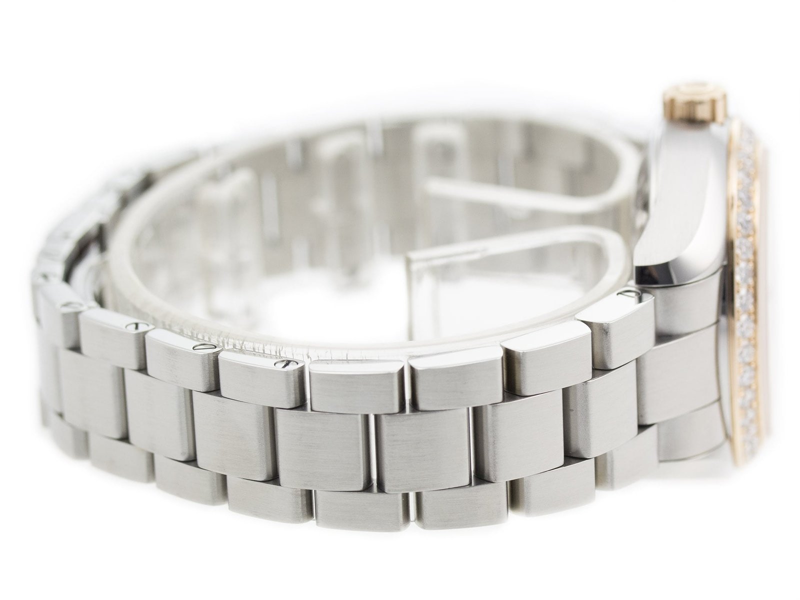 | Condition: | Excellent Display Model, Faint Scratches on Case & Crown | Dial Markers: | White Mother-of-Pearl Dial w/ Diamond Indexes, Date at 3 | |
