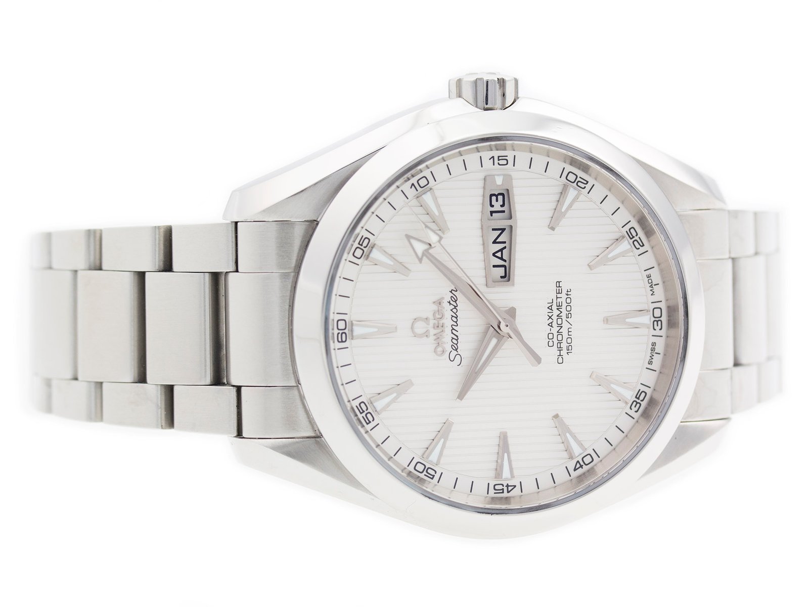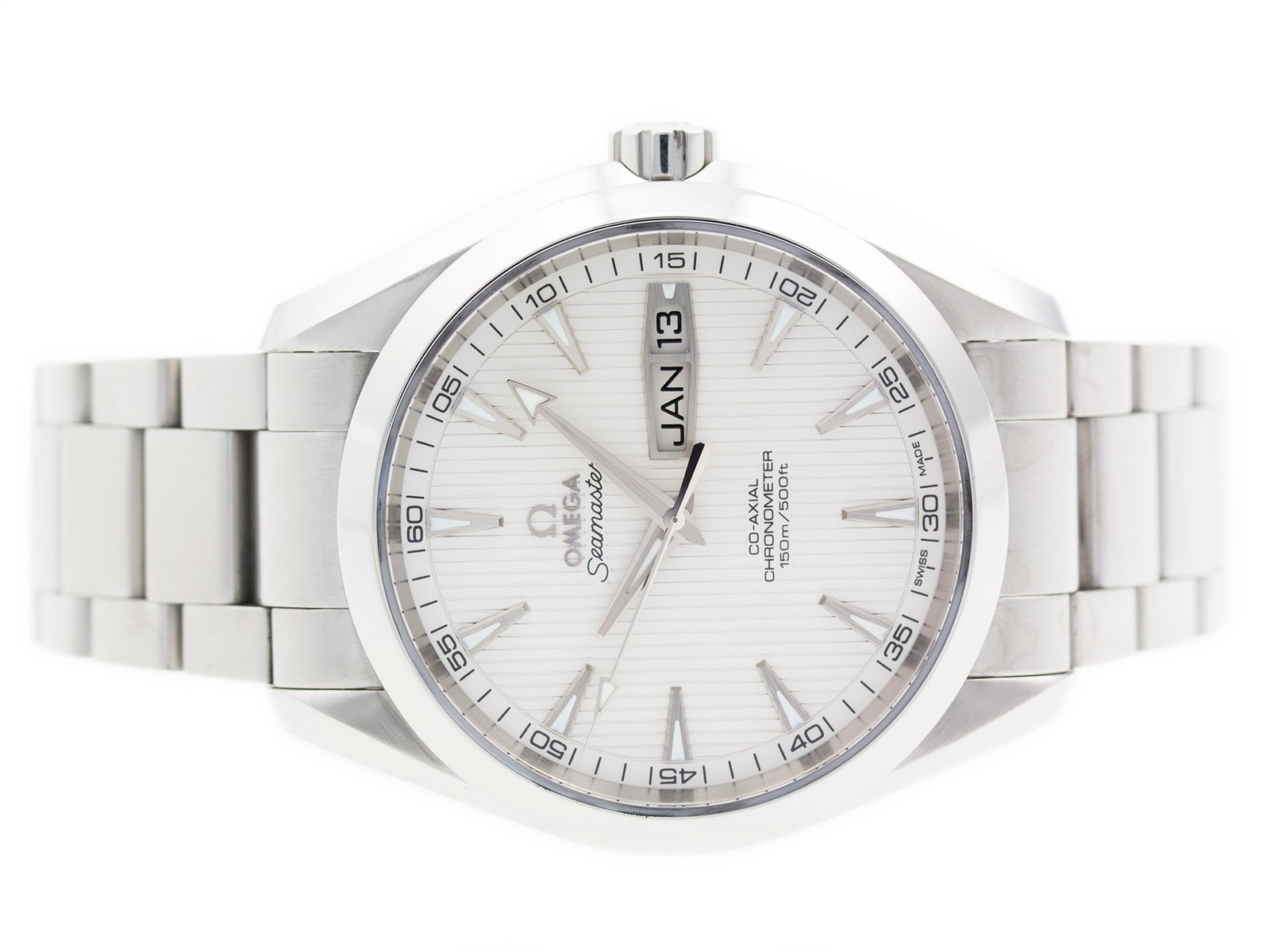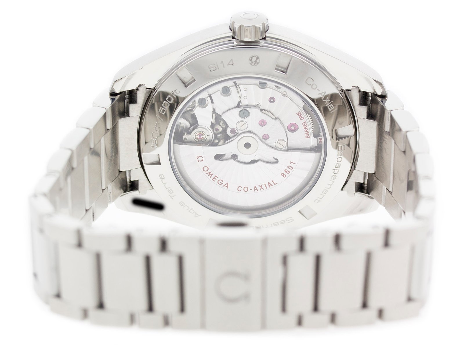 Stainless steel Omega Seamaster Aqua Terra 231.10.43.22.02.001 watch, water resistance to 150m, with date, month, and calendar.