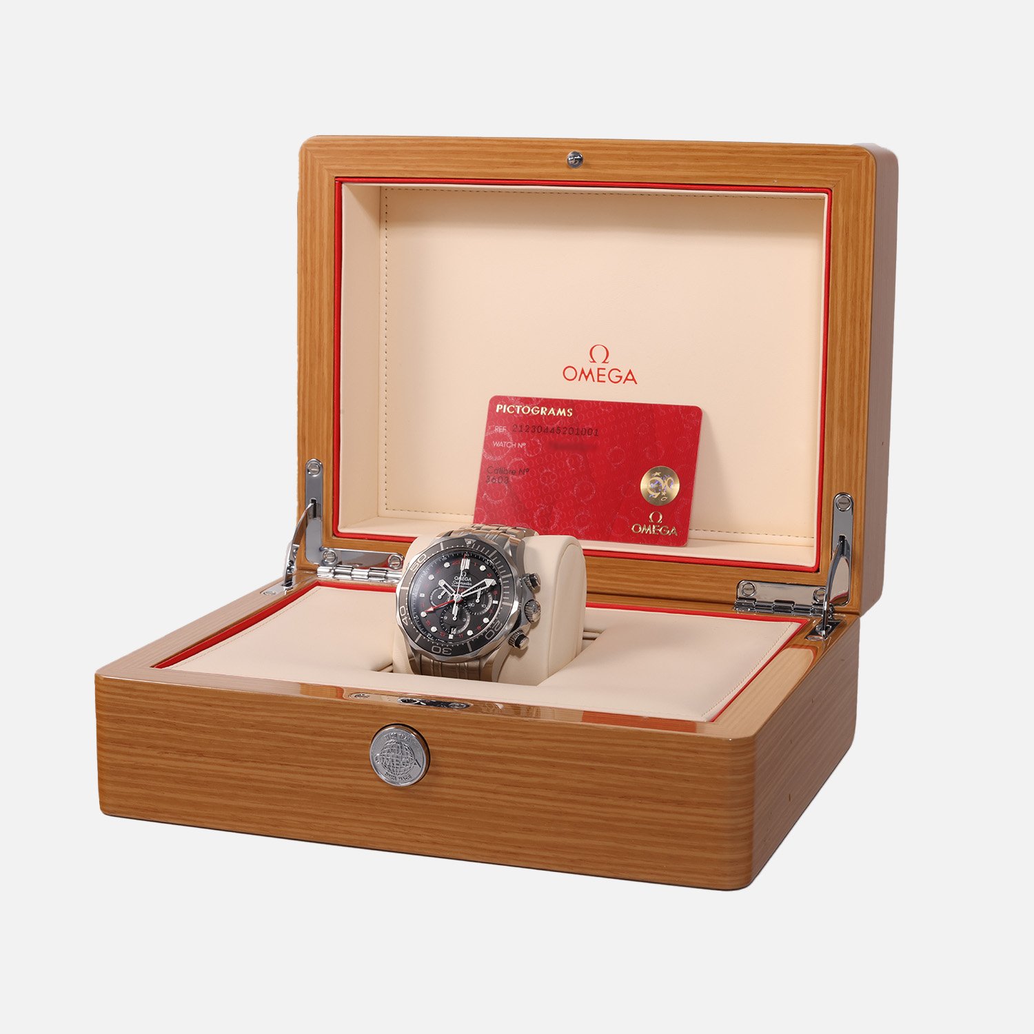 Your pre-owned Omega Seamaster Diver 300M GMT comes complete with an Omega box, Omega pictograms card, and a 2-year Precision Watches warranty, ensuring your satisfaction and peace of mind with your purchase.