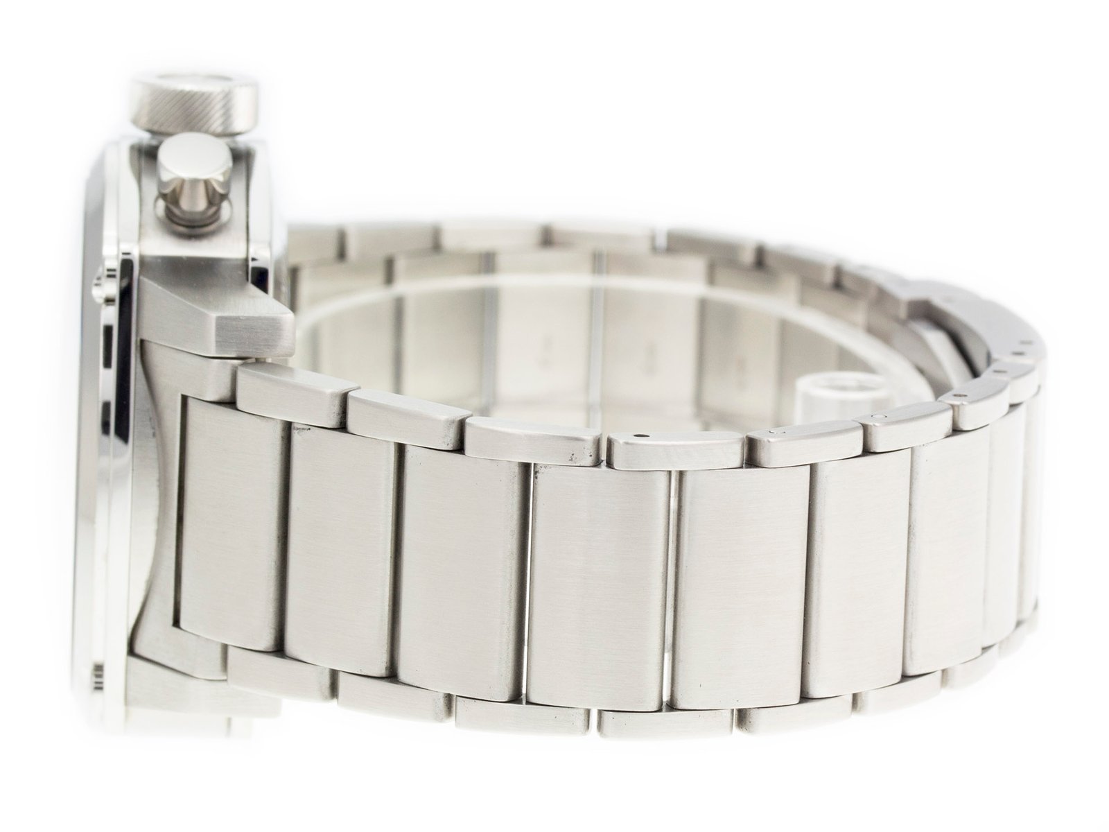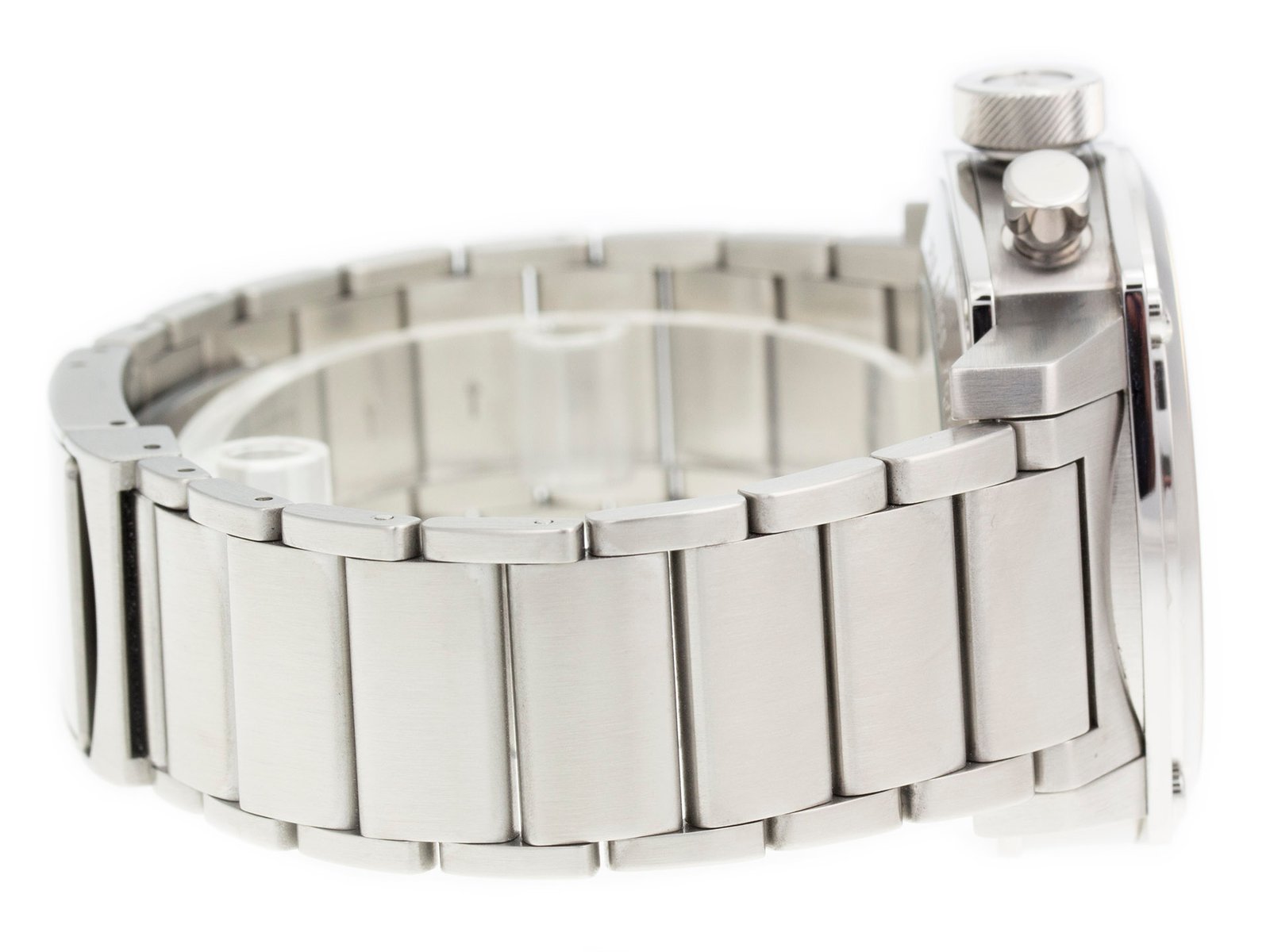Condition: Good Condition Pre-Owned Model.  Watch shows dings and light scratches on the bezel, lugs, and a light scratch on the buckle.​ Dial Markers: Black Textured Dial w/ Stick Indexes, Three Black Subdials, Date At 3