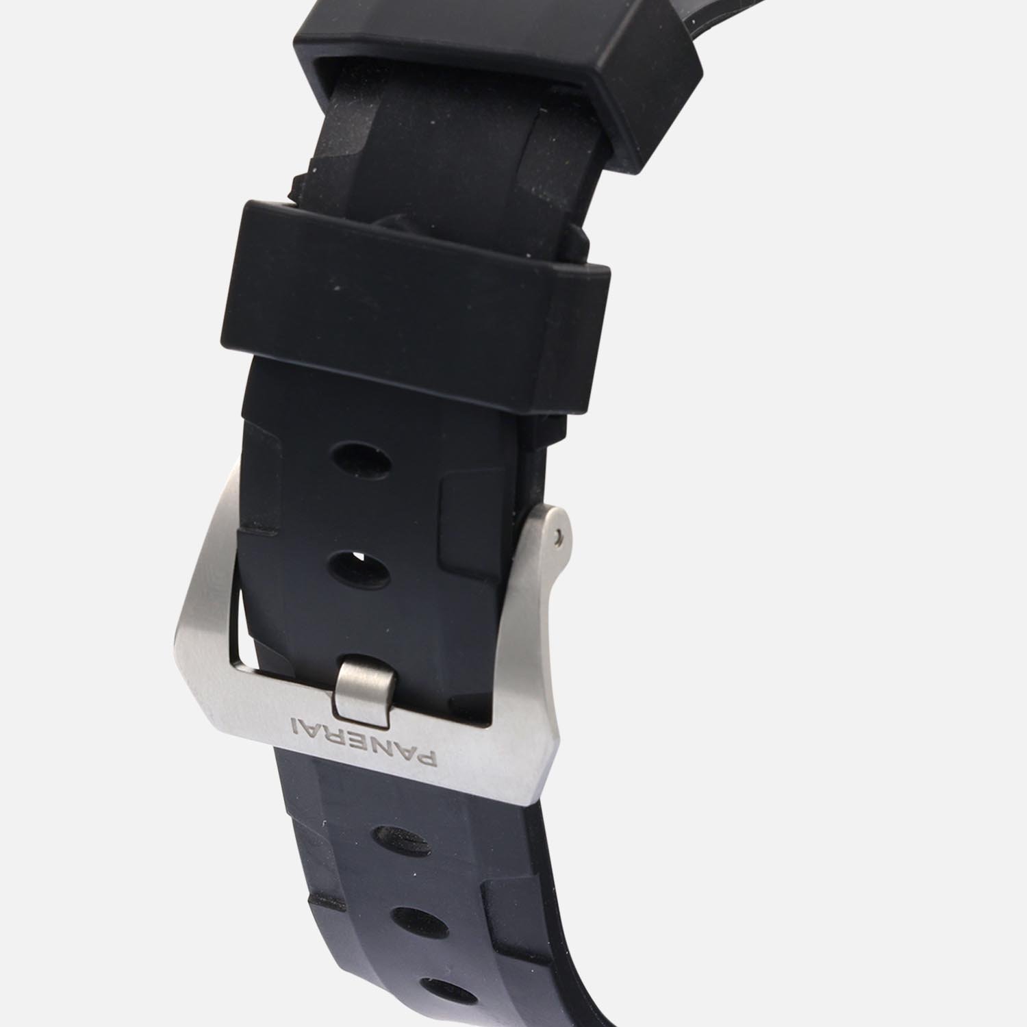 The Panerai Submersible PAM00973 is the perfect blend of style and functionality. It features a sleek black rubber strap with a tang buckle clasp, ensuring a comfortable and secure fit on the wrist. The 42mm stainless steel case is solid and durable, with a uni-directional rotating bezel for precision timekeeping. The black dial with dot markers is easy to read, with an understated elegance. The watch is powered by the Panerai P.900 Calibre automatic mechanical movement, providing accurate timekeeping for years to come.