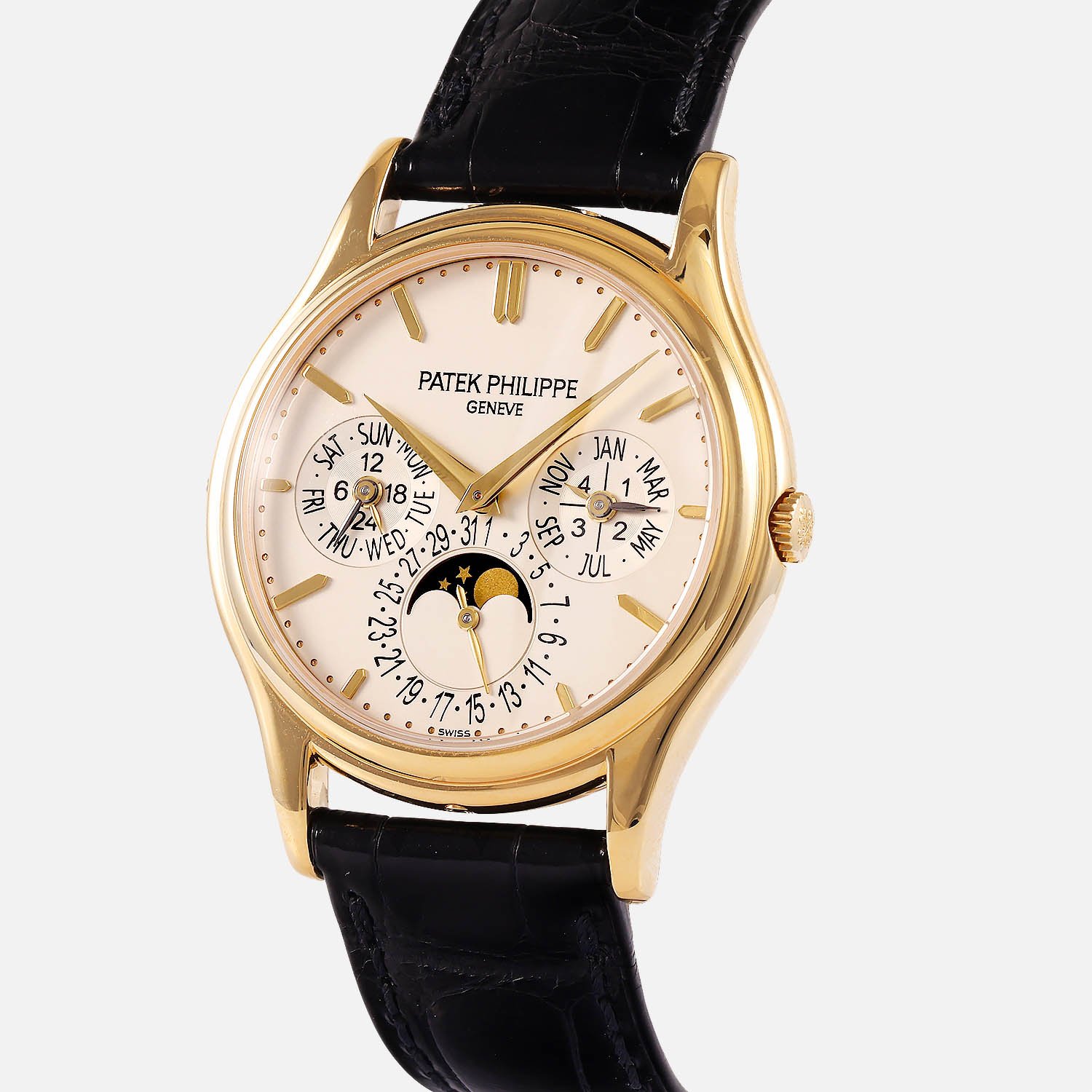 Your purchase includes the iconic Patek Philippe box, the Patek Philippe certificate, The Patek Philippe Register, a Perpetual Calendar Manual, and a distinctive Hang Tag.