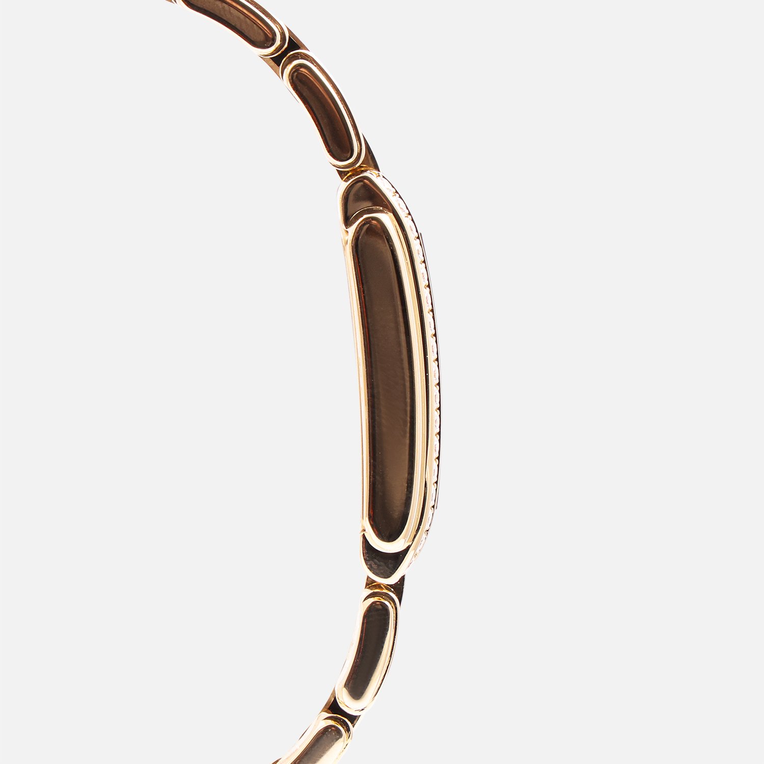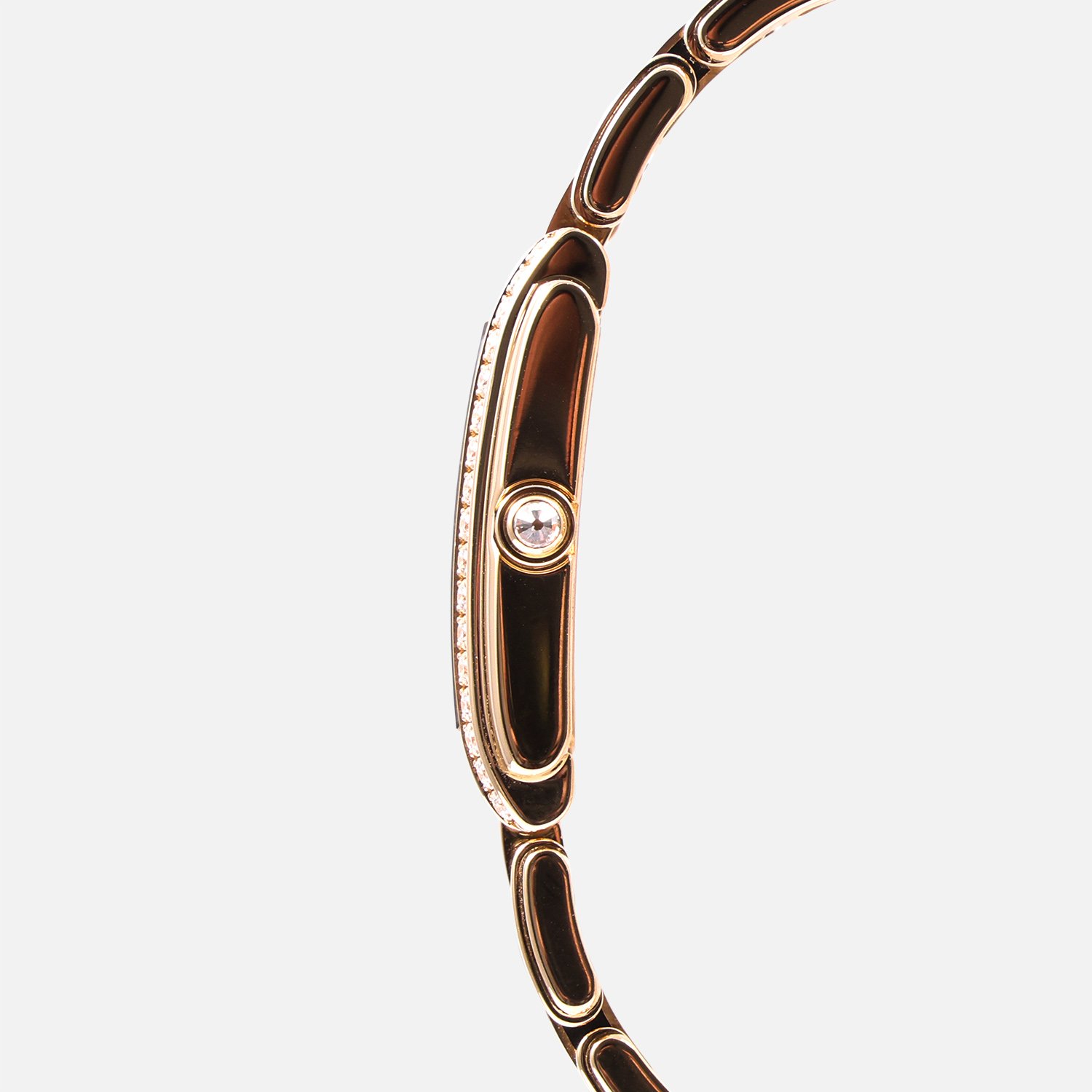 Powered by the reliable Caliber E15 quartz movement, the watch offers precise timekeeping with minimal maintenance. The 18k rose gold bracelet, seamlessly integrated with the case, is secured by a matching fold-over clasp, providing both comfort and security.