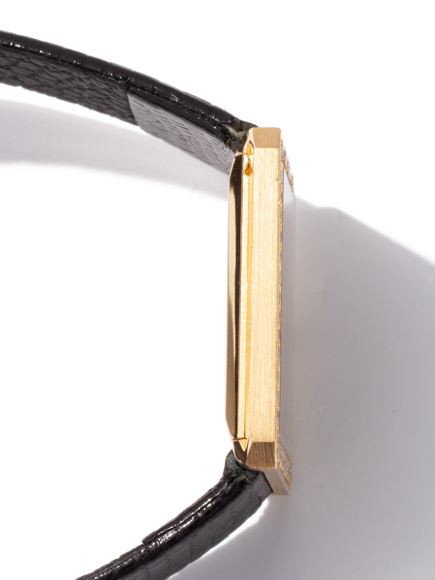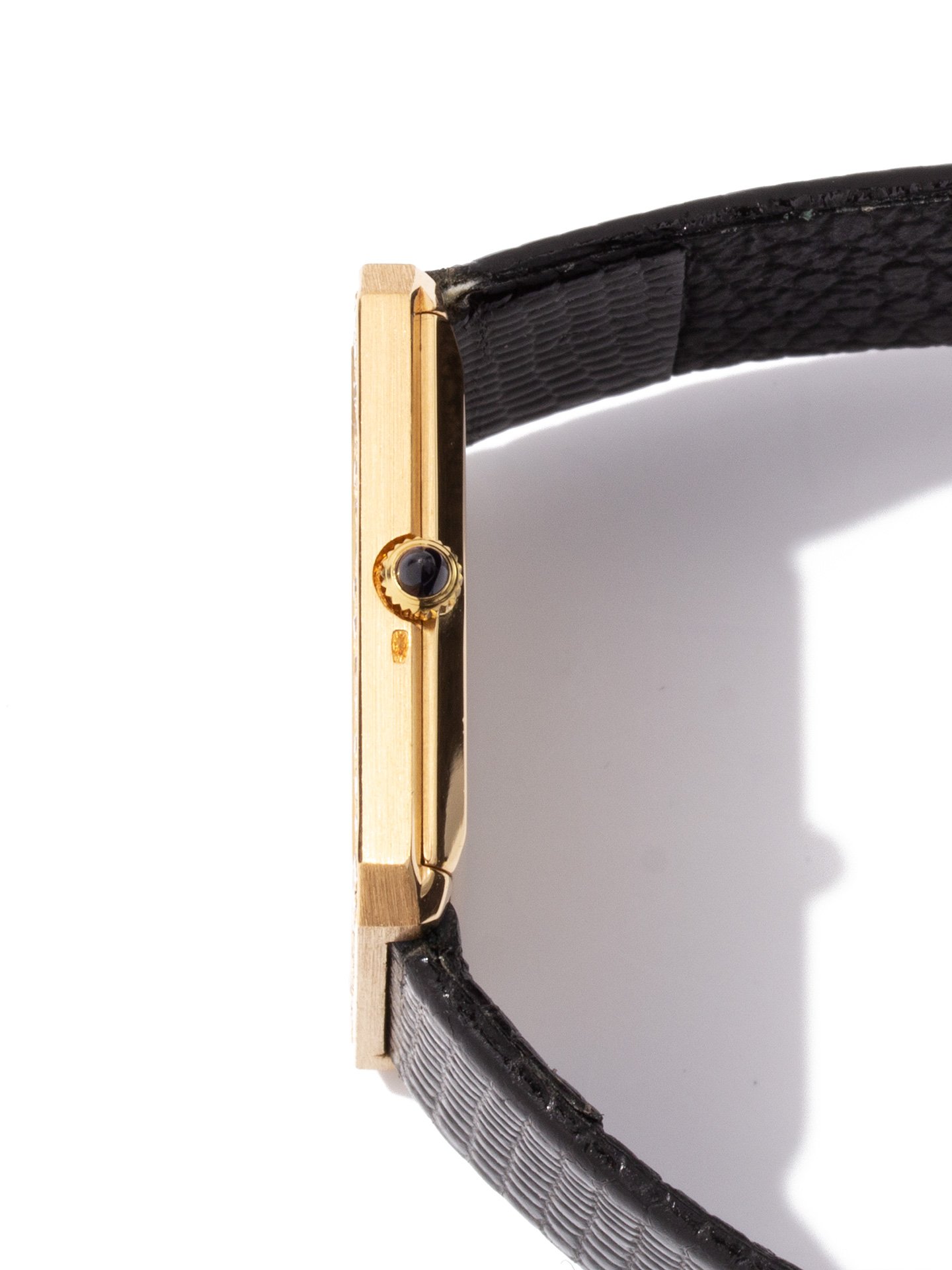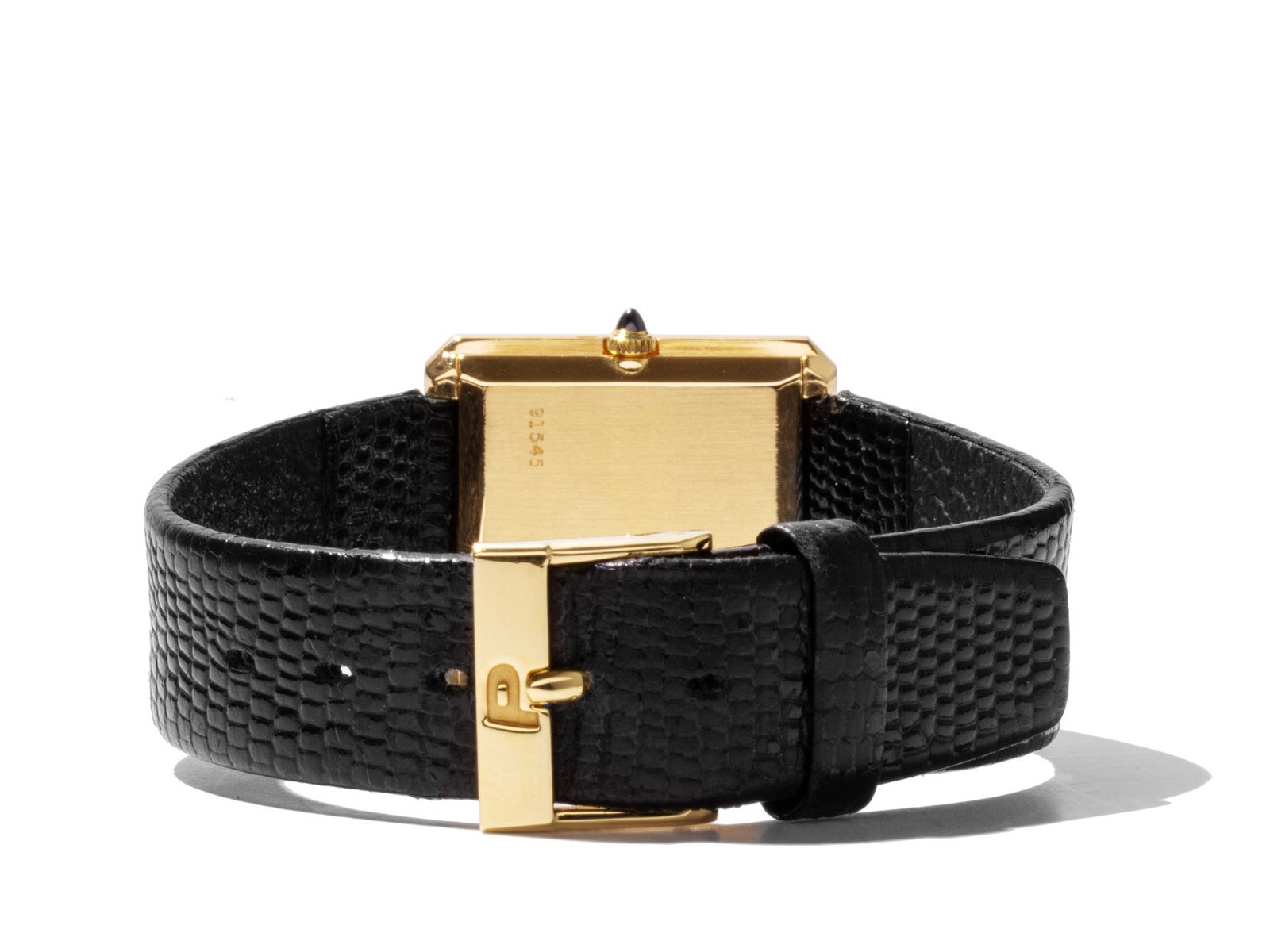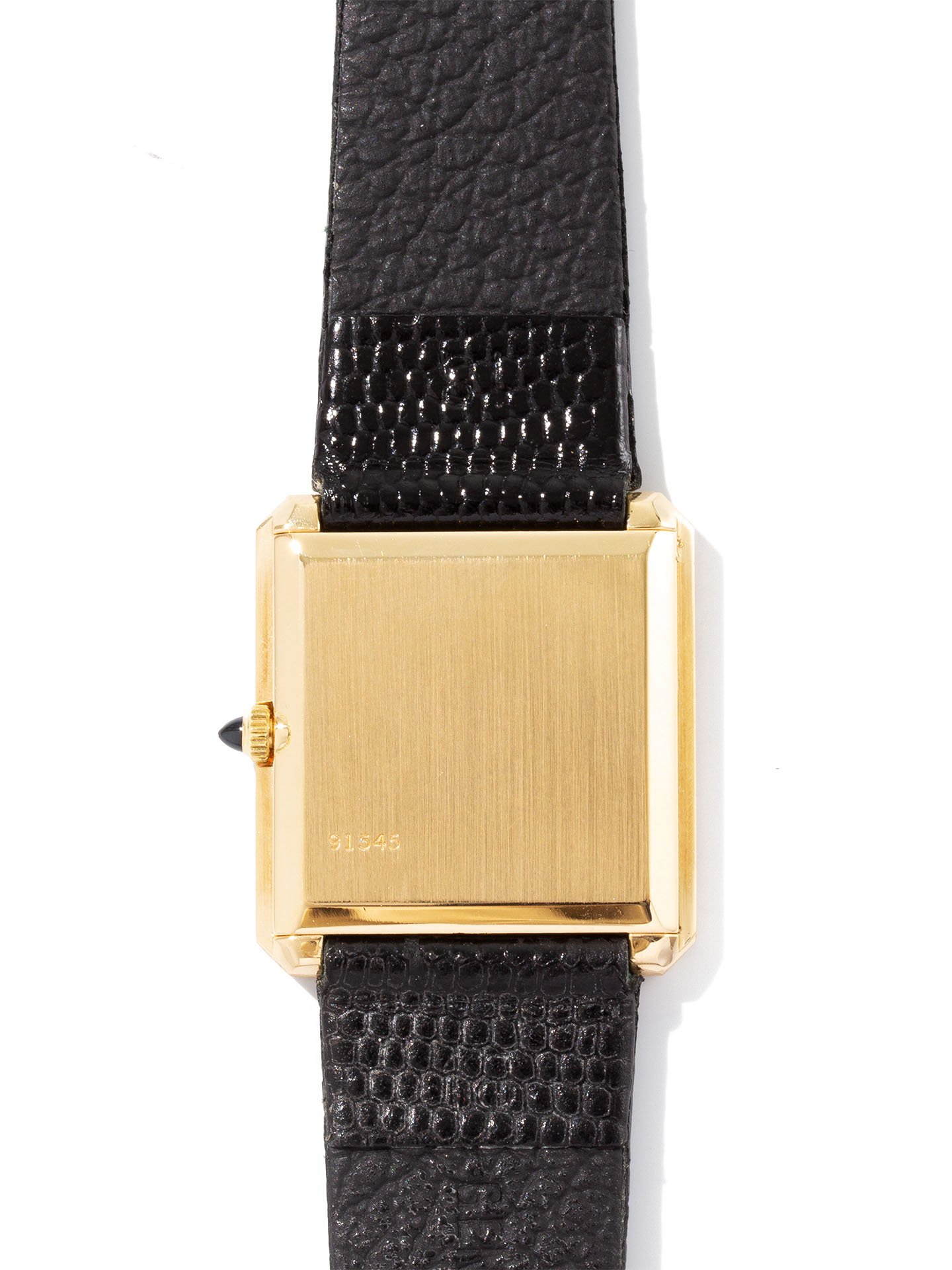 Material: 18k Yellow Gold Band: Black Leather Strap