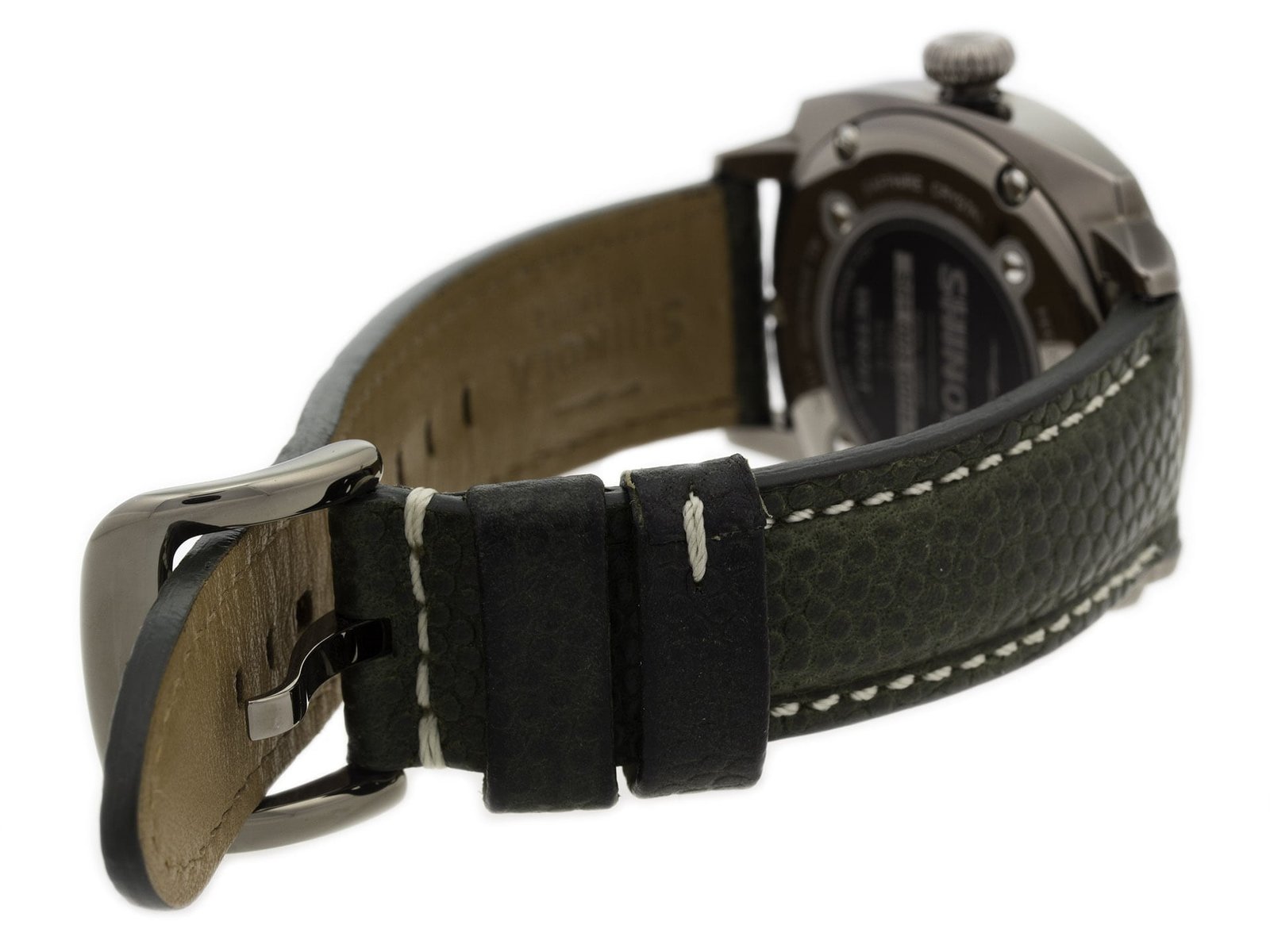 | Material: | Topaz PVD Stainless Steel | Band: | Green Leather Strap | |