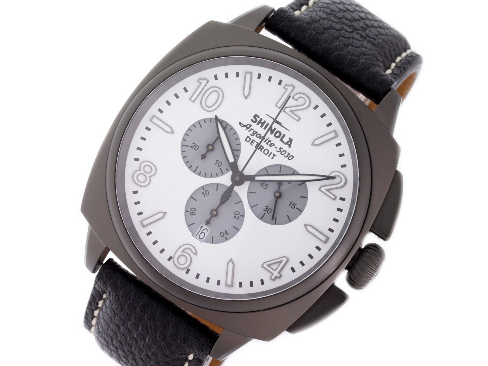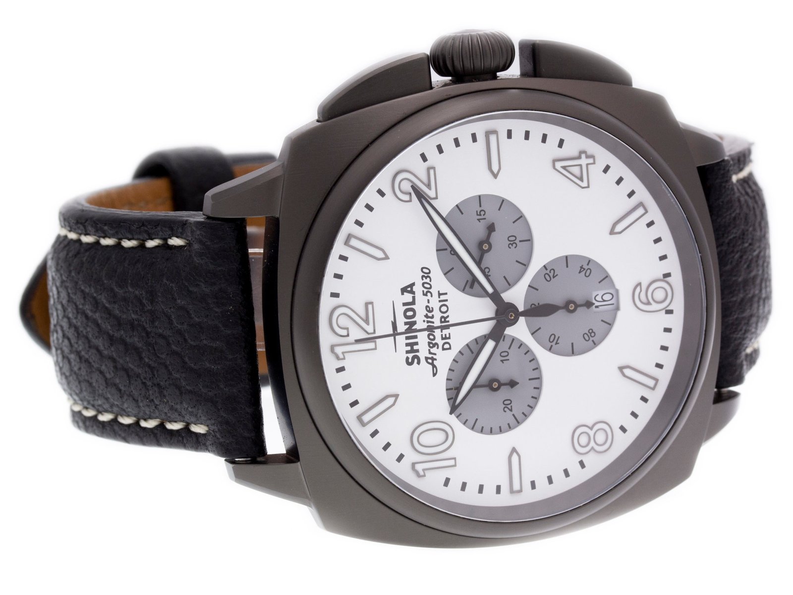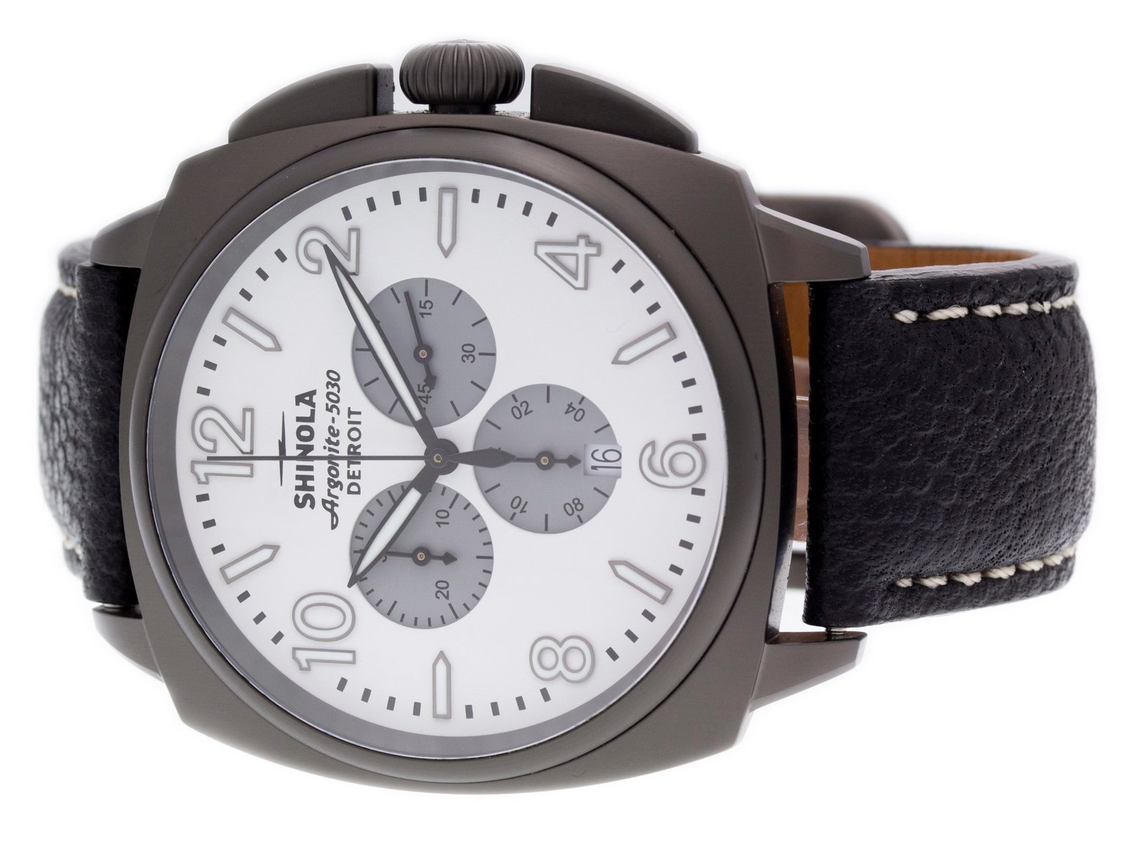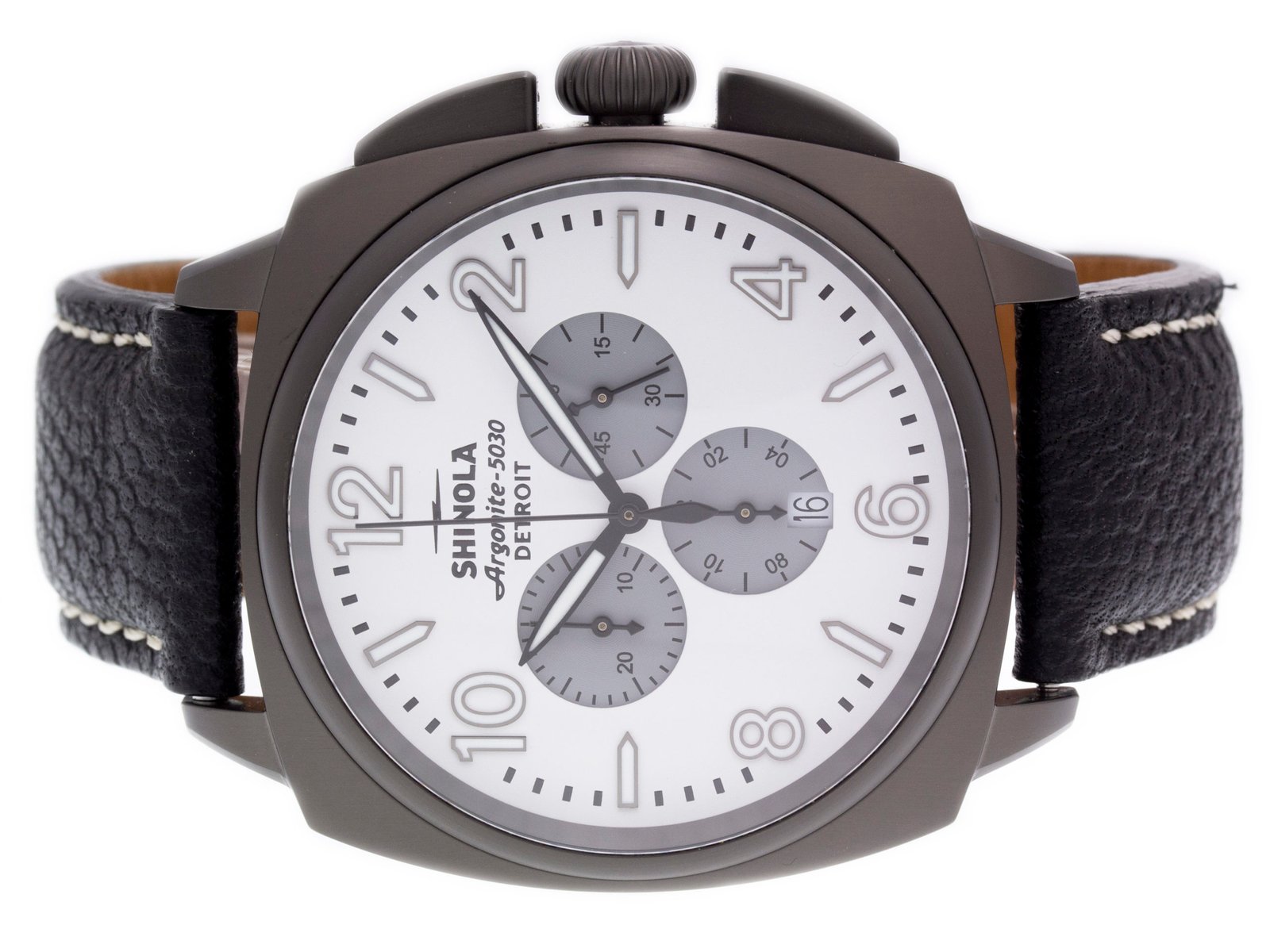 DialWhite Dial w/ 3 Gray Subdials, Arabic Numerals, Date at 6
