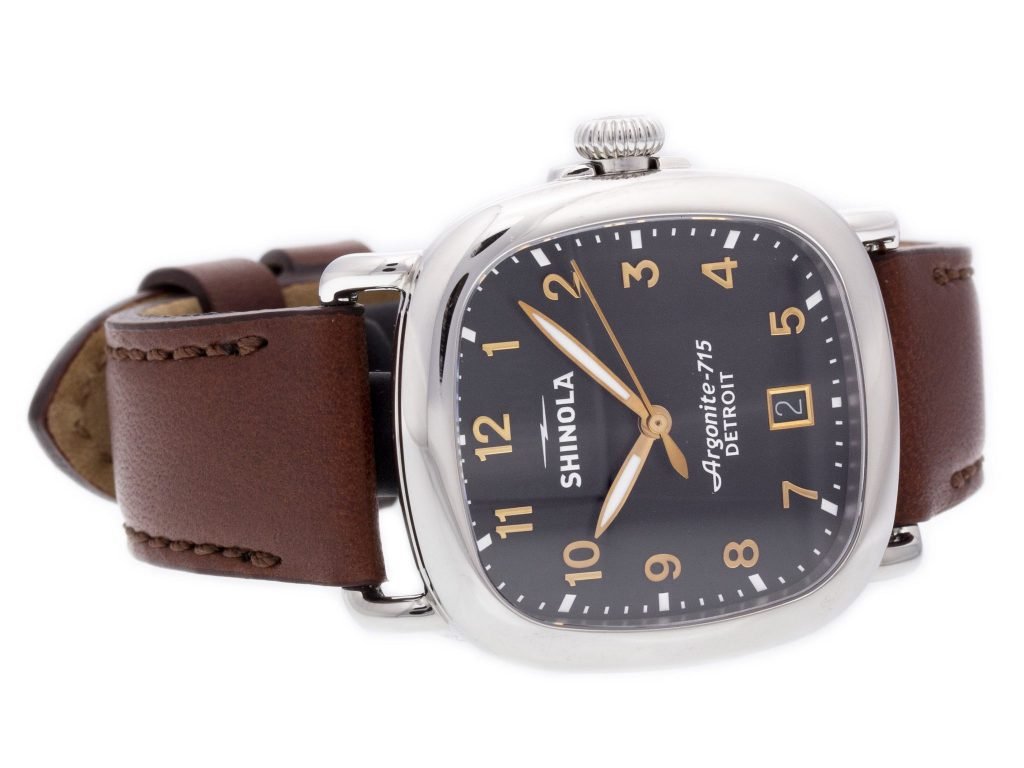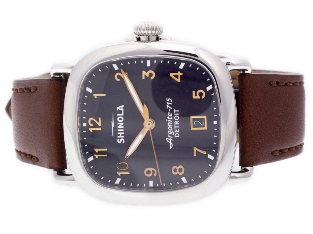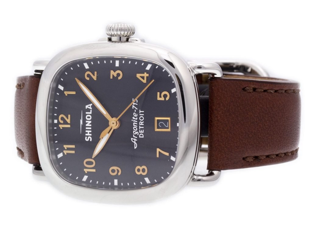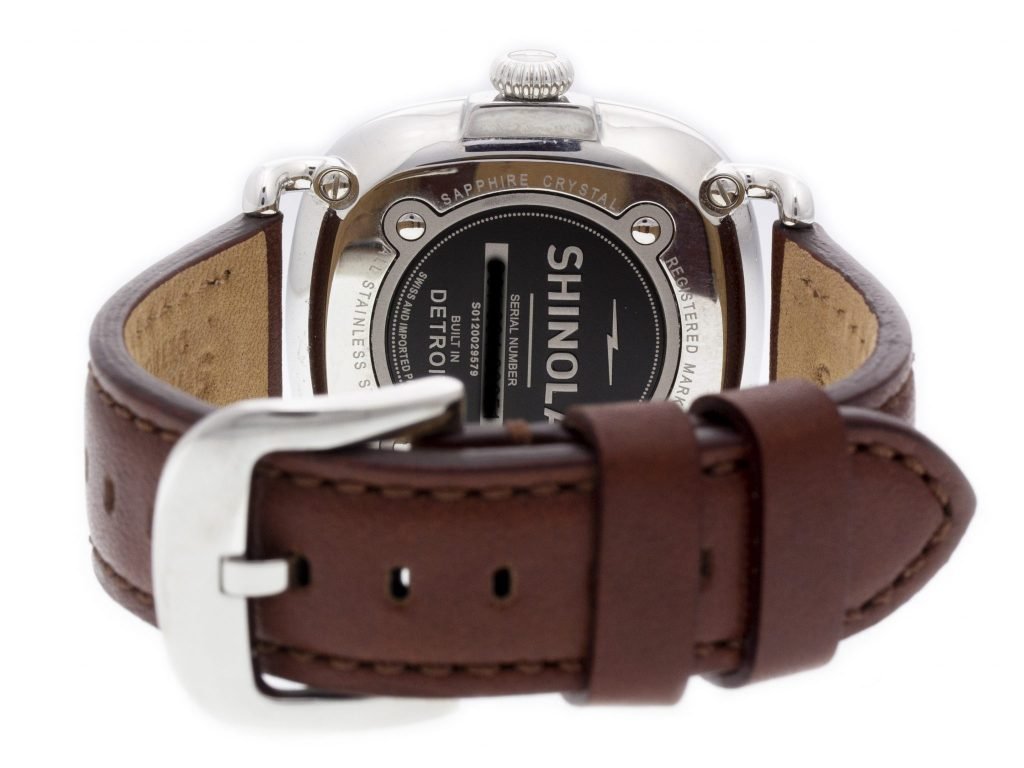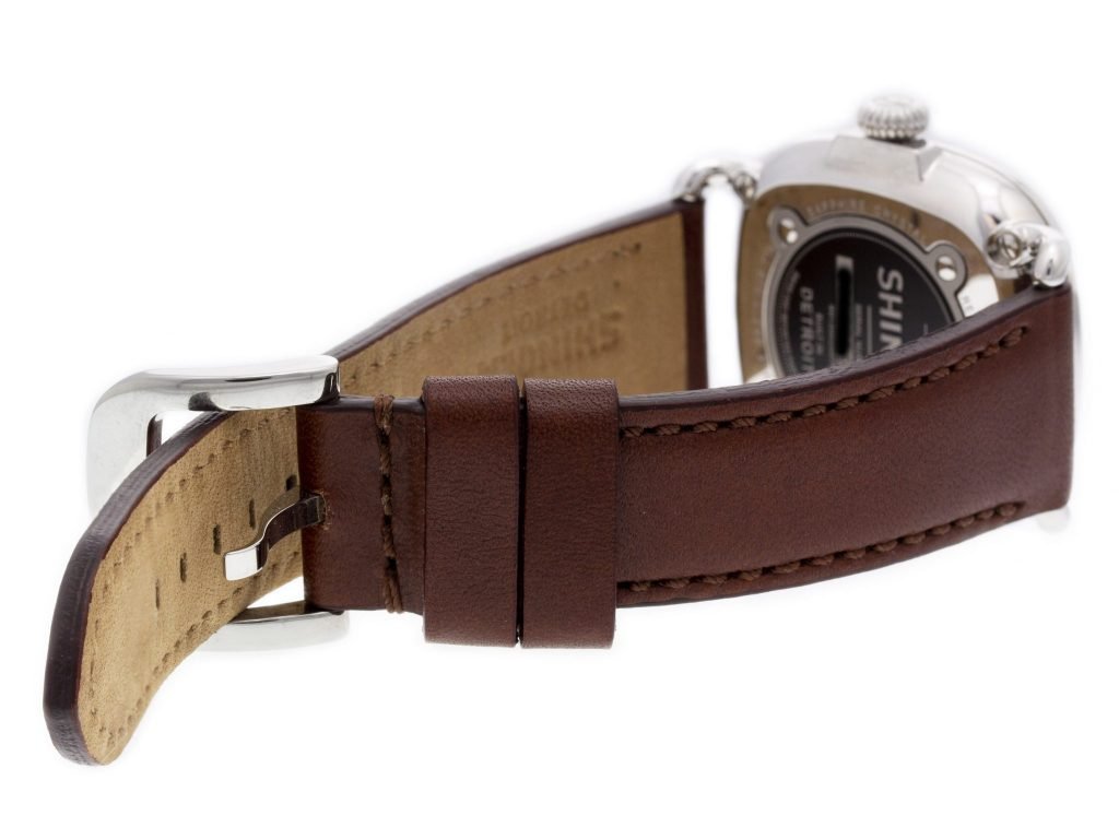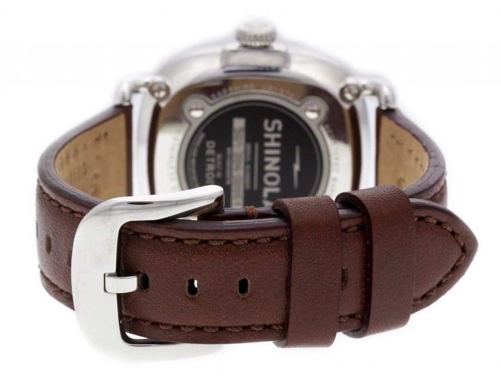 Stainless Steel Shinola The Guardian 35mm x 37mm S0120029579 watch, water resistant to 50m, and leather strap.