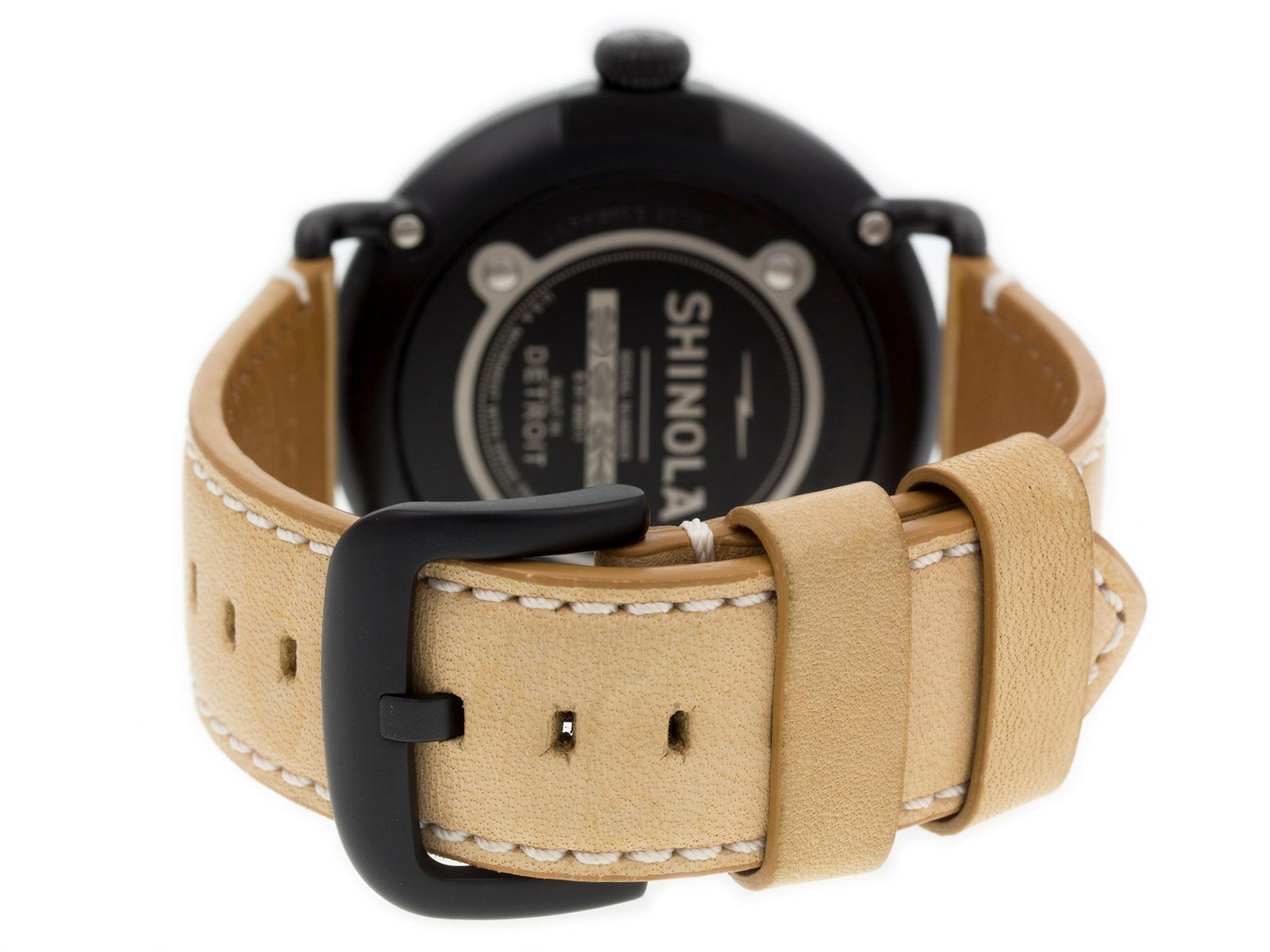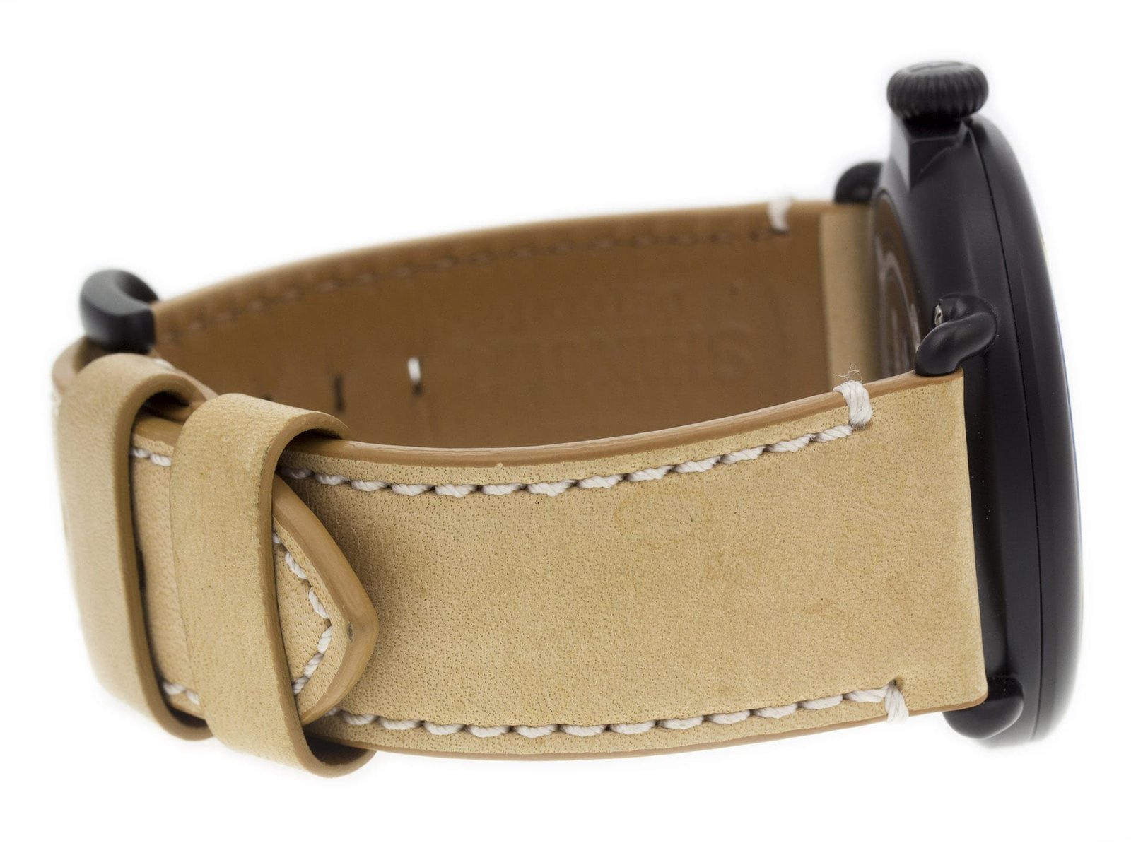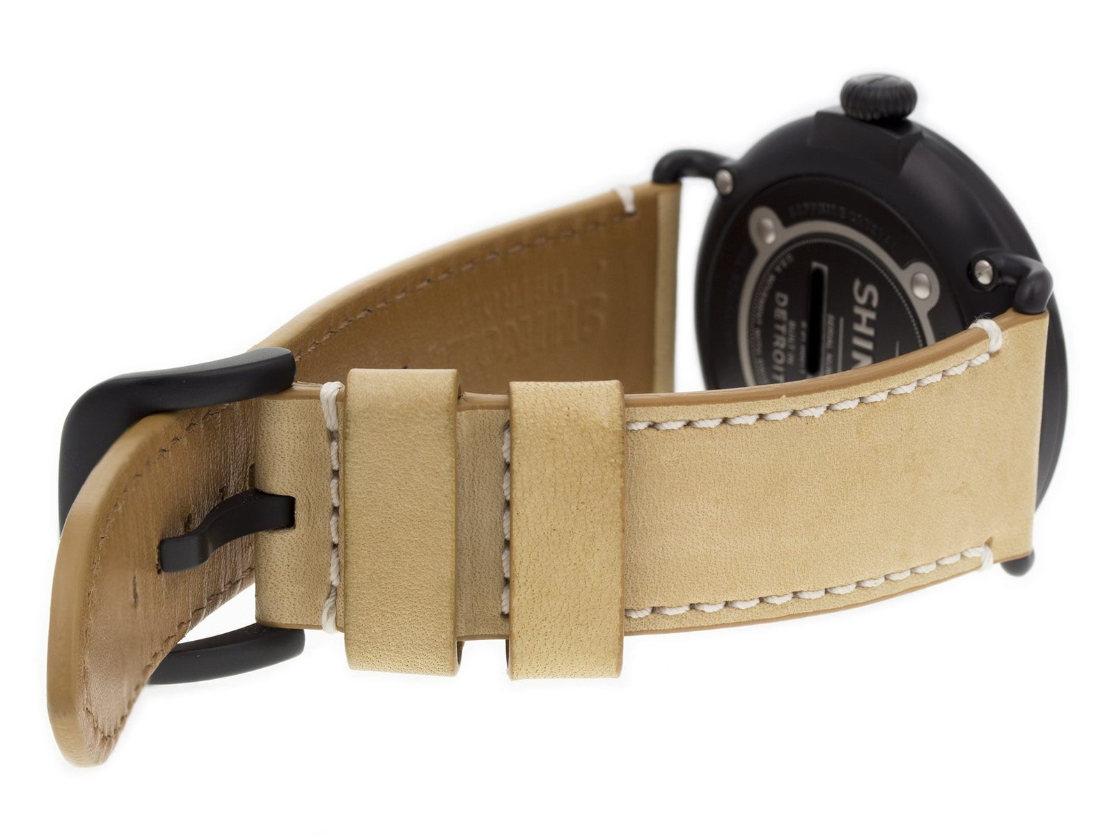 Black PVD Steel Shinola The Runwell Chrono 10000011 watch, water resistant to 50m, with leather strap.