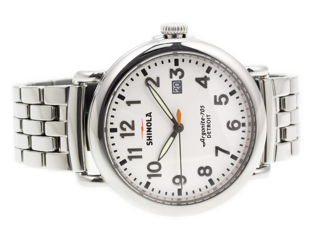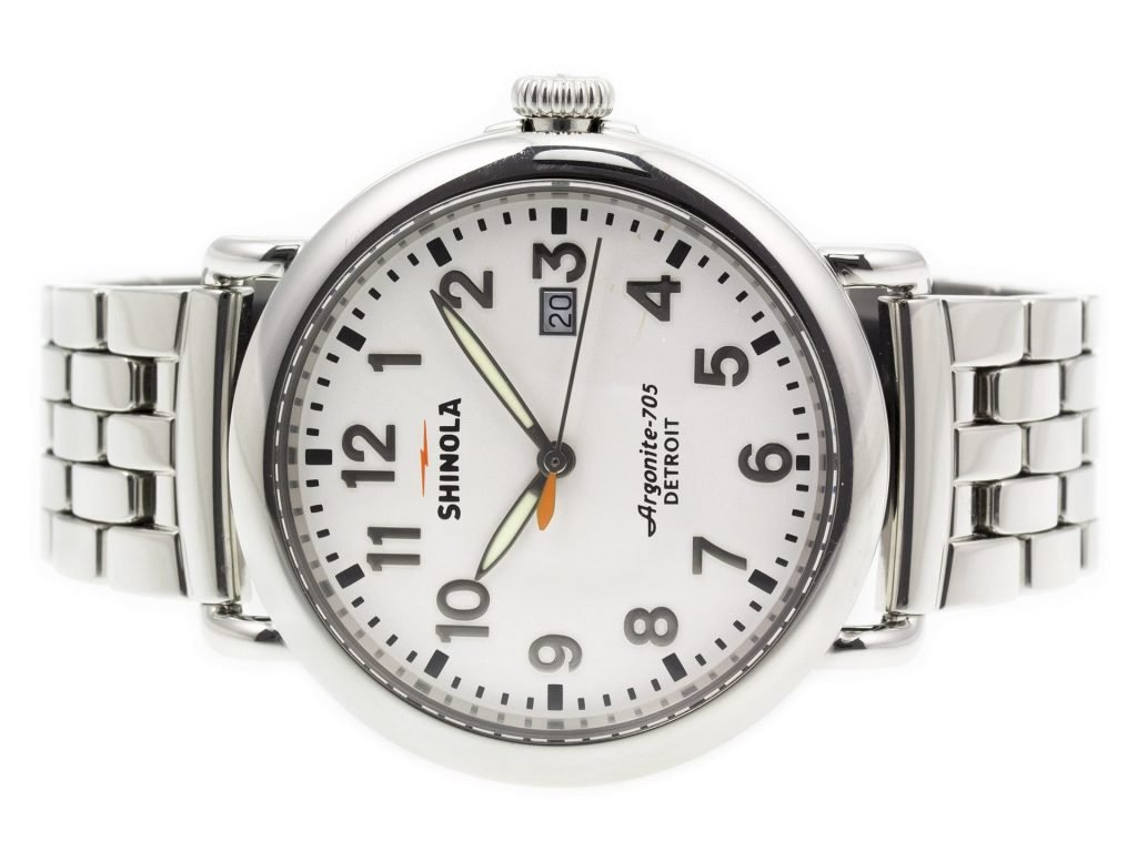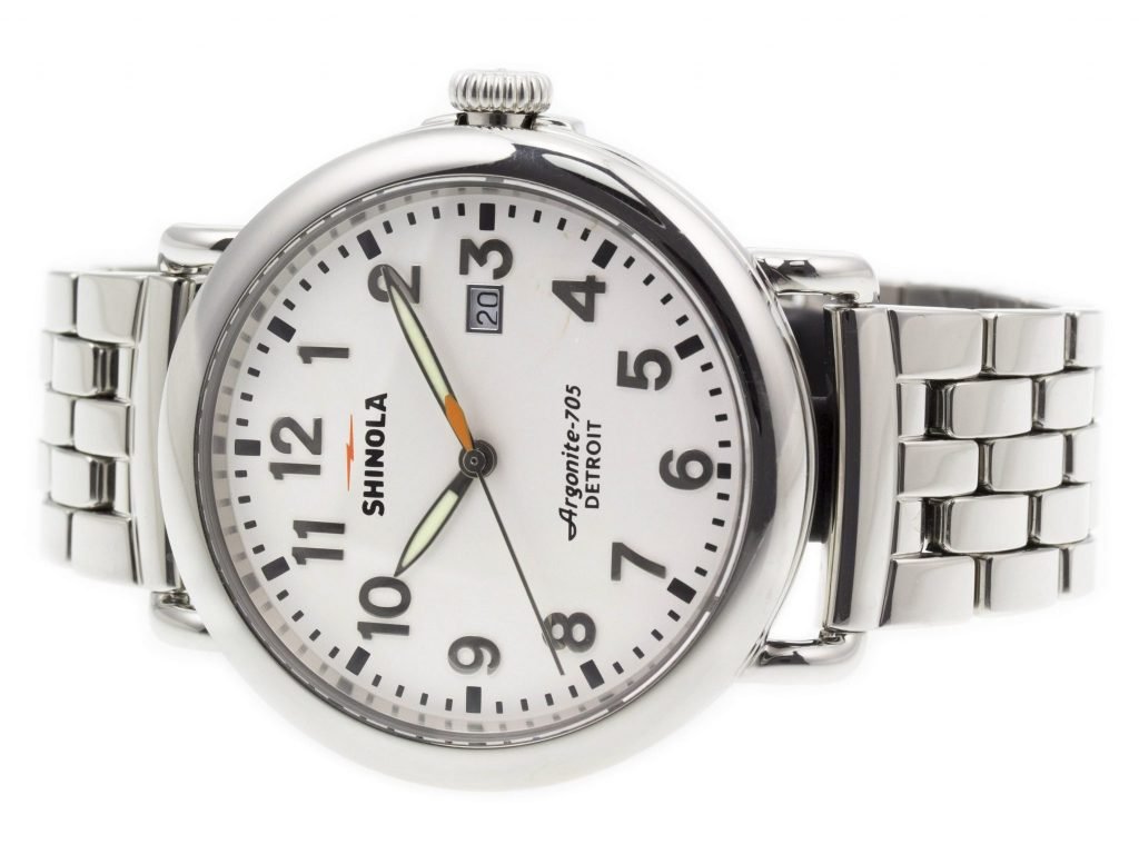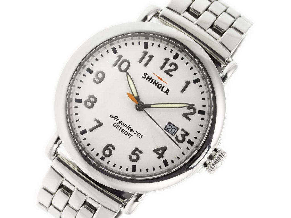 Stainless steel Shinola The Runwell Detroit 10000054 watch, water resistant to 50m, with date and bracelet.