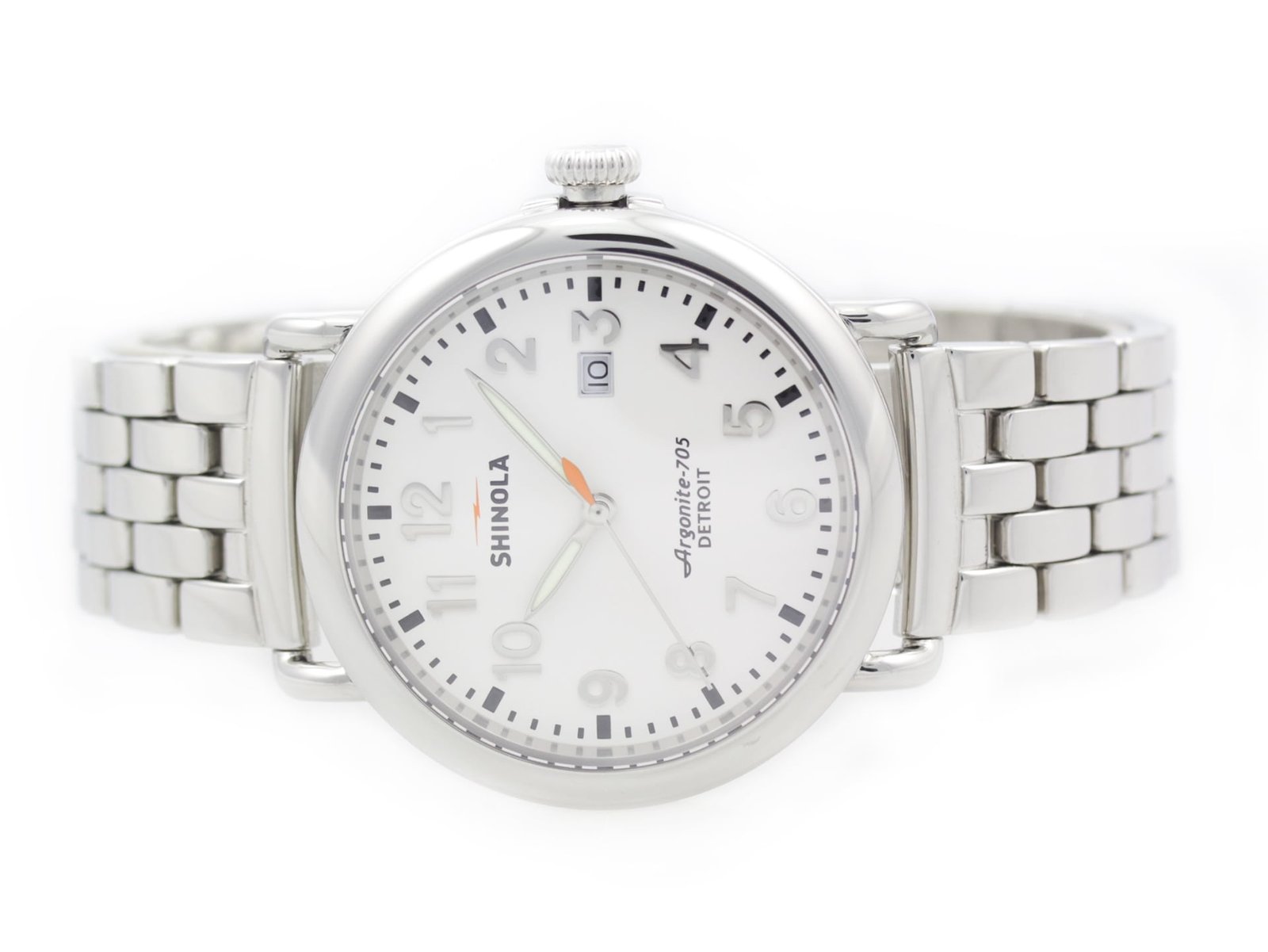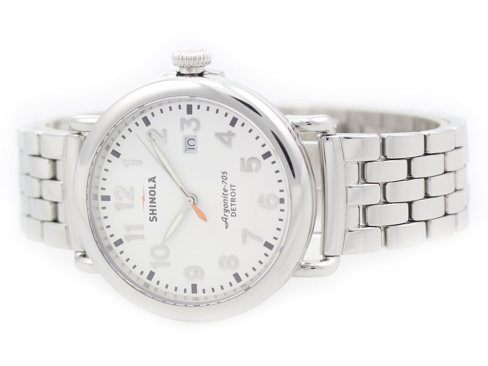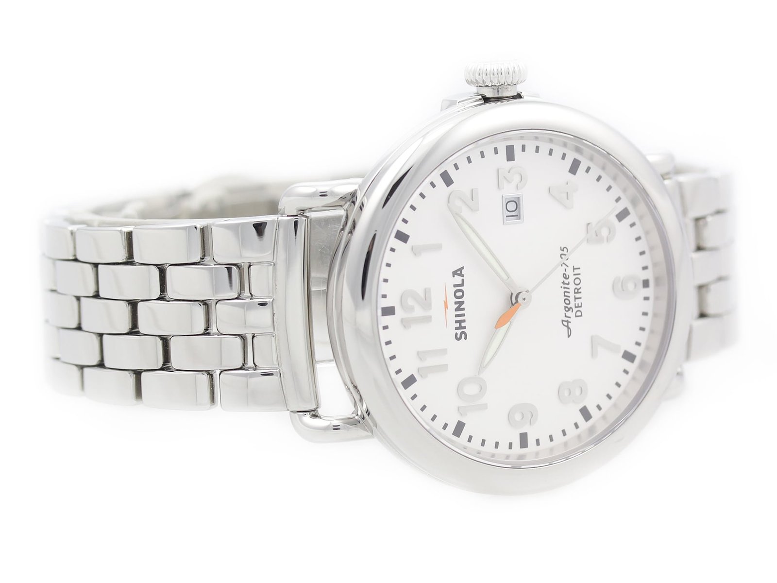 Stainless steel Shinola The Runwell Detroit 10000054 watch, water resistant to 50m, with date and bracelet.