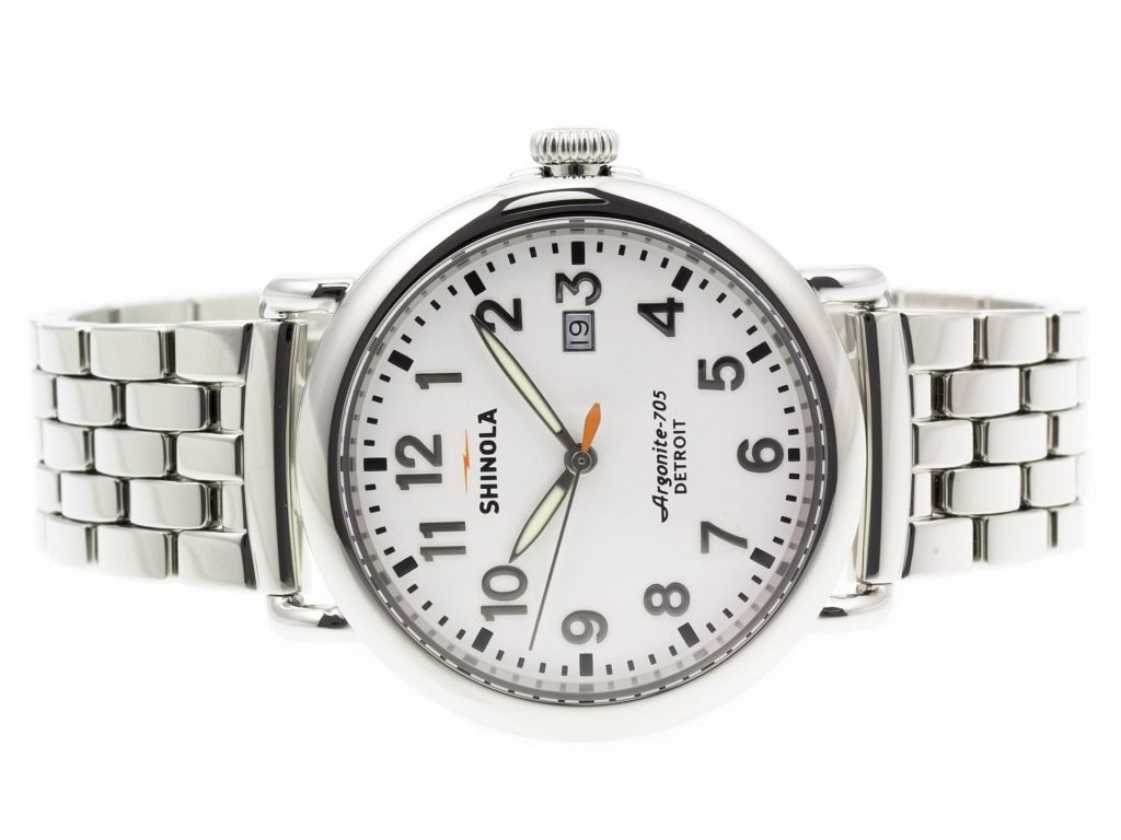 Stainless steel Shinola The Runwell Detroit 10000054 watch, water resistant to 50m, with date and bracelet.