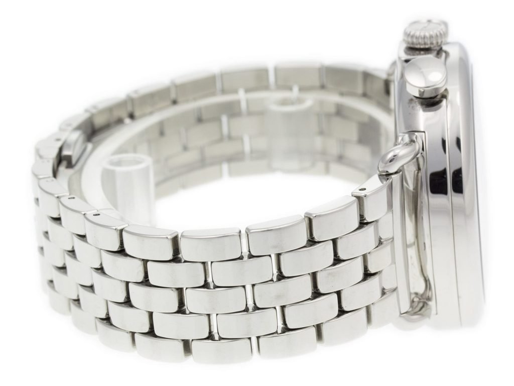 Condition: Great Pre-Owned Model, Light Scratches on Bracelet, Tiny Scuffs on Case Dial Markers: Black Dial w/ Arabic Numerals, Two Black Subdials, Date At 6
