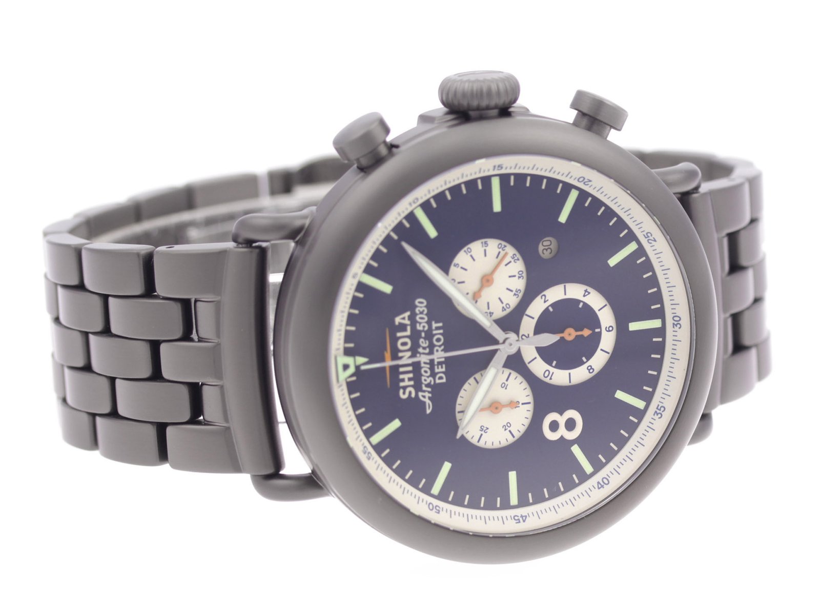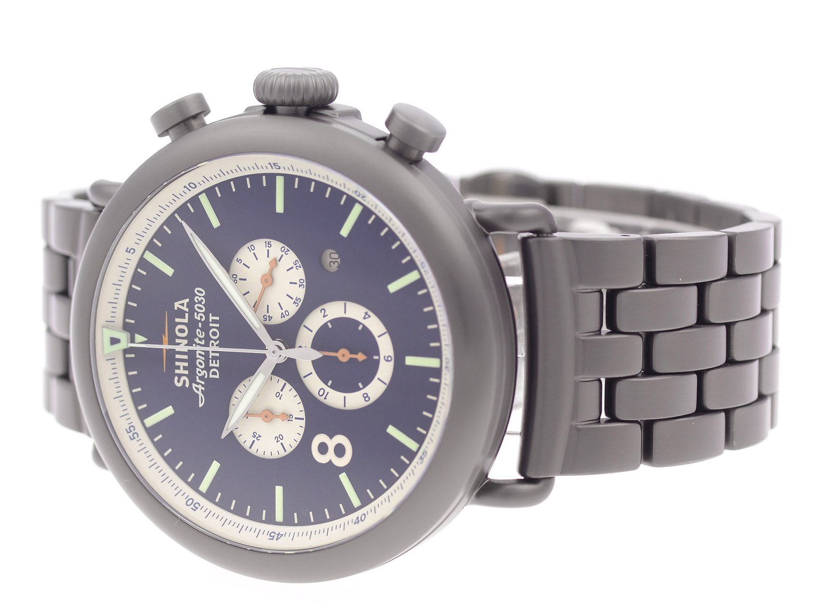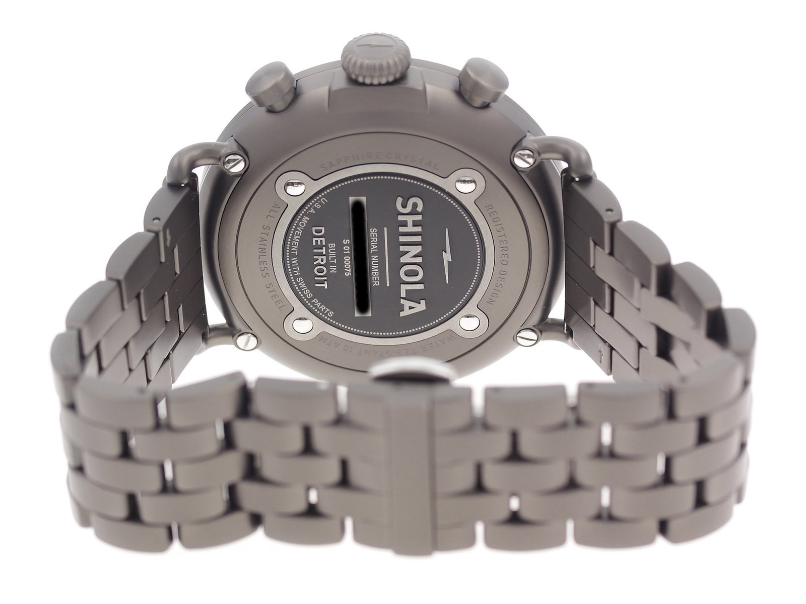 PVD Steel Shinola The Runwell Contrast Chrono watch, water resistant to 100m, with date and bracelet.