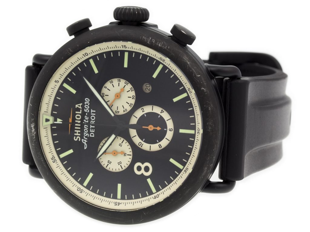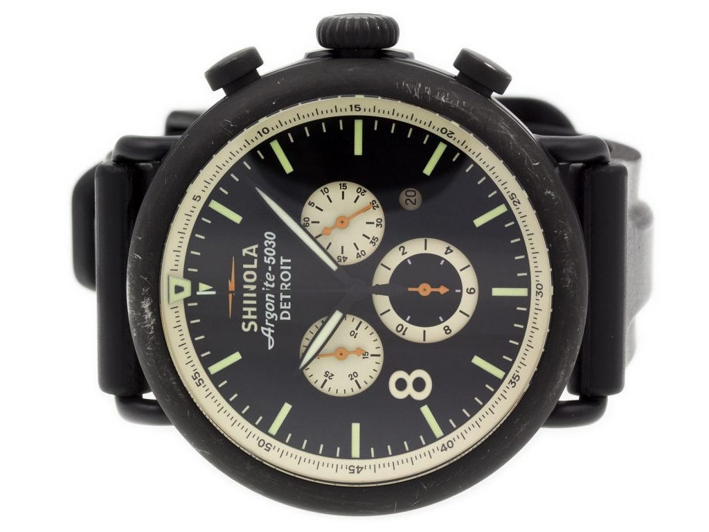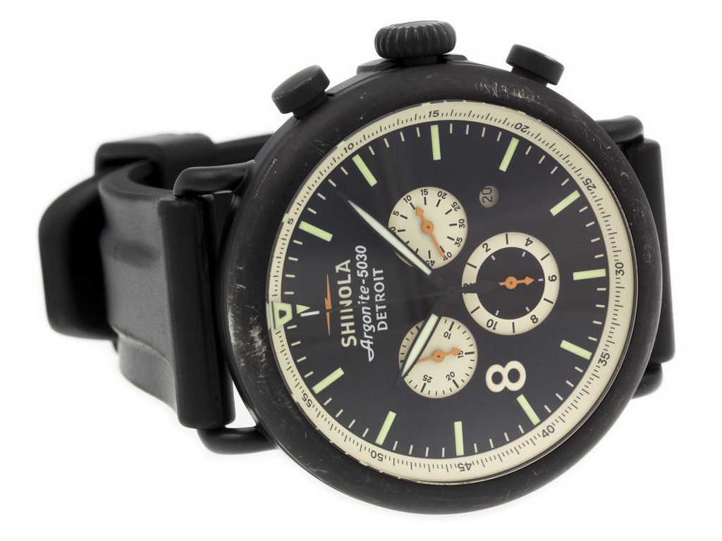 PVD Steel Shinola The Runwell Contrast Chrono 10000076 watch, water resistant to 100m, with date and bracelet.