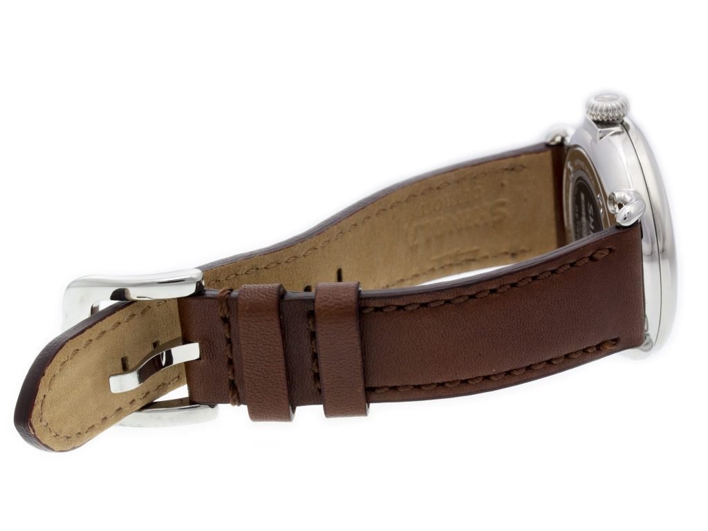 Material: Stainless Steel Band: Brown Leather Strap