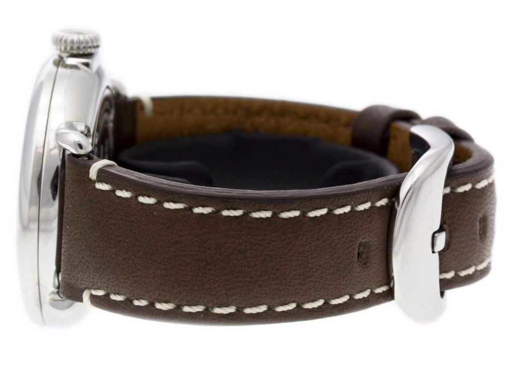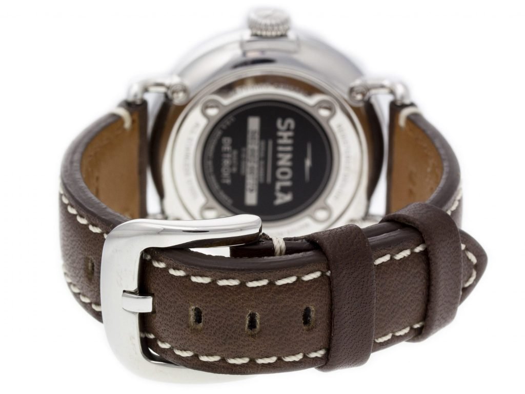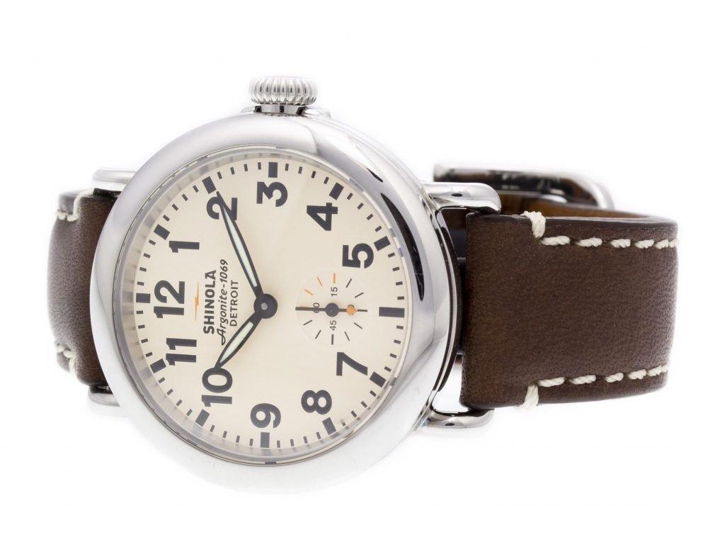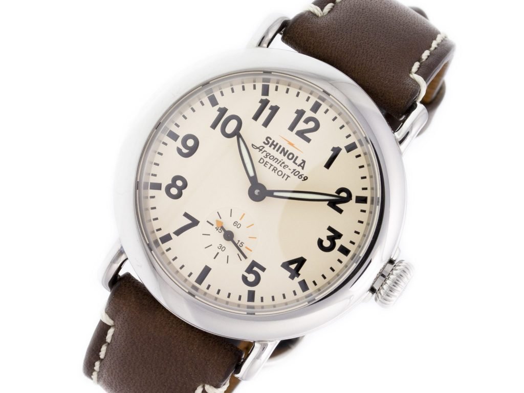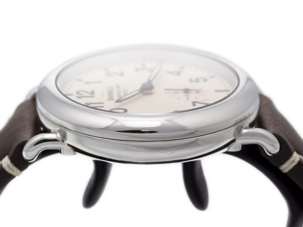 Stainless Steel Shinola The Runwell S0200053 watch, water resistant to 50m, and leather strap.
