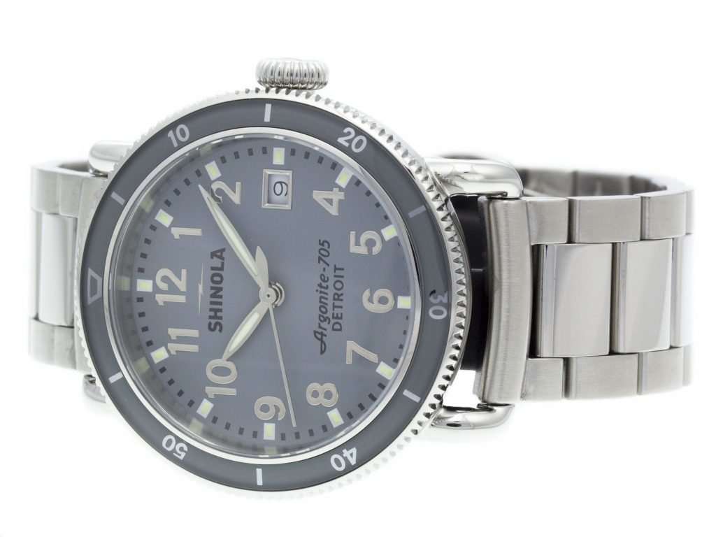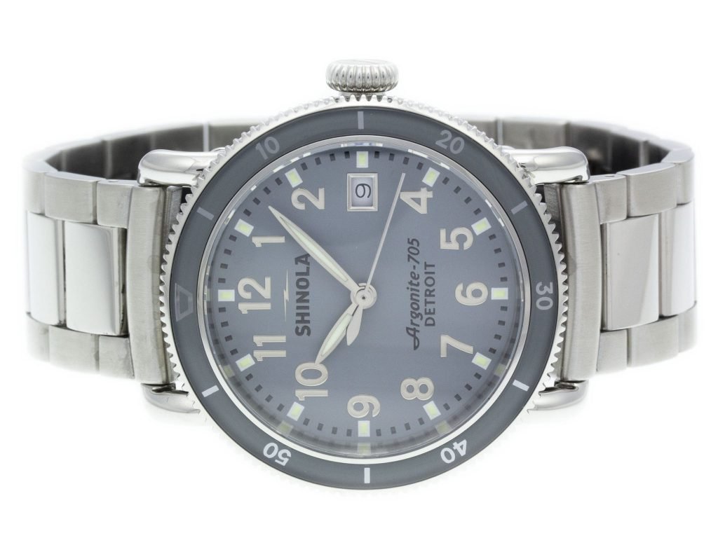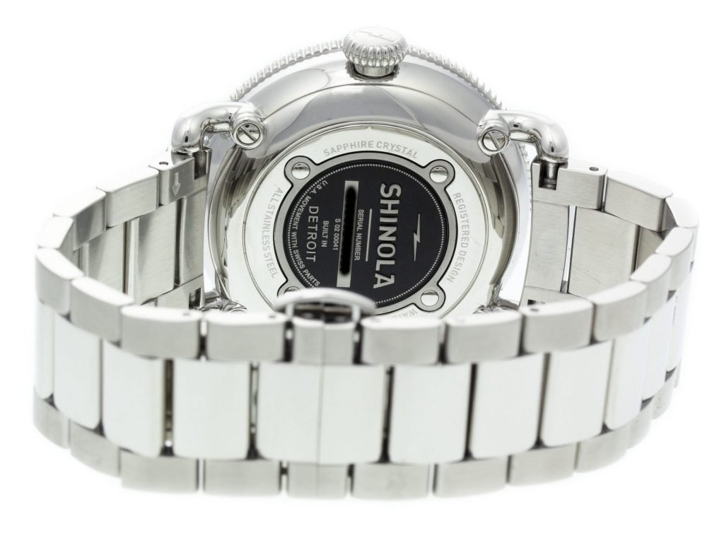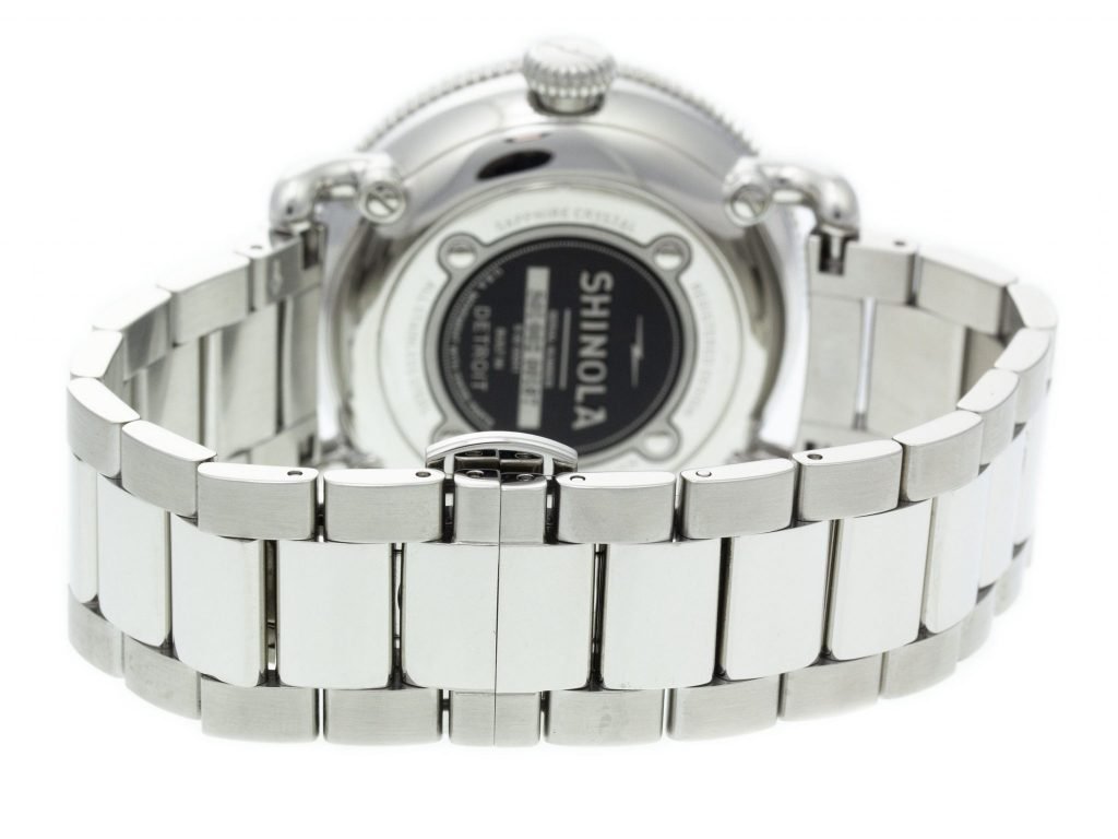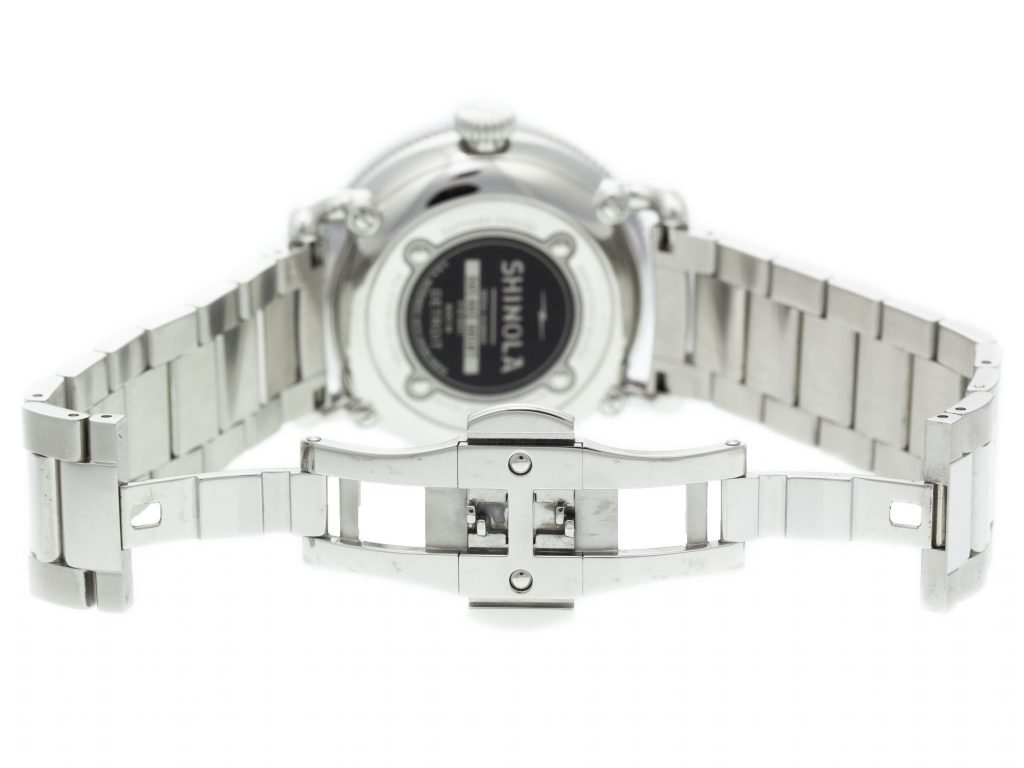 Stainless Steel Shinola The Runwell Sport Quartz Watch with a 36mm Case, Blue Dial, and Steel Bracelet with Folding Clasp. Features include Hours, Minutes, Seconds, and Date. Comes with a Deluxe Gift Box and 2 Year Precision Watches Store Warranty.