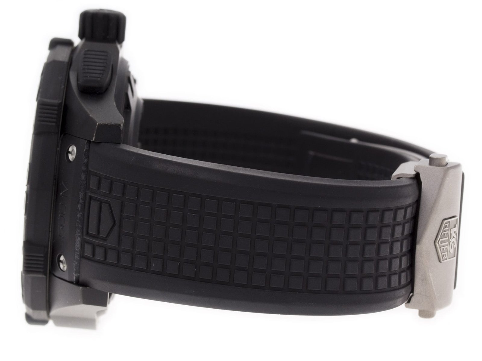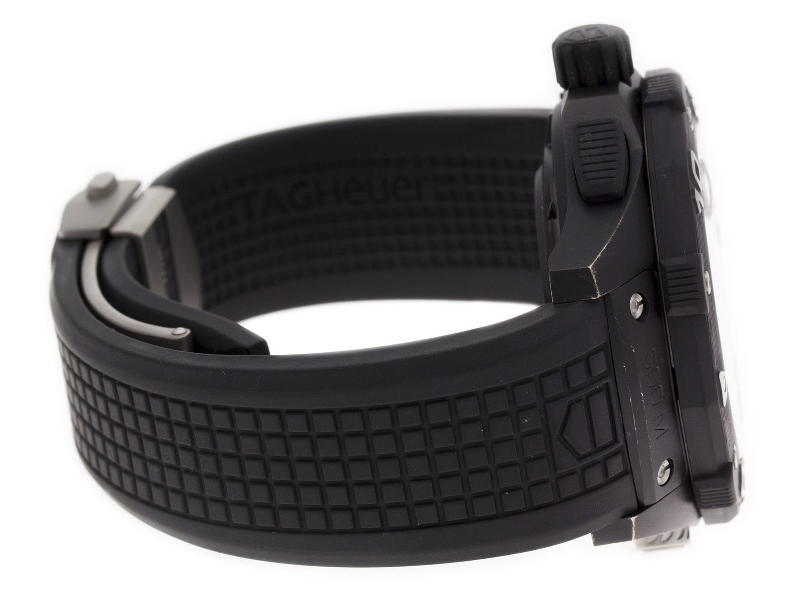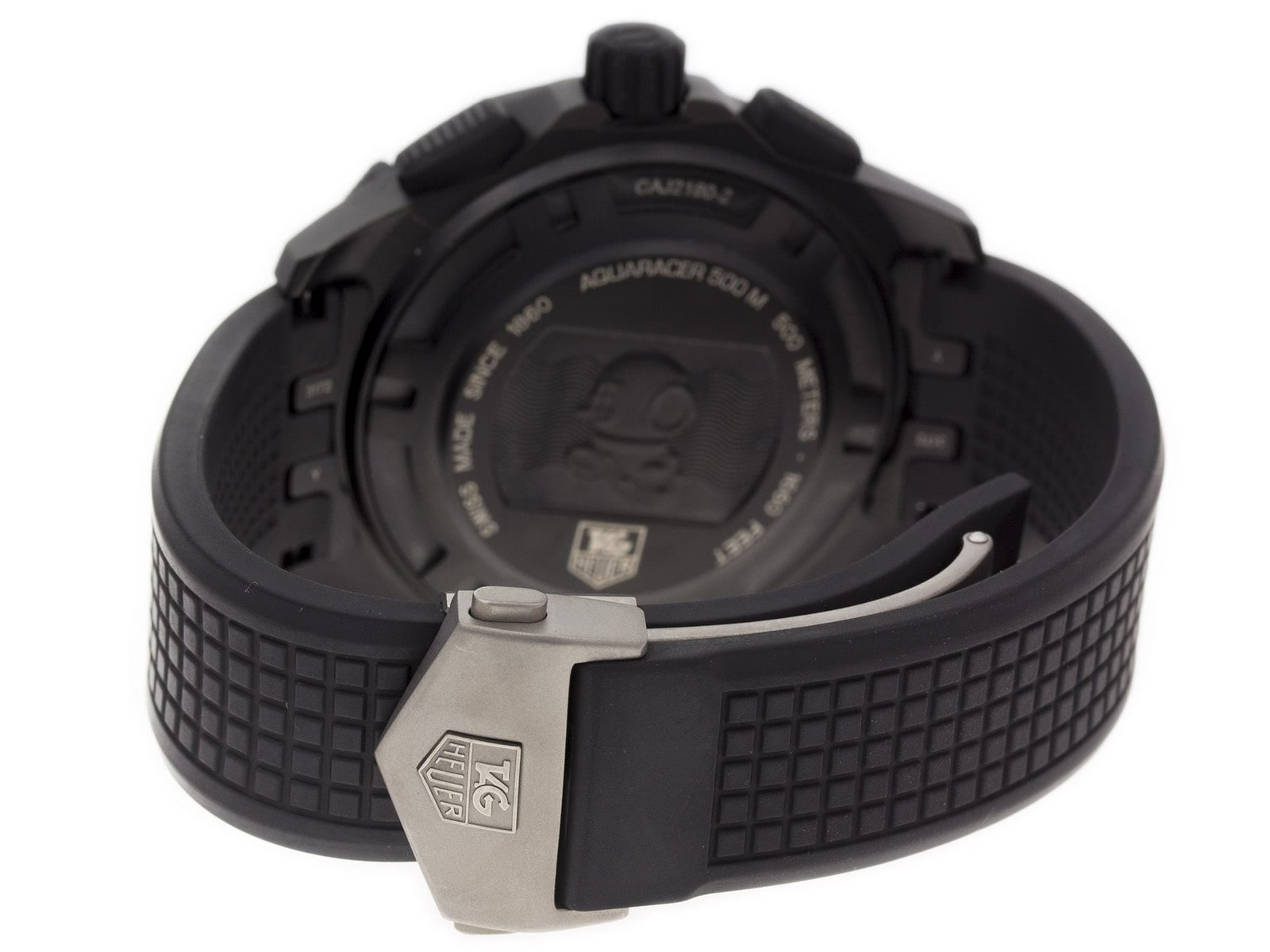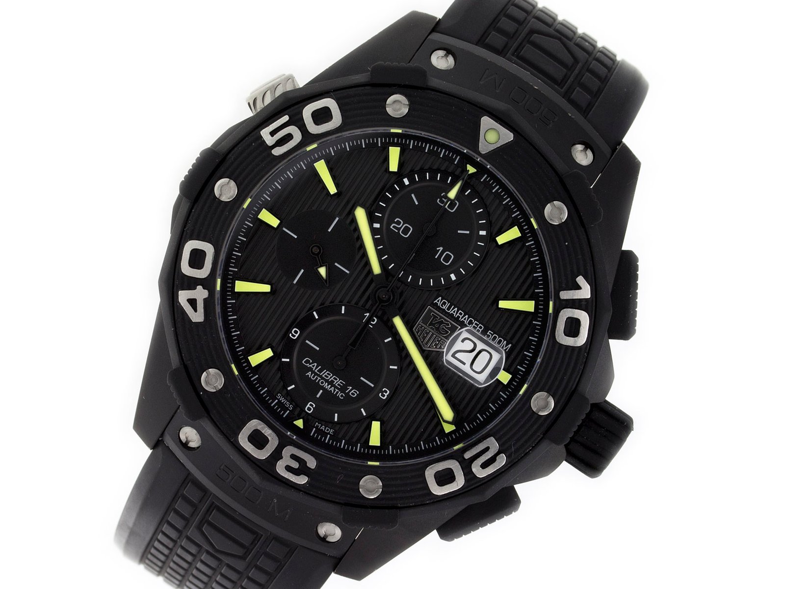 Black PVD Tag Heuer Aquaracer CAJ2180.FT6023 watch, water resistant to 500m, with chronograph, date, and rubber strap.