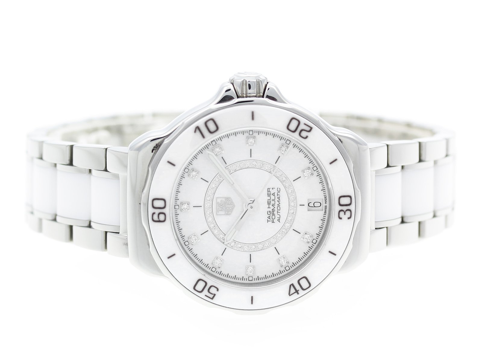 Tag Heuer – Formula 1 – 37 MM – Stainless Steel – Stainless Steel/White Ceramic Bezel – White Diam Dial – Stainless Steel/White Ceramic Bracelet – Vendor Style #: WAU2211.BA0861
