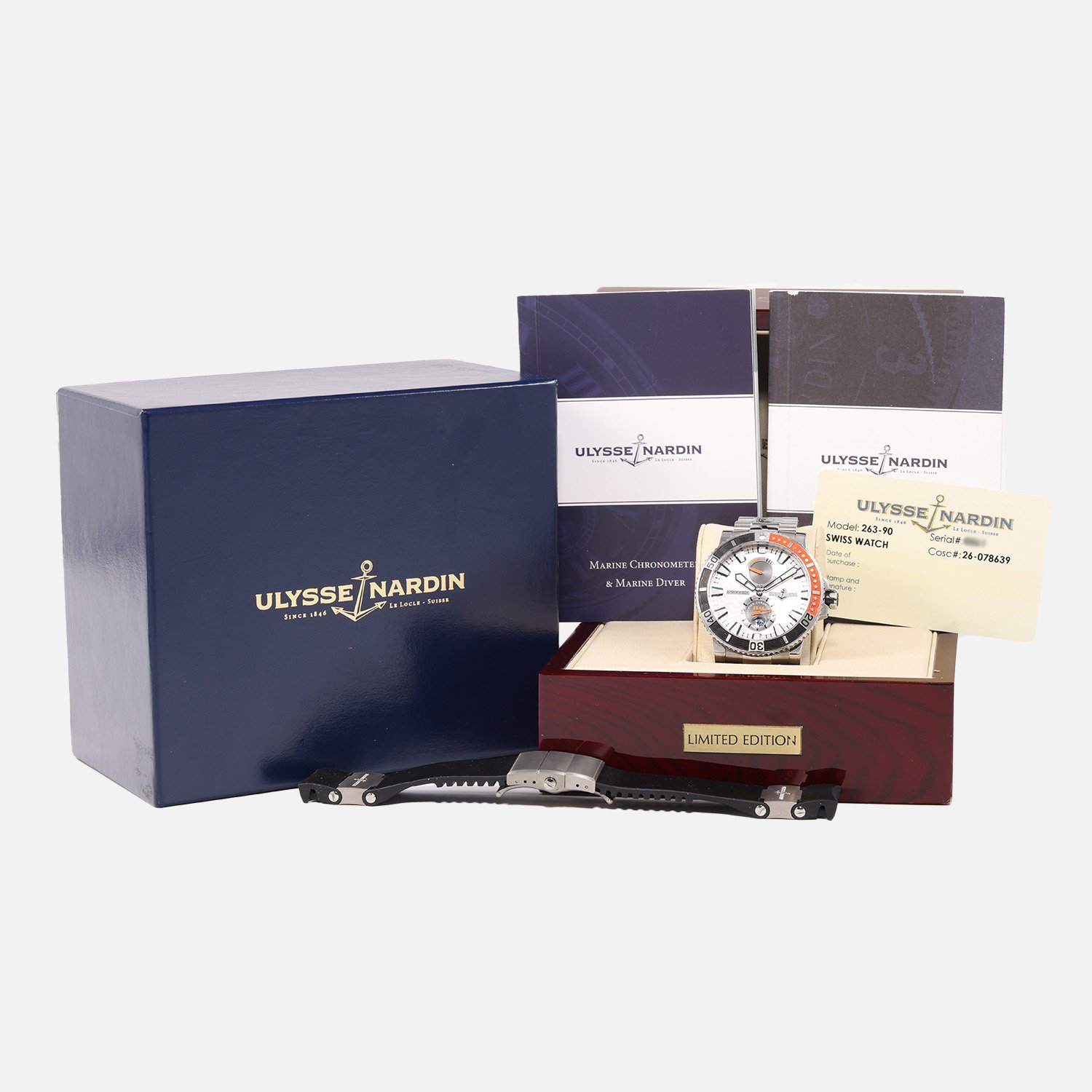 Invest in the Ulysse Nardin Maxi Marine Diver 263-90-3-92, an exceptional pre-owned timepiece that seamlessly blends style, functionality, and reliability for the ultimate diving companion.