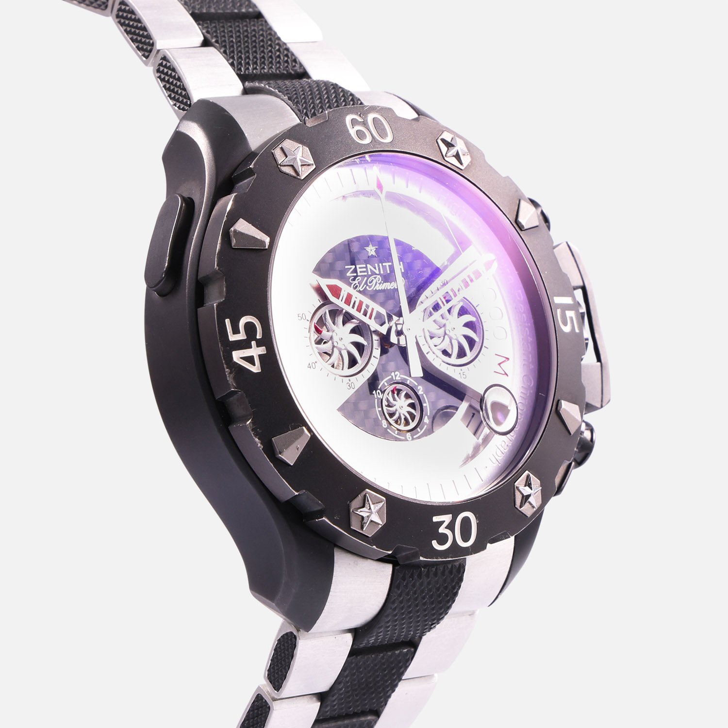 At its core lies the renowned Zenith El Primero 4000 SX automatic movement, operating at 36,000 vibrations per hour and offering a power reserve of approximately 50 hours. This high-frequency caliber ensures exceptional accuracy and reliability.